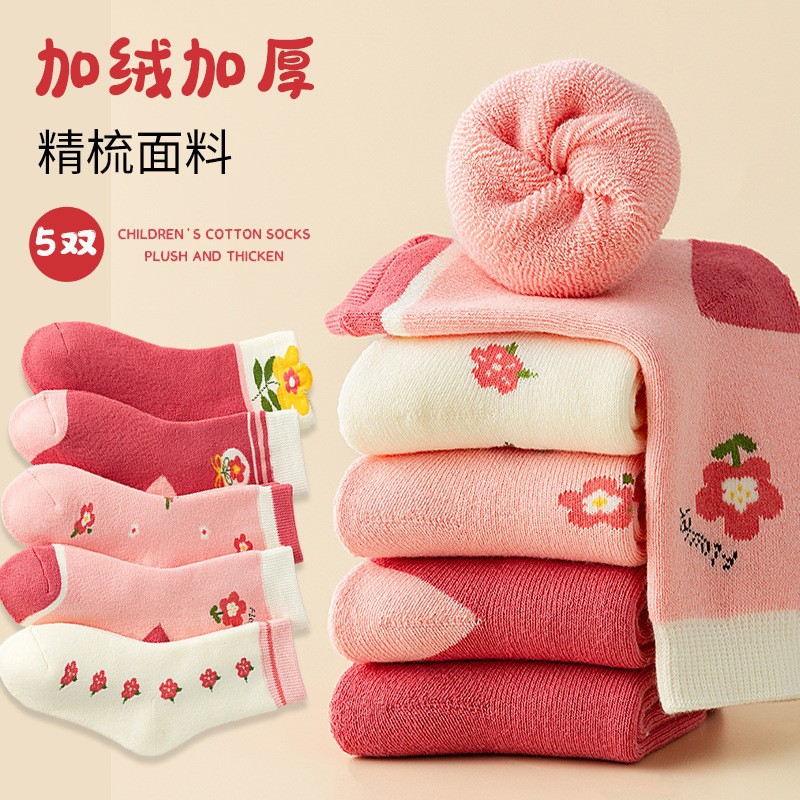 가을과 겨울 어린이 양말 두꺼운 얇은 어린이 소년 아기 기모 따뜻한 긴 테리 양말