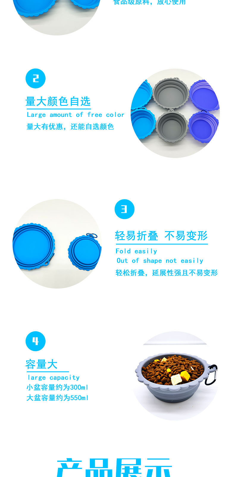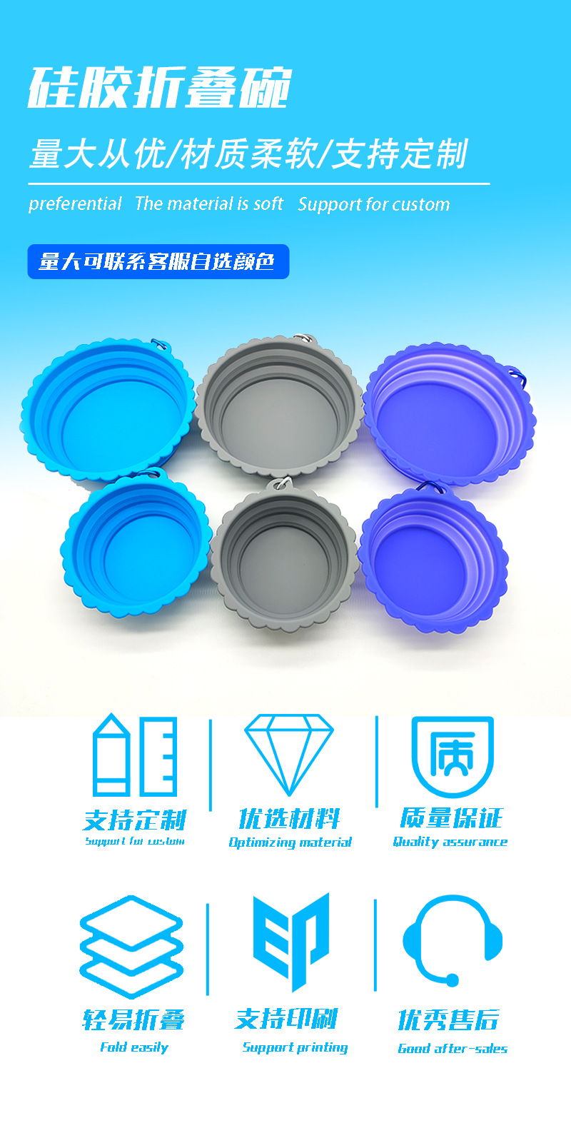제조 업체 공급 실리콘 애완 동물 접이식 그릇 휴대용 야외 개 먹이 식기 야외 여행 고양이 그릇