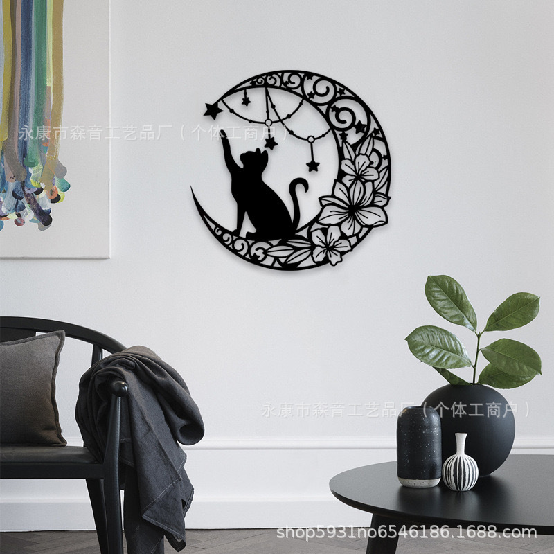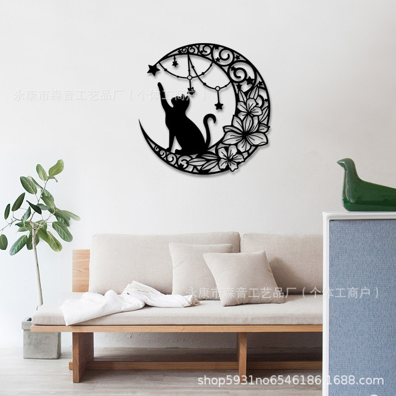 벽 장식 연철 공예 레이저 절단 실루엣 달 검은 고양이 벽 장식 아마존 뜨거운 판매 펜던트스토어 가기
