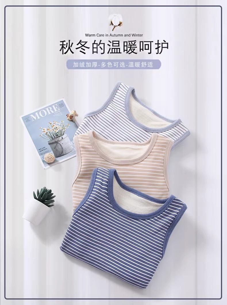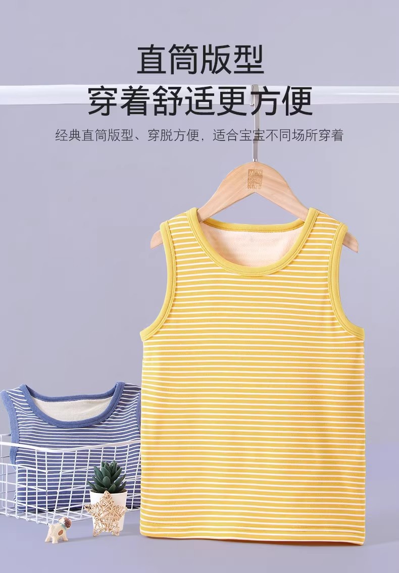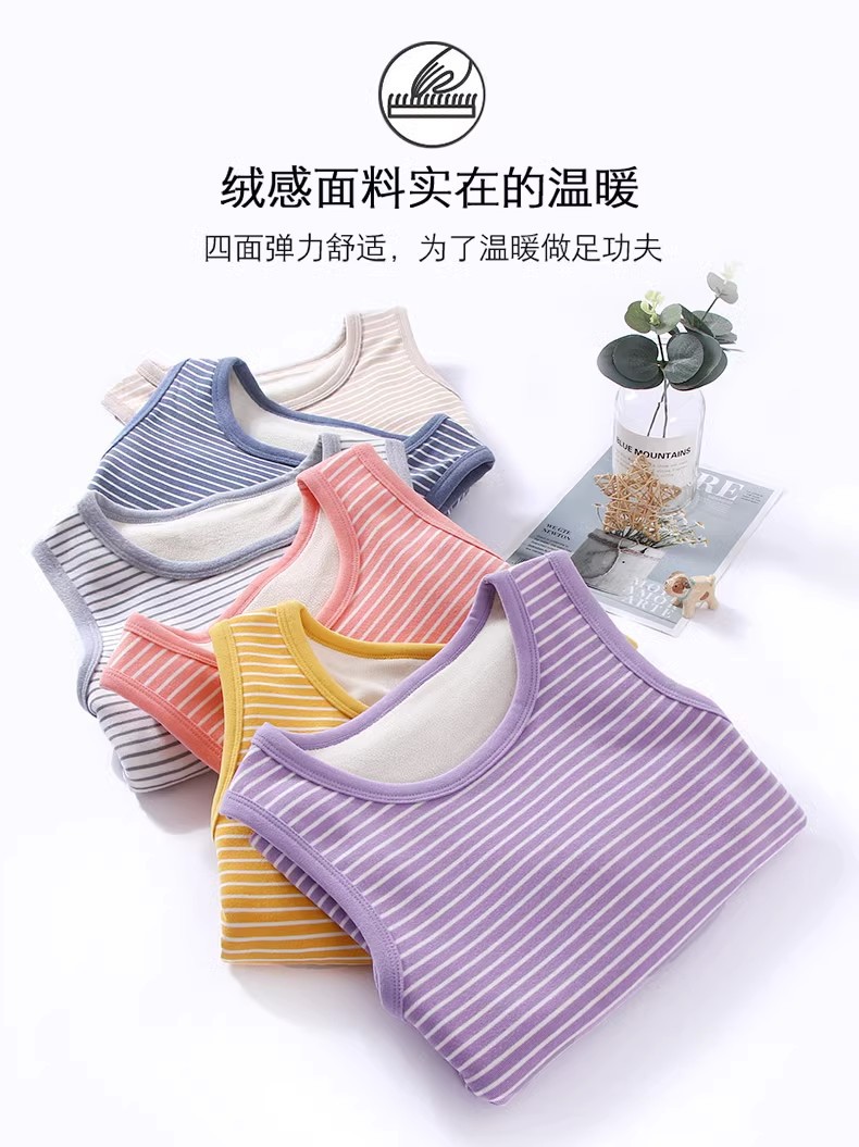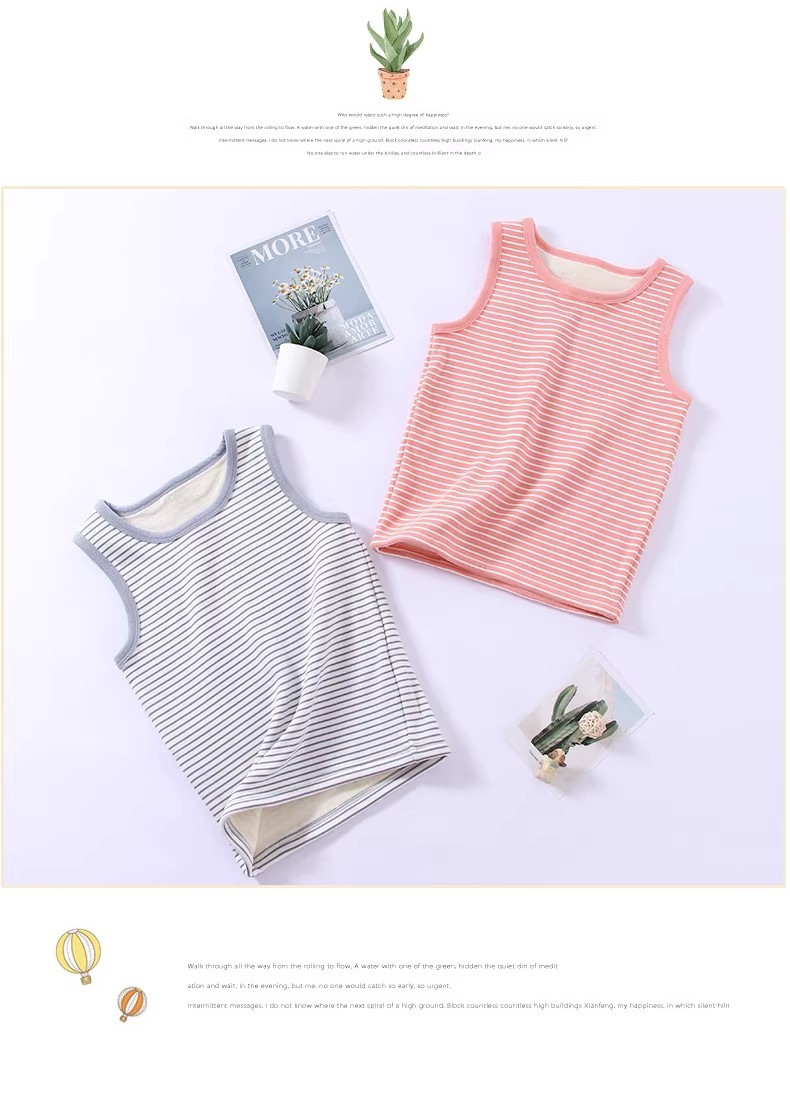아동용 일체형 벨벳 조끼, 남아용 보온 이너웨어, 여아용 바디핏 벨벳 조끼, 스트라이프 디자인
