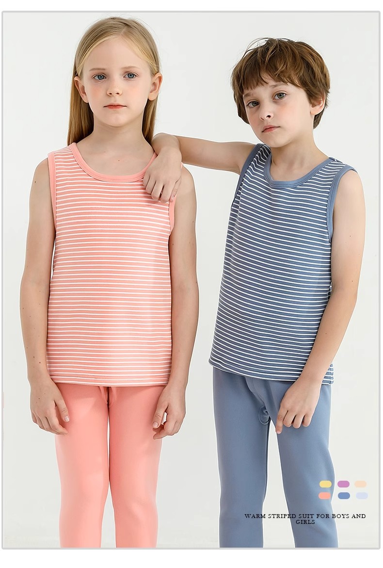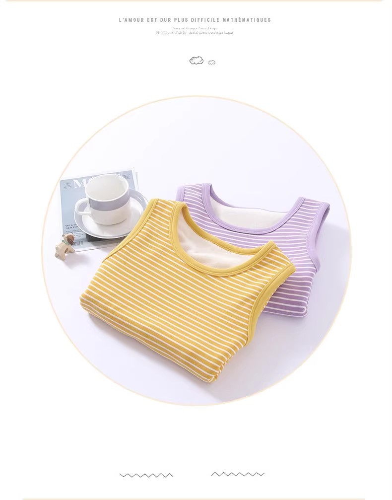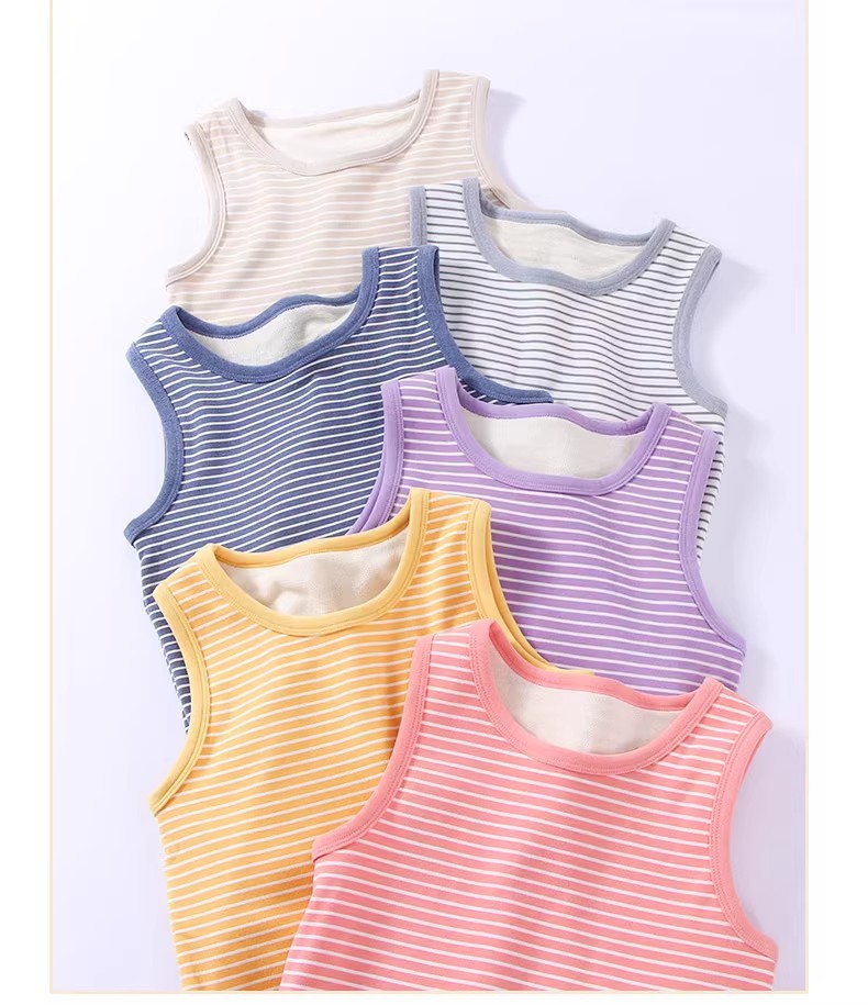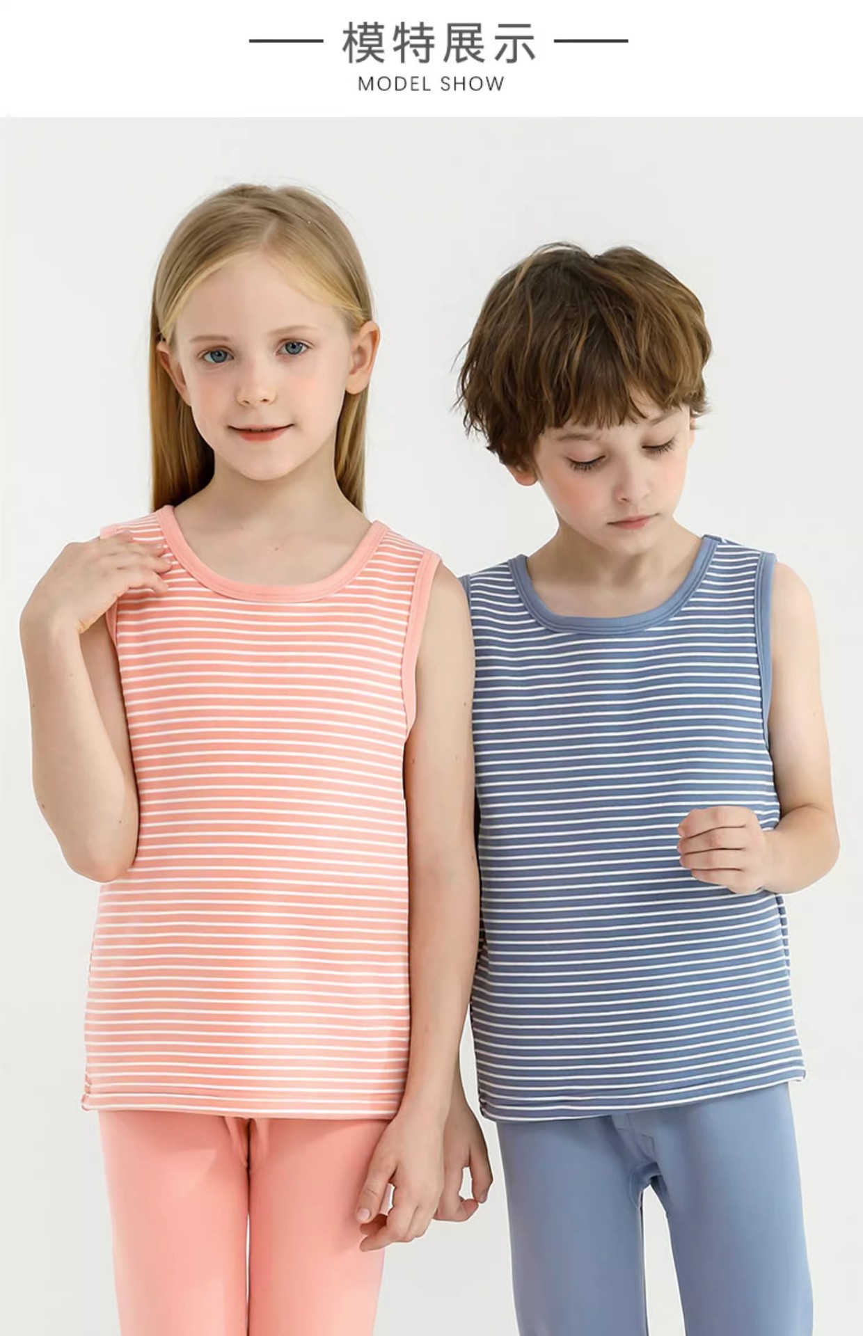 아동용 일체형 벨벳 조끼, 남아용 보온 이너웨어, 여아용 바디핏 벨벳 조끼, 스트라이프 디자인
