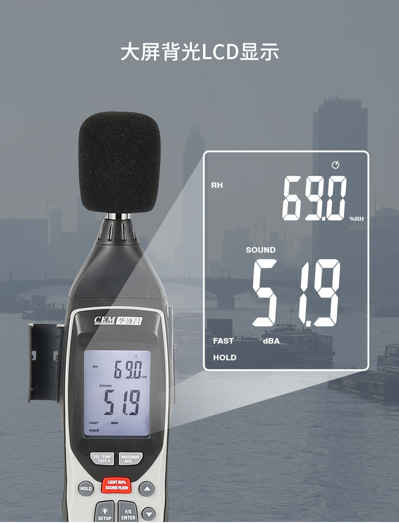 Huashengchang DT-859B 전문 다기능 환경 테스트 미터 소음 조명 풍속 온도 및 습도 5 대 1스토어 가기