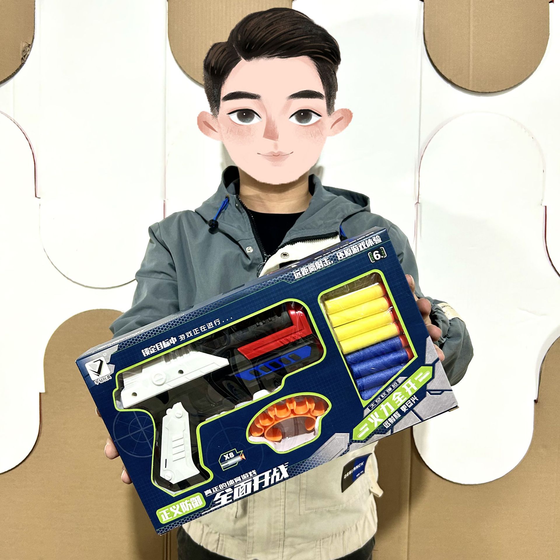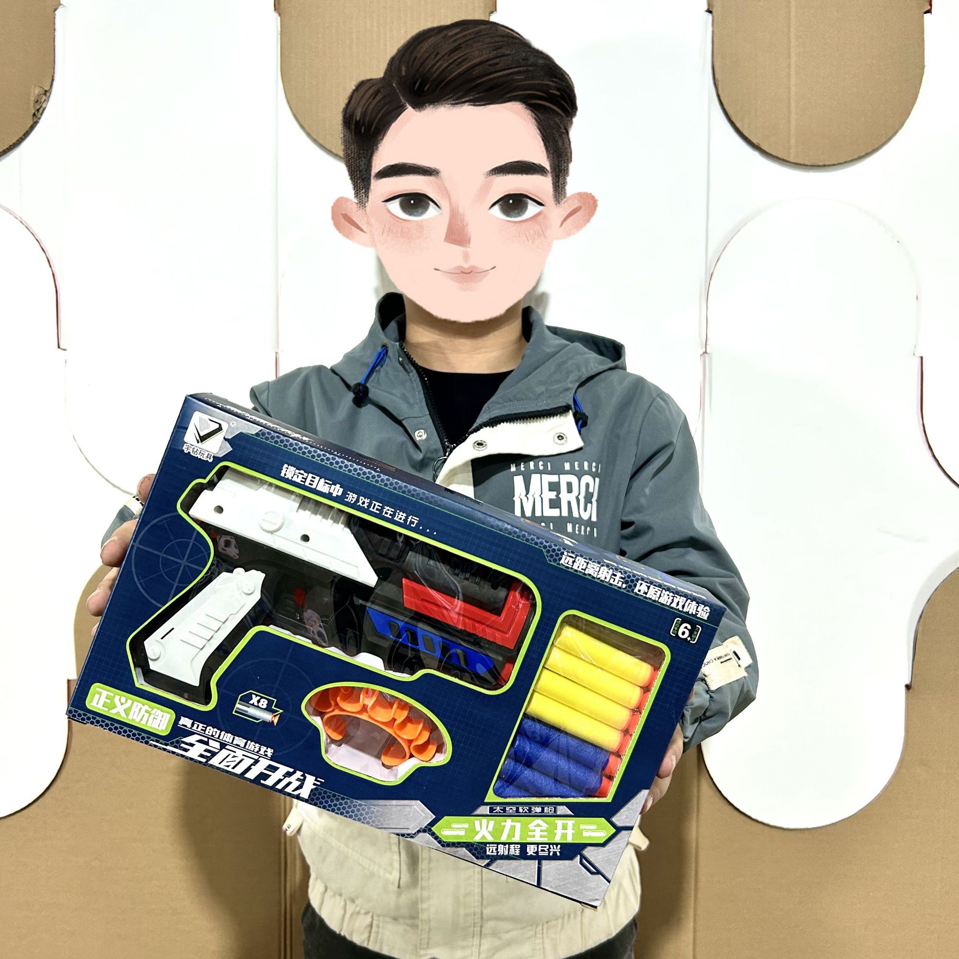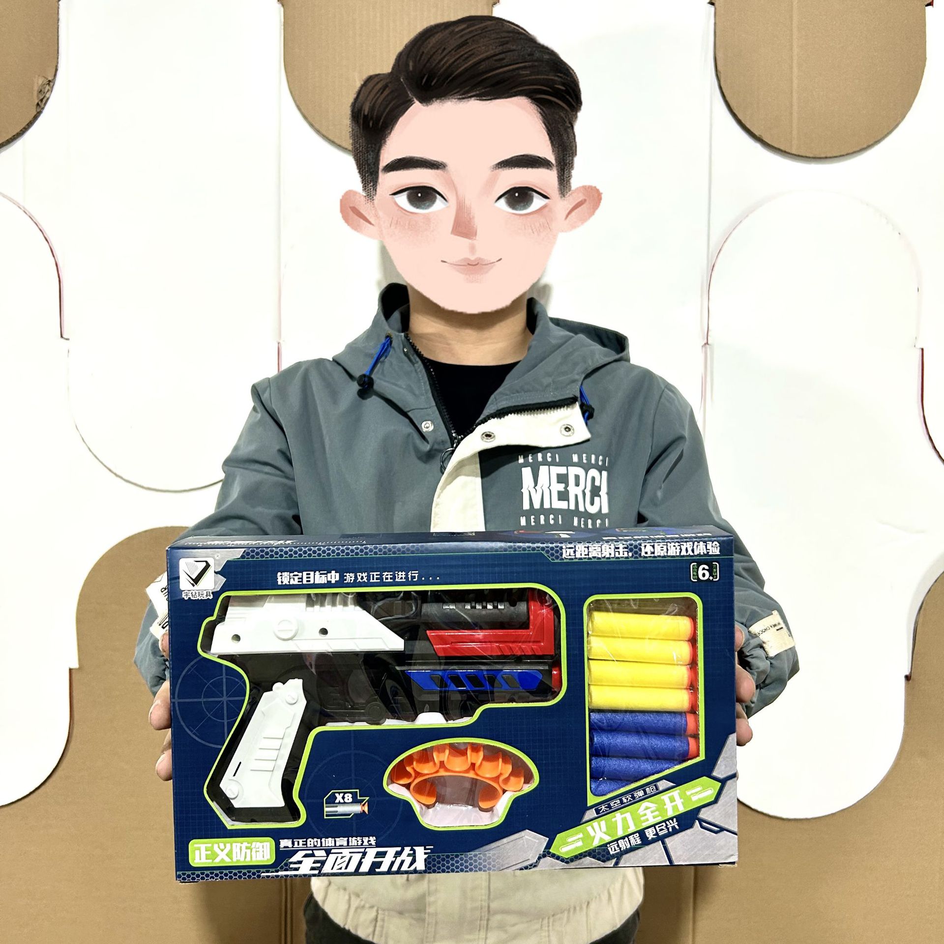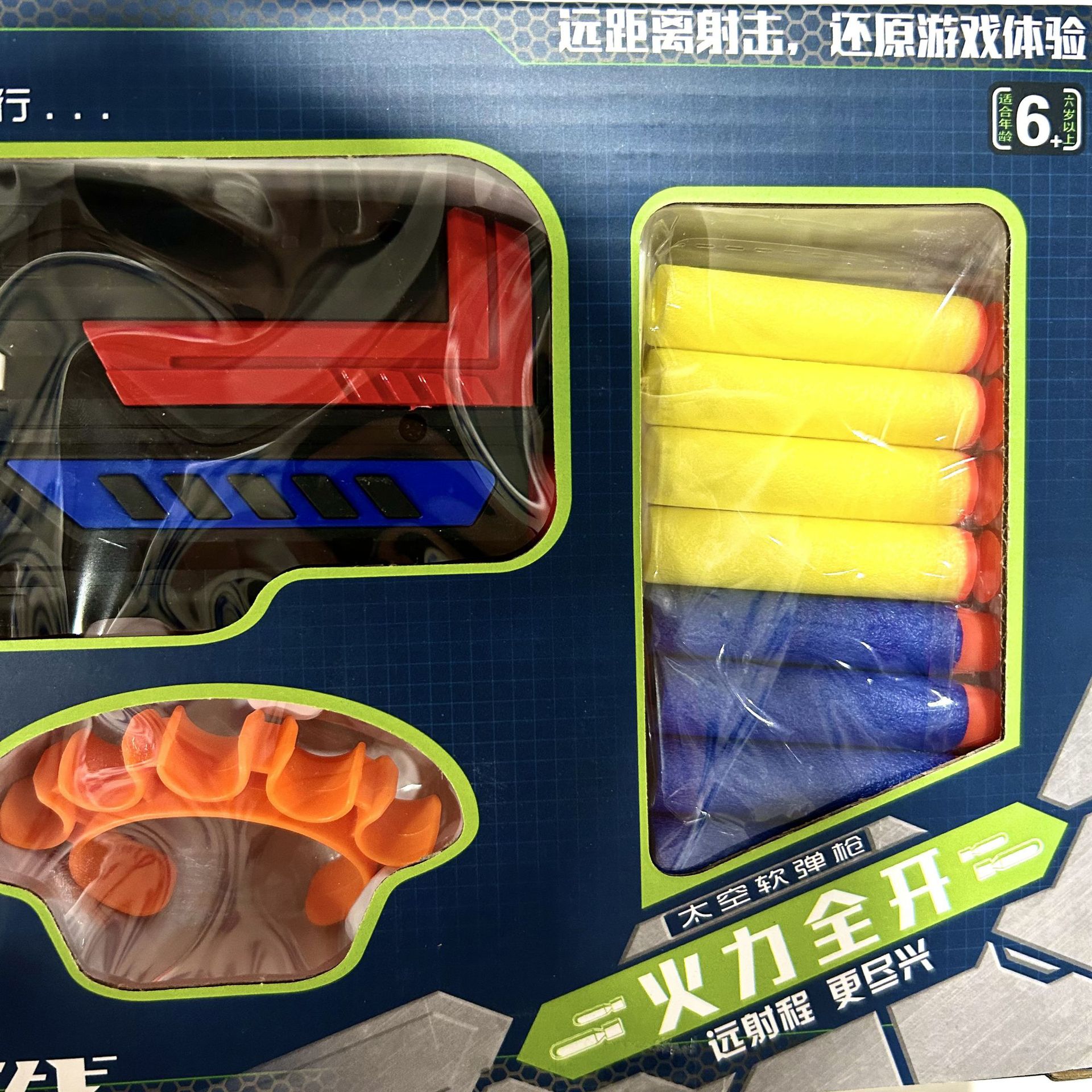 어린이 선물 상자 공간 권총 EVA 소프트 불릿 인터랙티브 부모-자식 소년 장난감 총 청 선물 노점 도매