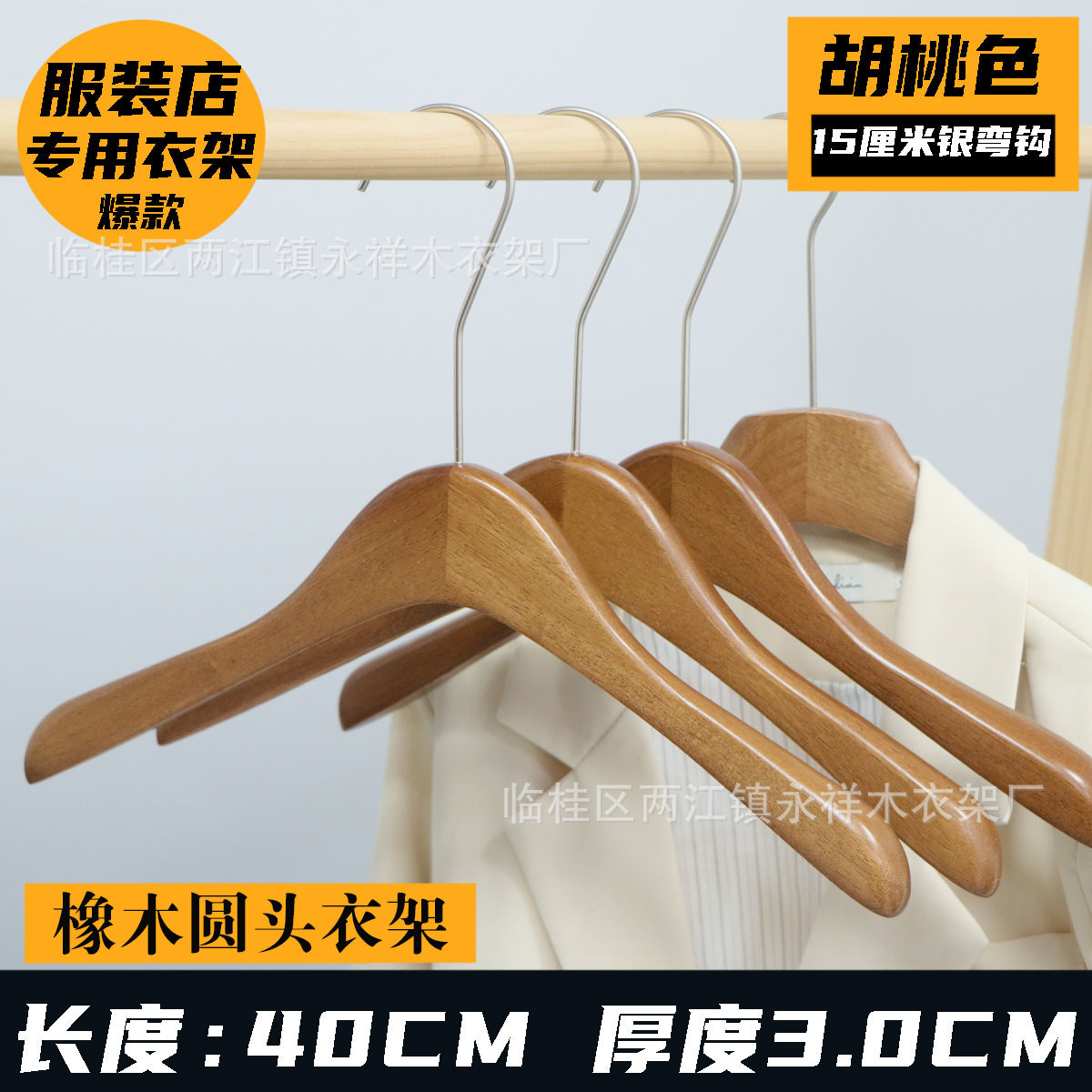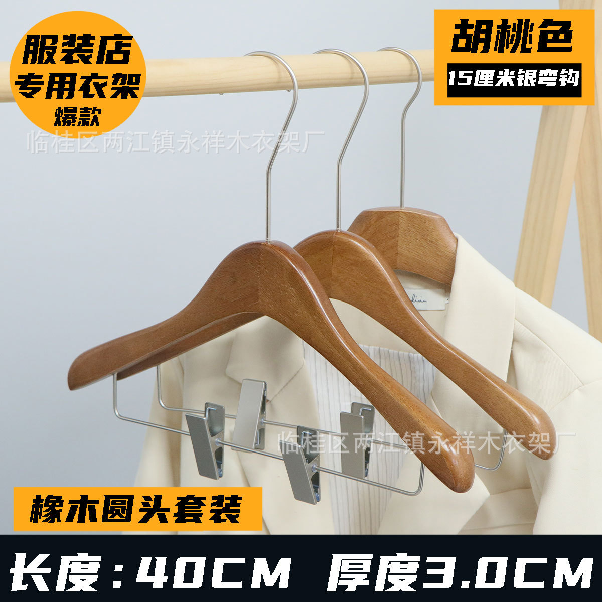 옷걸이 두꺼운형 무자국 옷걸이 의류점 고급 목재 옷걸이 옷걸이 호두색 미끄럼 방지 옷걸이스토어 가기