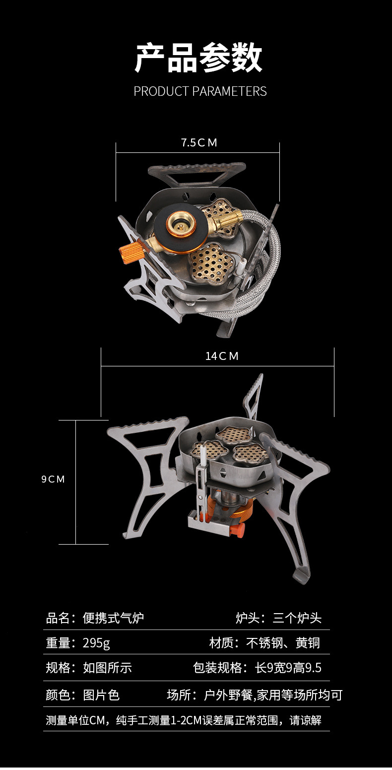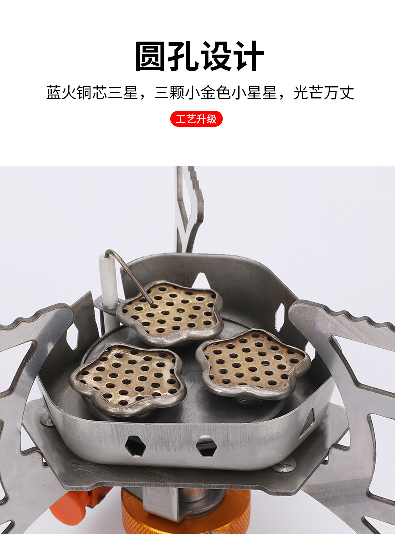 새로운 블루 파이어 구리 코어 삼성 스토브 캠핑 스토브 휴대용 접이식 방풍 스토브 피크닉 3 헤드 스토브 3 코어 스토브 카트리지 스토브