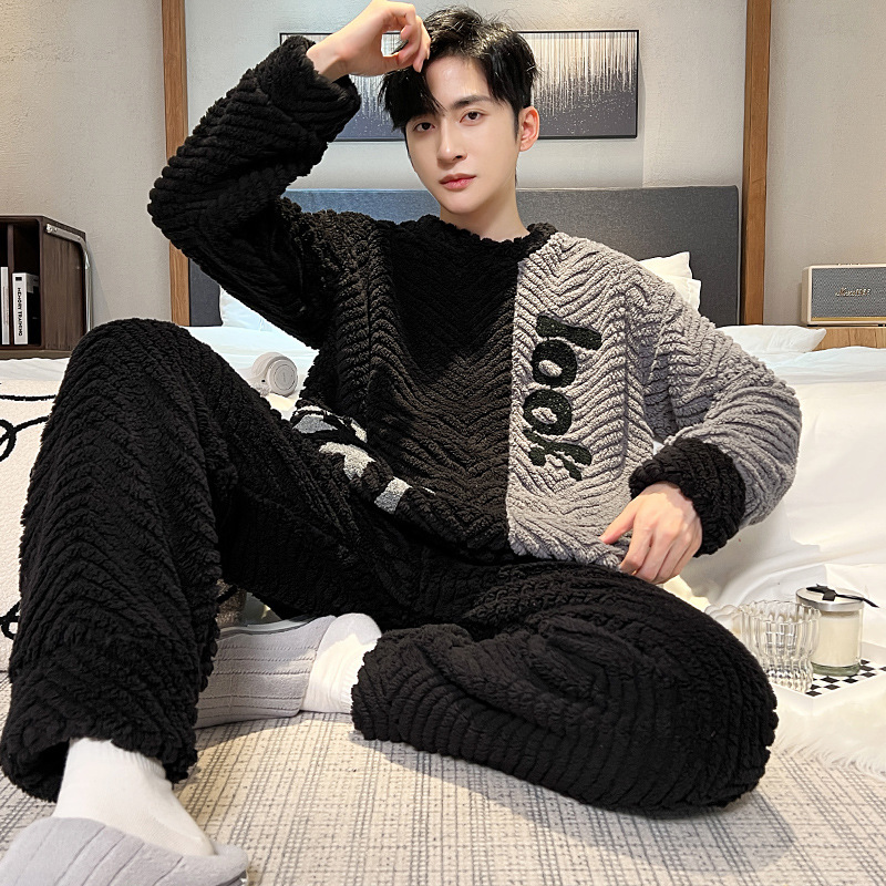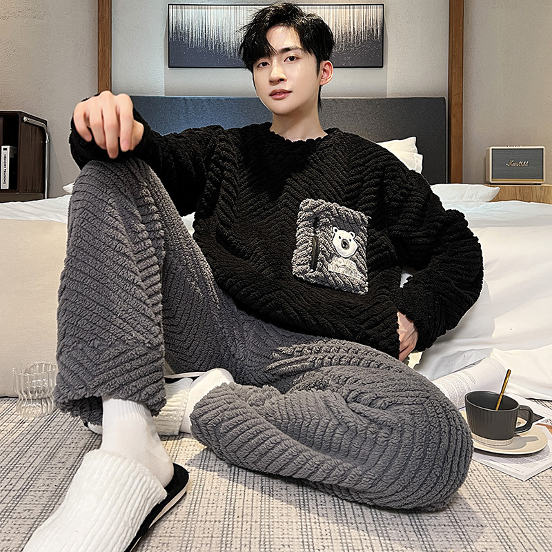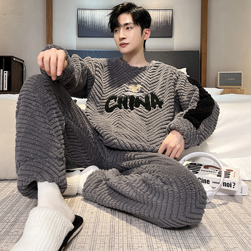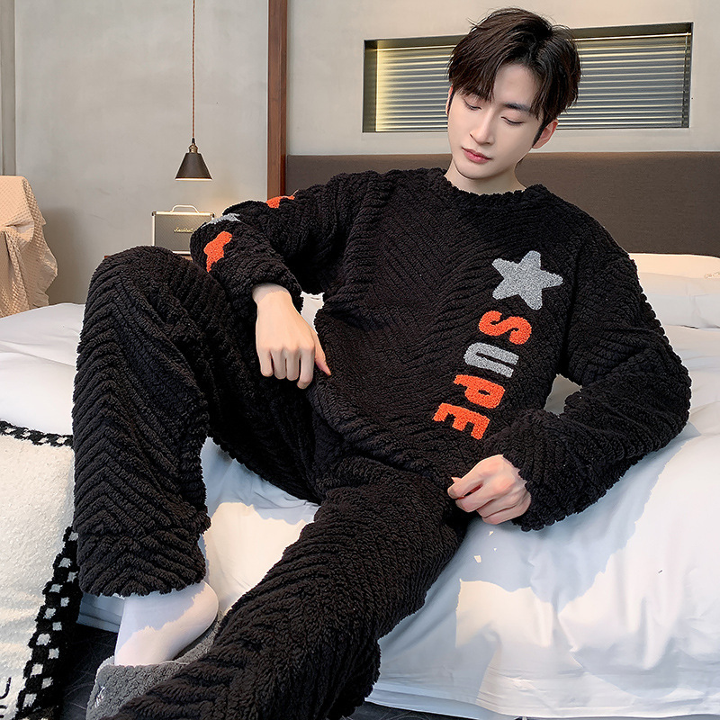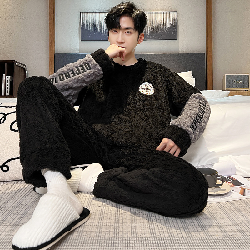 2023 새로운 남성 잠옷 가을과 겨울 긴 소매 기모 두꺼운 플란넬 만화 소년 가정 의류 세트스토어 가기