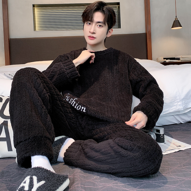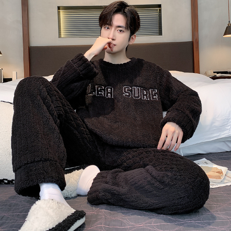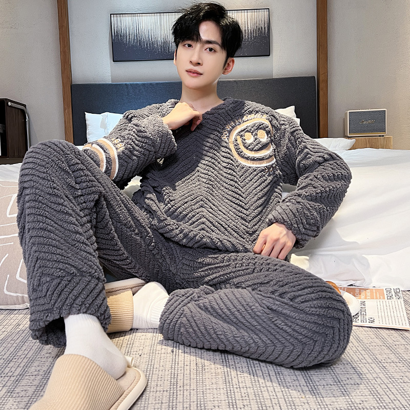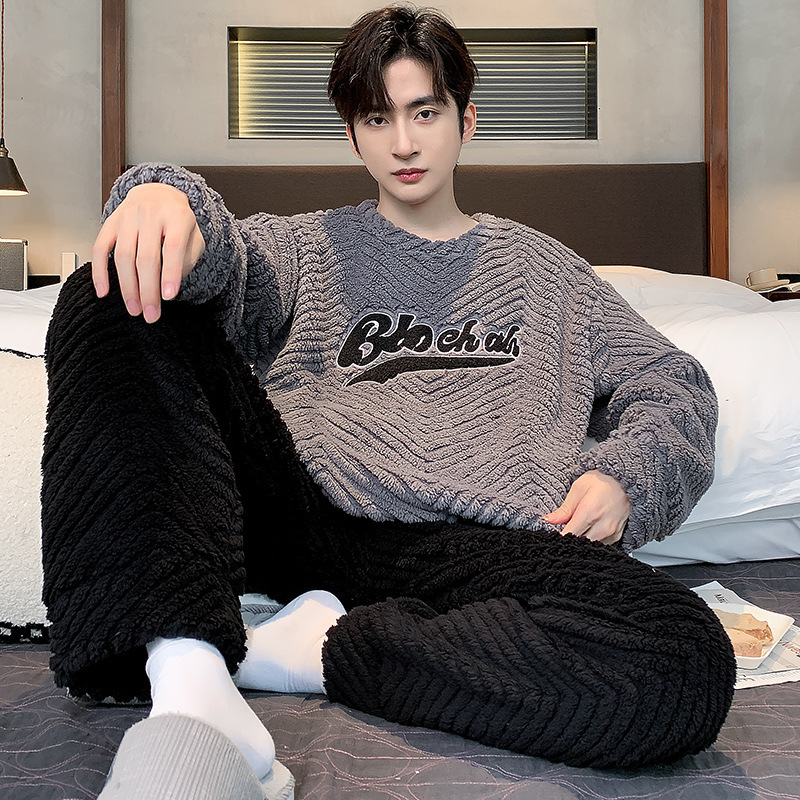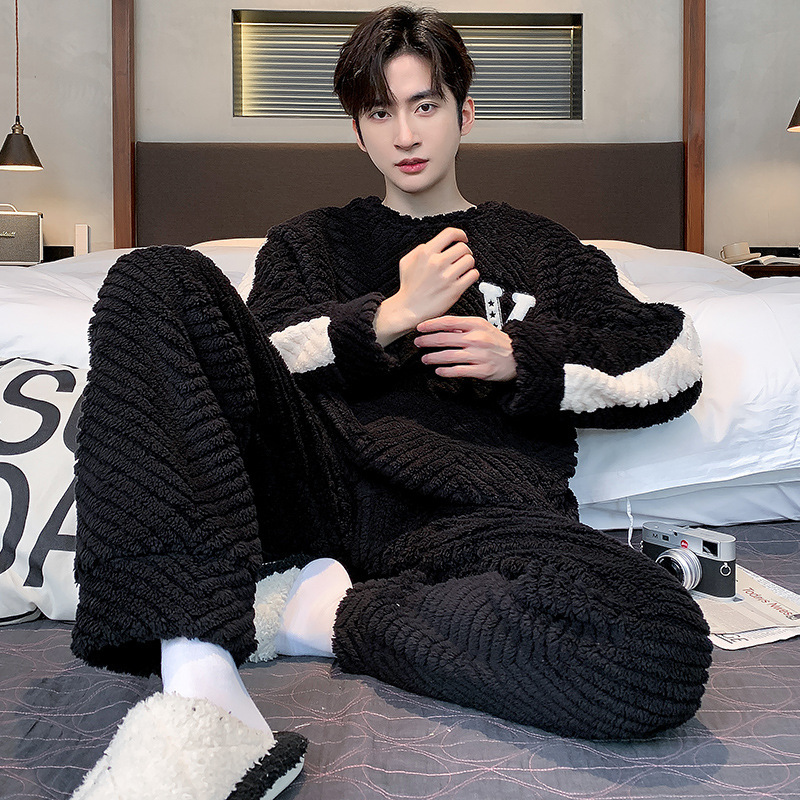 2023 새로운 남성 잠옷 가을과 겨울 긴 소매 기모 두꺼운 플란넬 만화 소년 가정 의류 세트스토어 가기