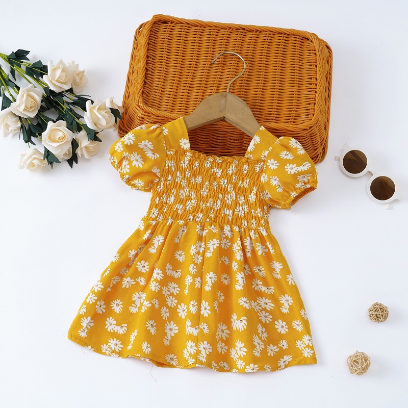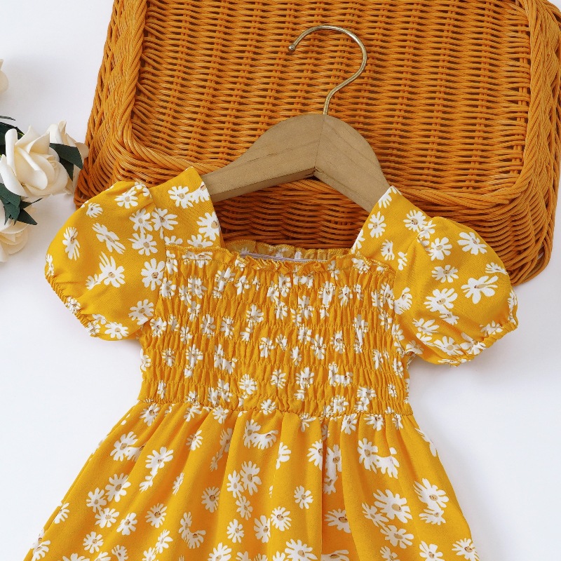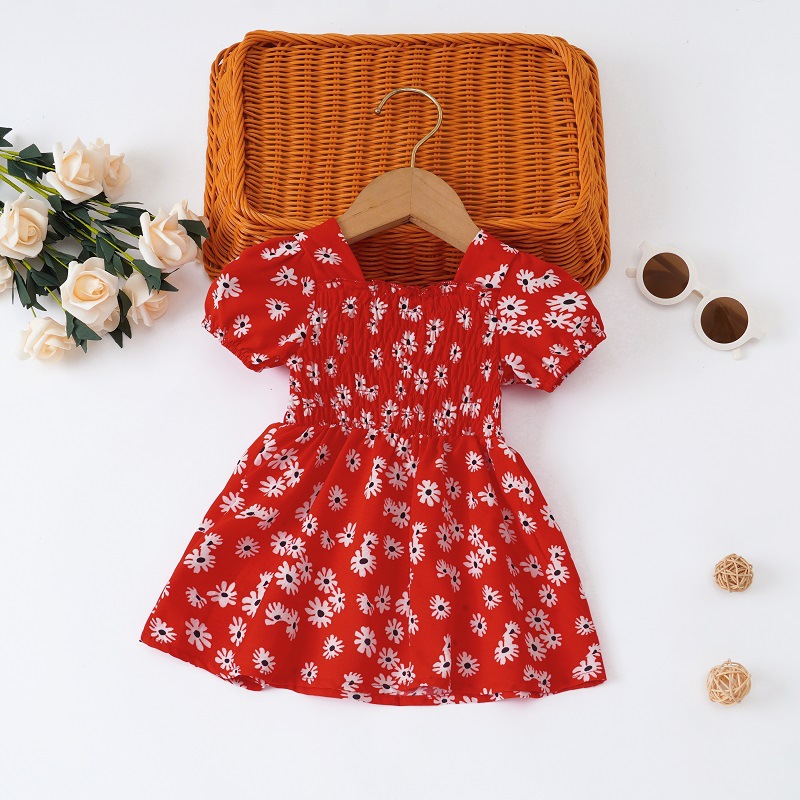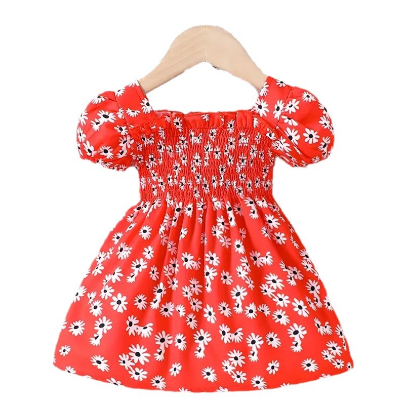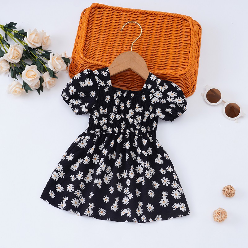 여름 2024 어린이 서양식 인쇄 원피스 소녀의 한국 스타일 짧은 소매 데이지 원피스 아기 공주 원피스스토어 가기