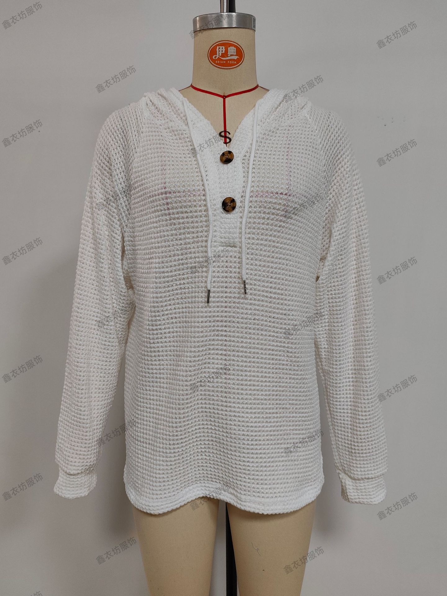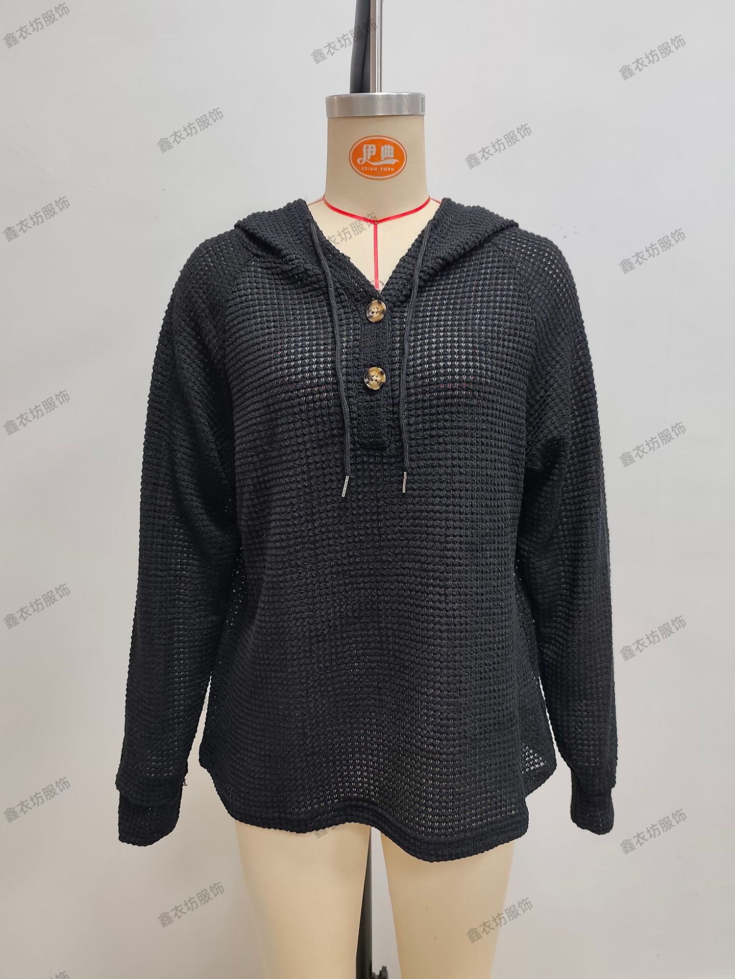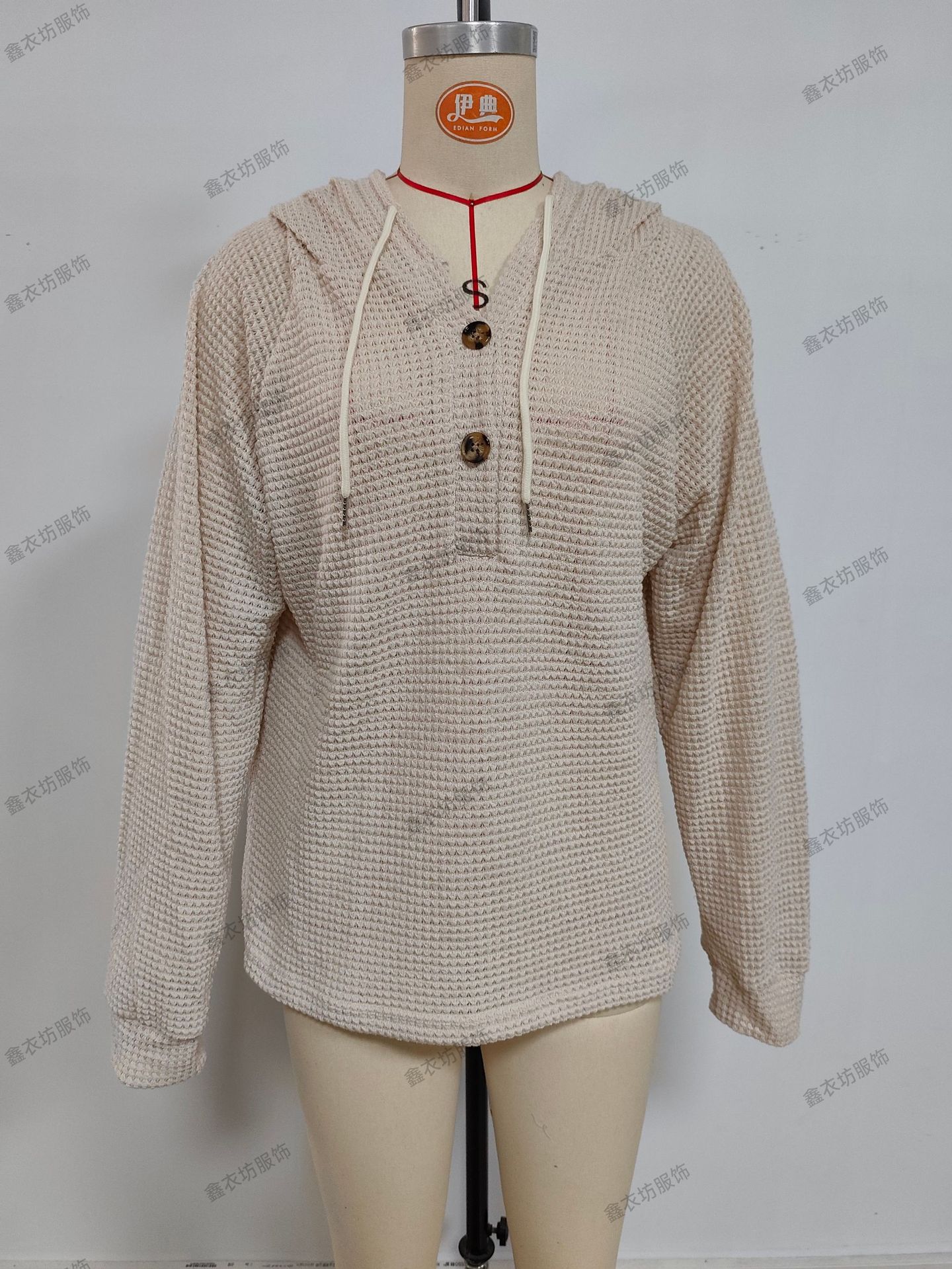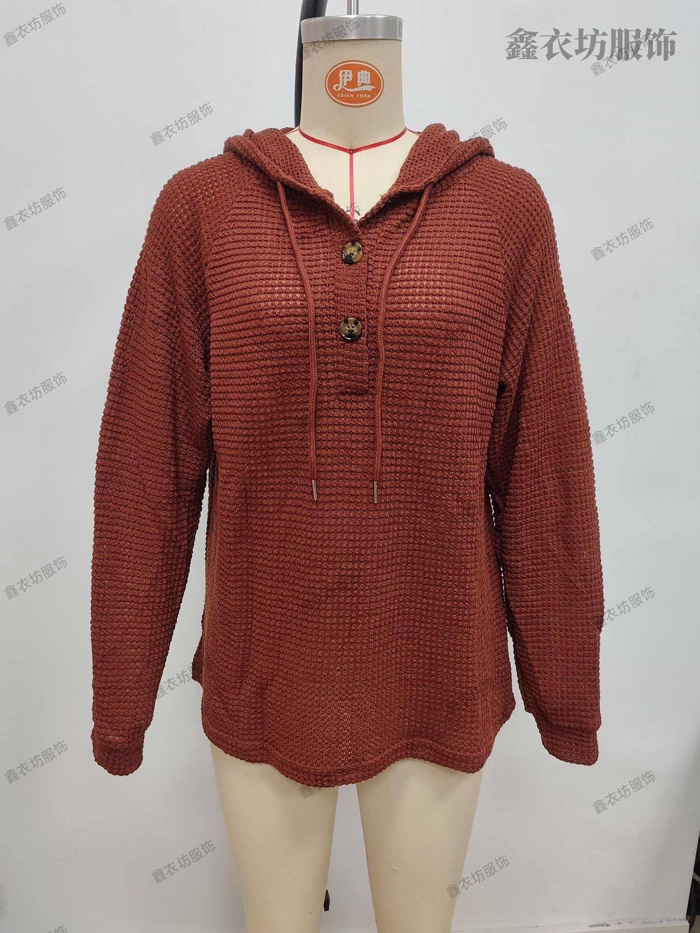 2025 유럽과 미국의 국경 간 가을, 겨울 새로운 단색 후드 버튼 느슨한 긴팔 스웨트 여성 의류스토어 가기