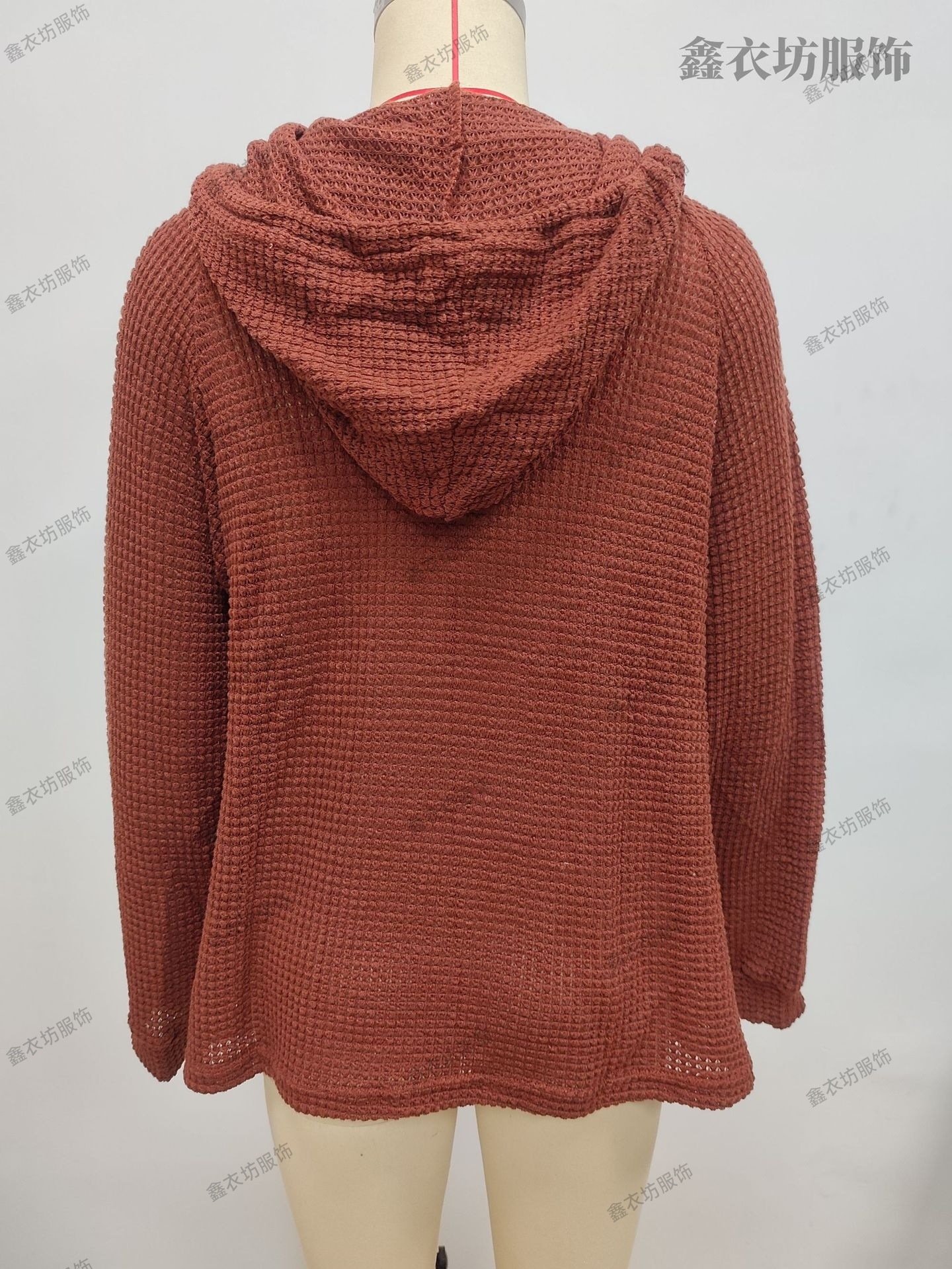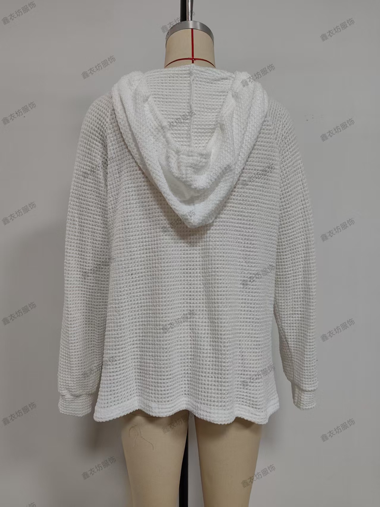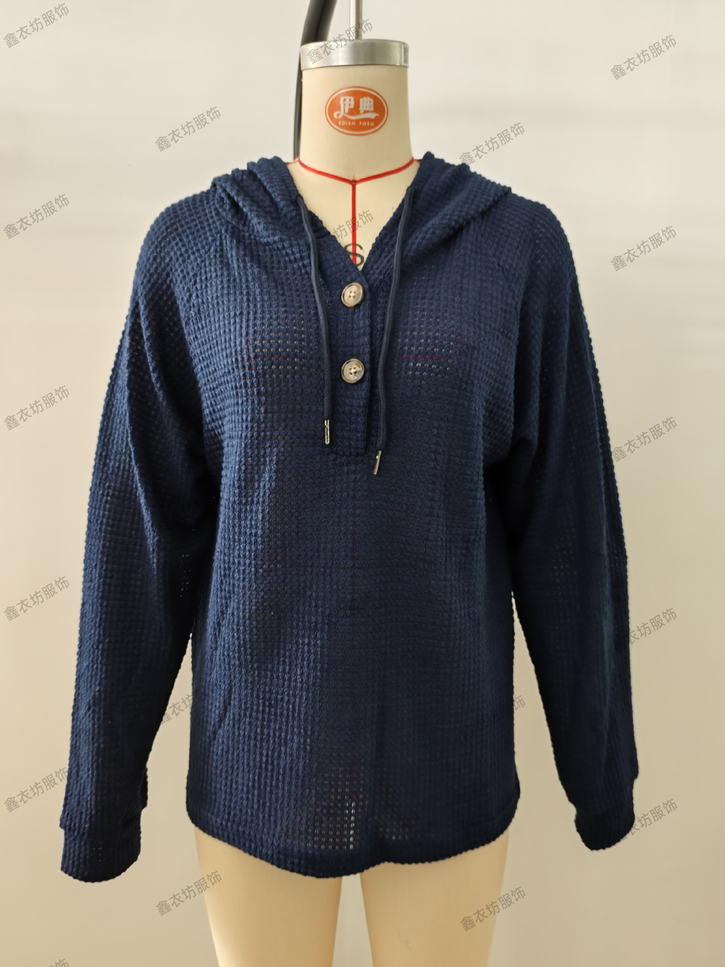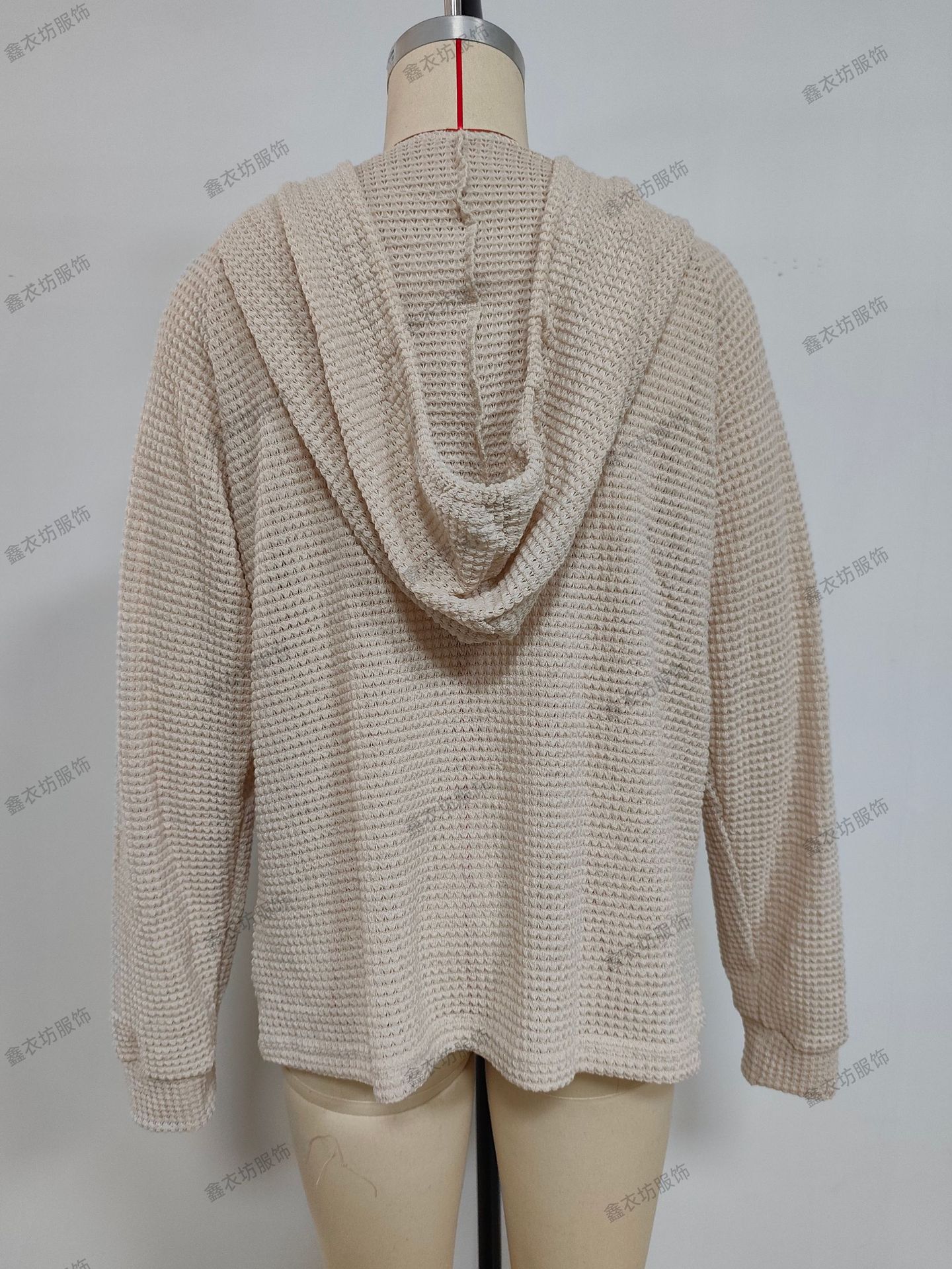 2025 유럽과 미국의 국경 간 가을, 겨울 새로운 단색 후드 버튼 느슨한 긴팔 스웨트 여성 의류스토어 가기