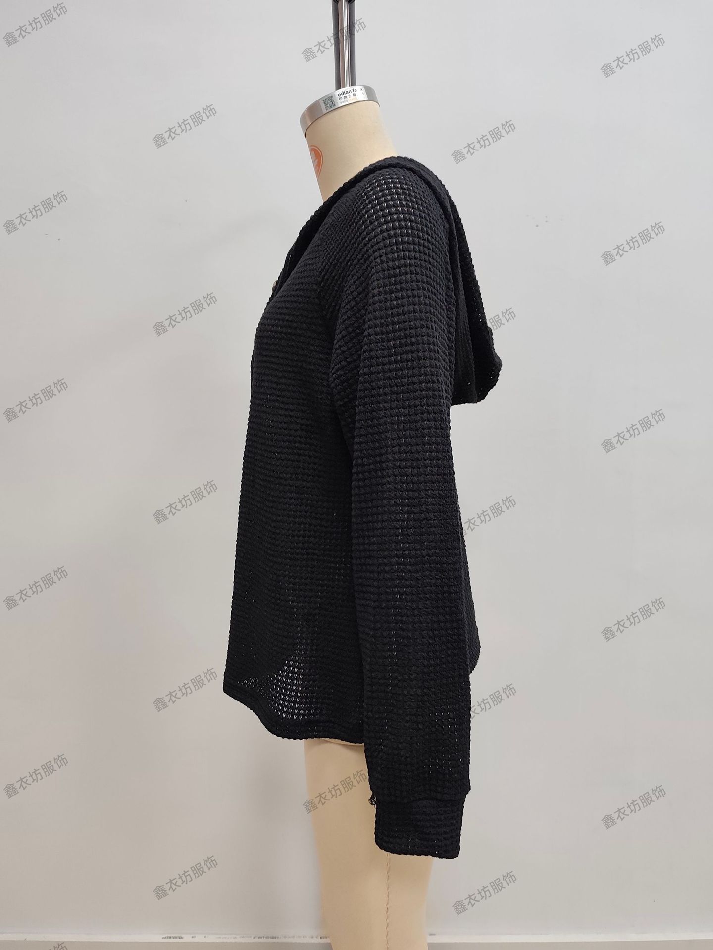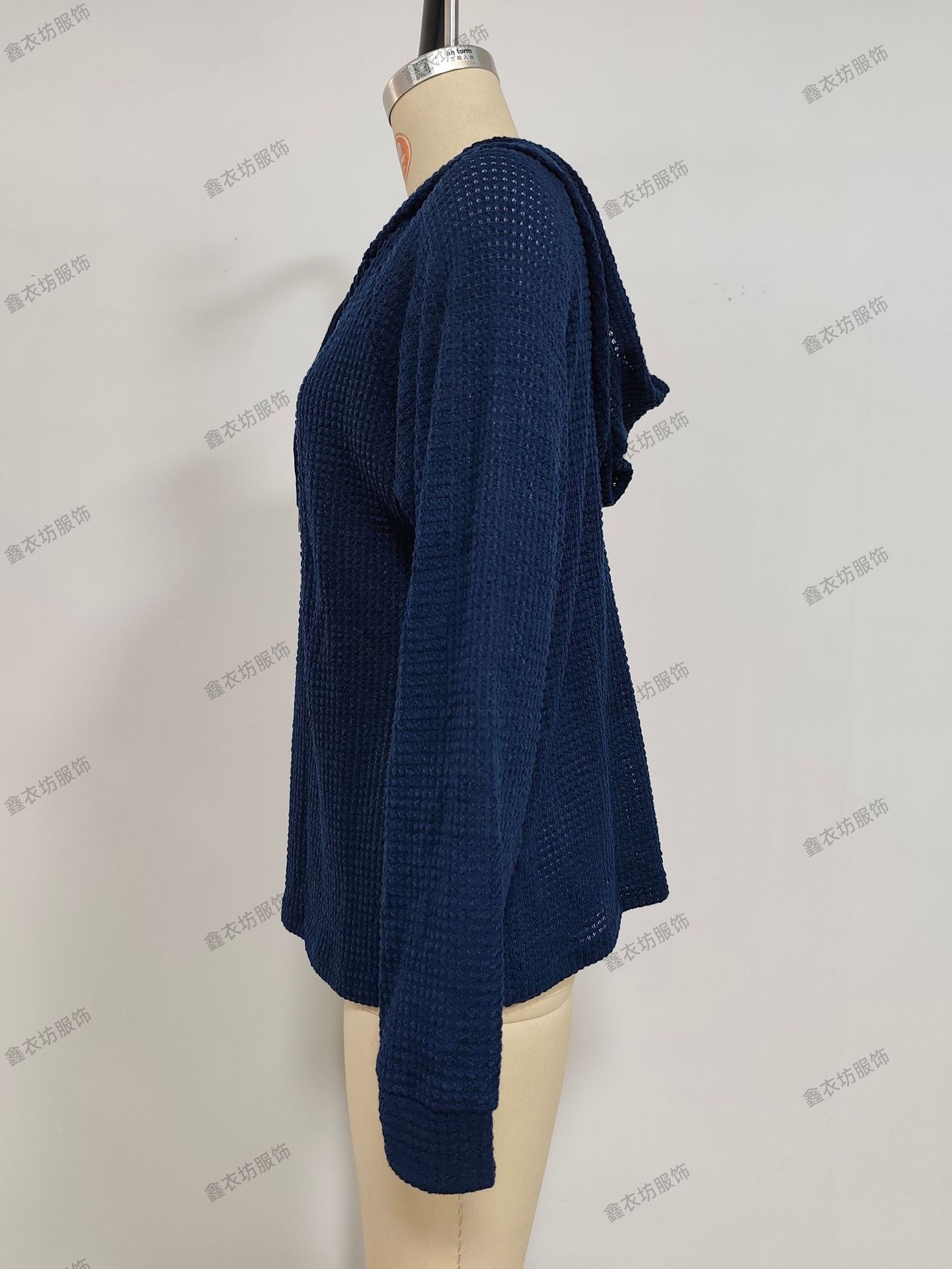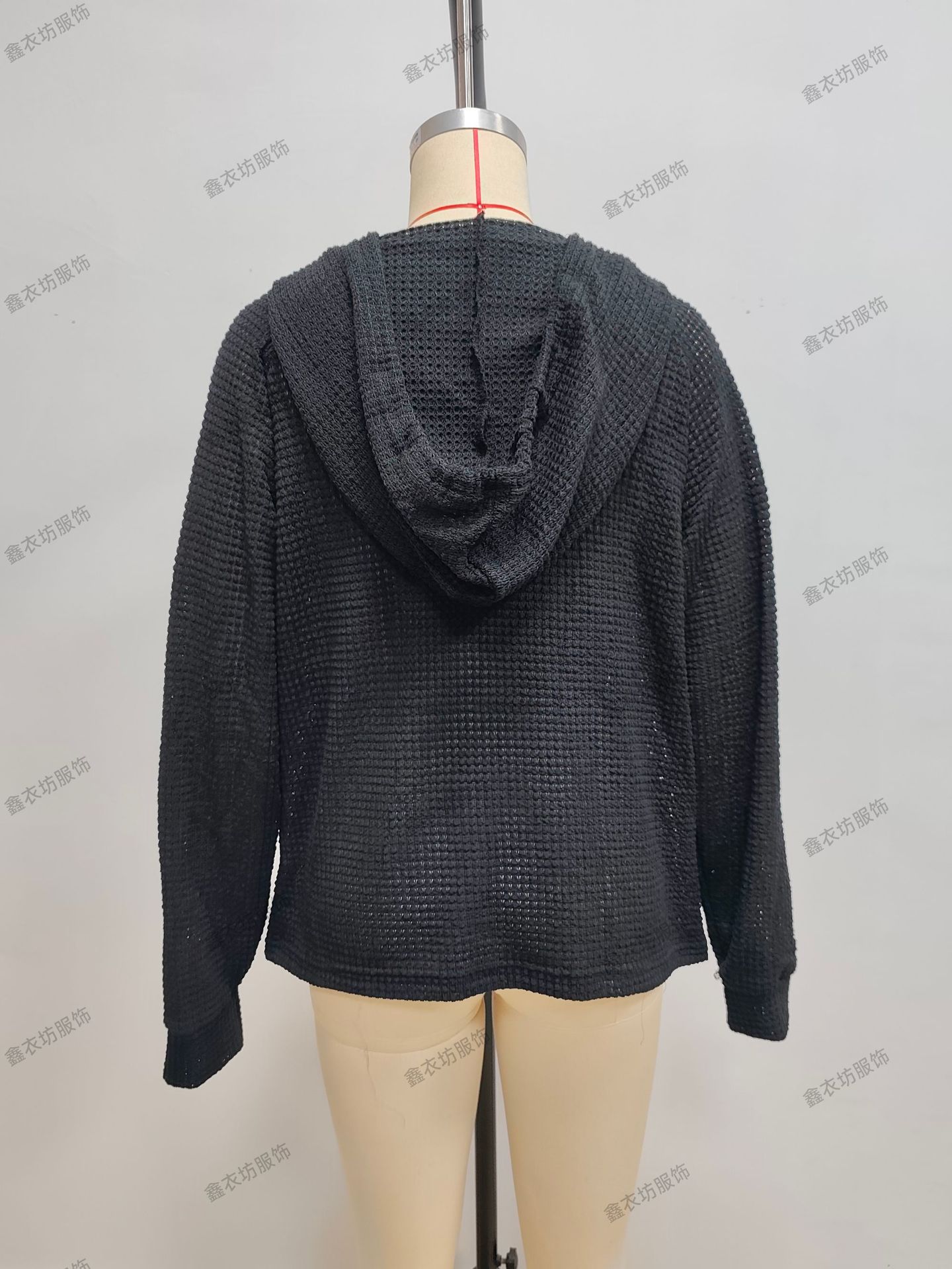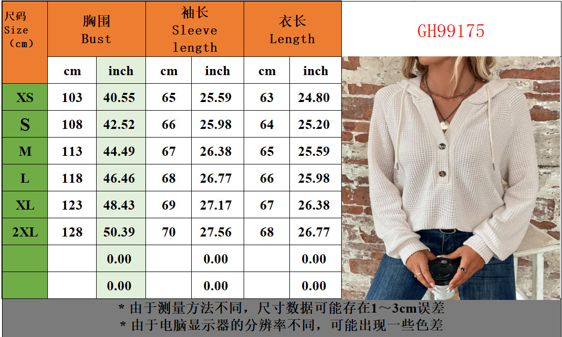 2025 유럽과 미국의 국경 간 가을, 겨울 새로운 단색 후드 버튼 느슨한 긴팔 스웨트 여성 의류스토어 가기