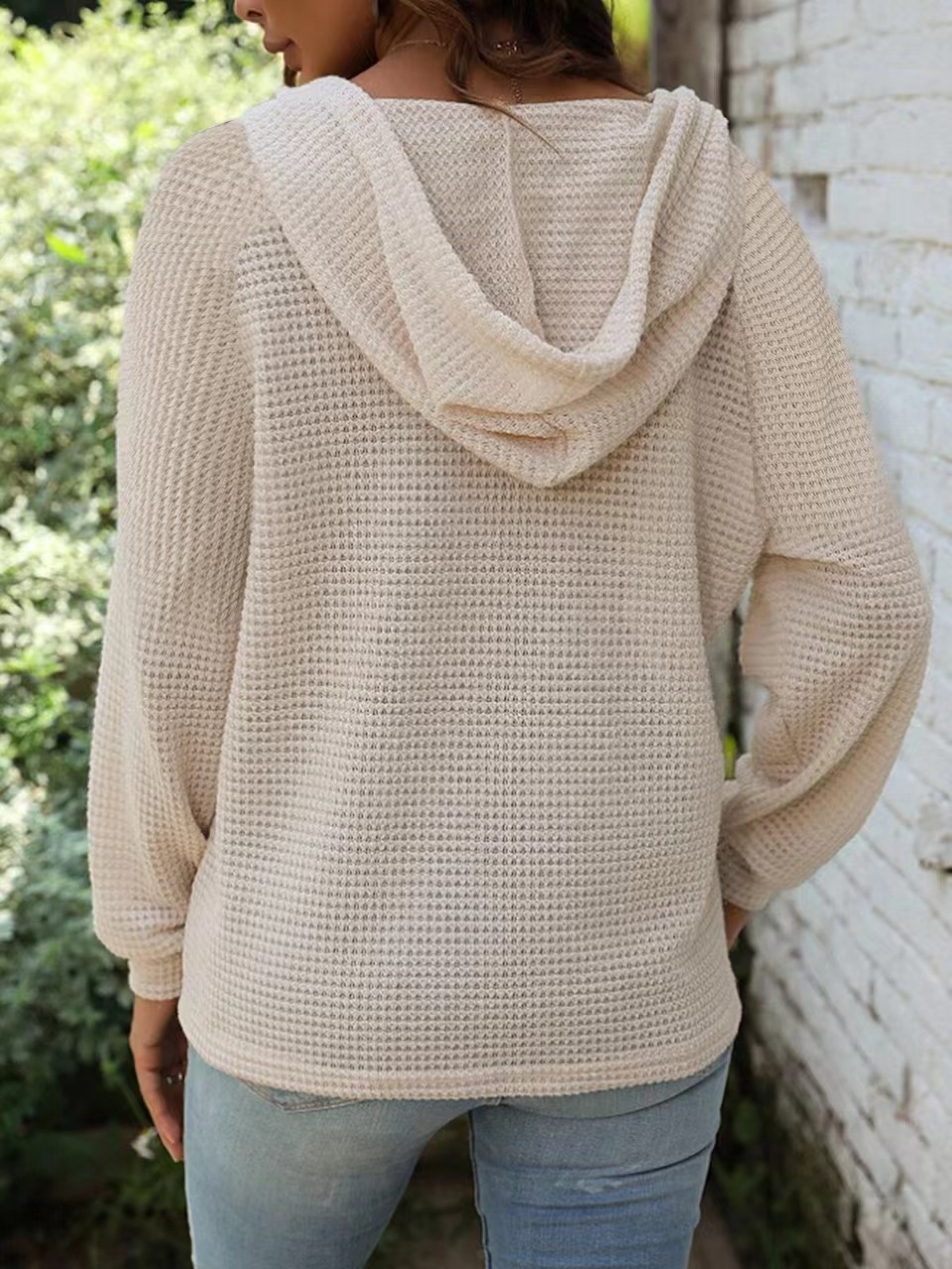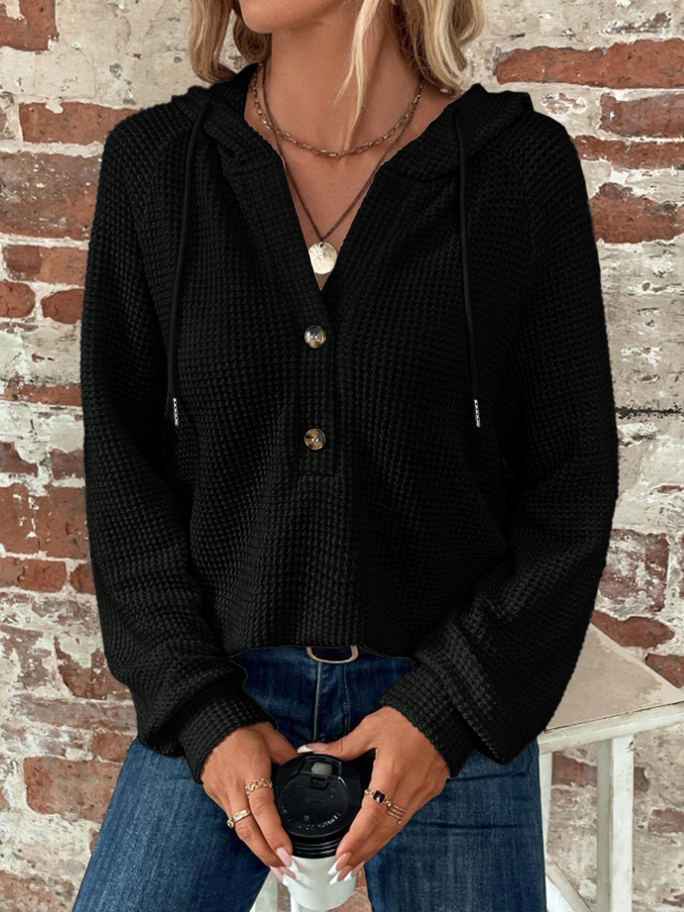2025 유럽과 미국의 국경 간 가을, 겨울 새로운 단색 후드 버튼 느슨한 긴팔 스웨트 여성 의류