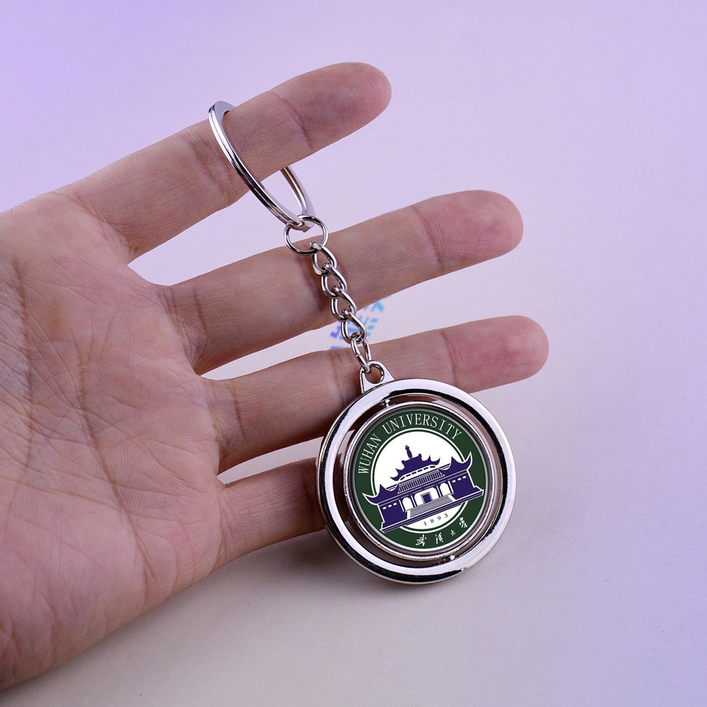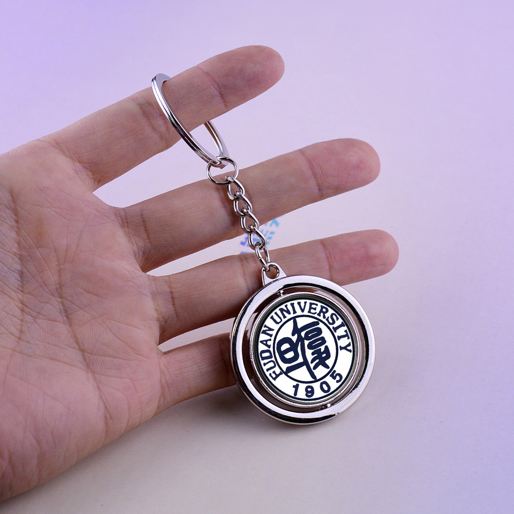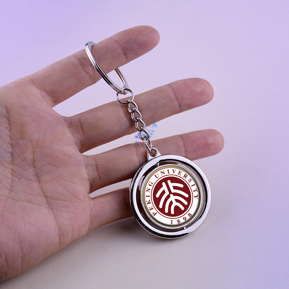 칭북 유명 학교 엠블럼 키 체인 회전 양면 발광 열쇠 고리 펜던트 학생 열쇠 고리 대학 기념 선물스토어 가기