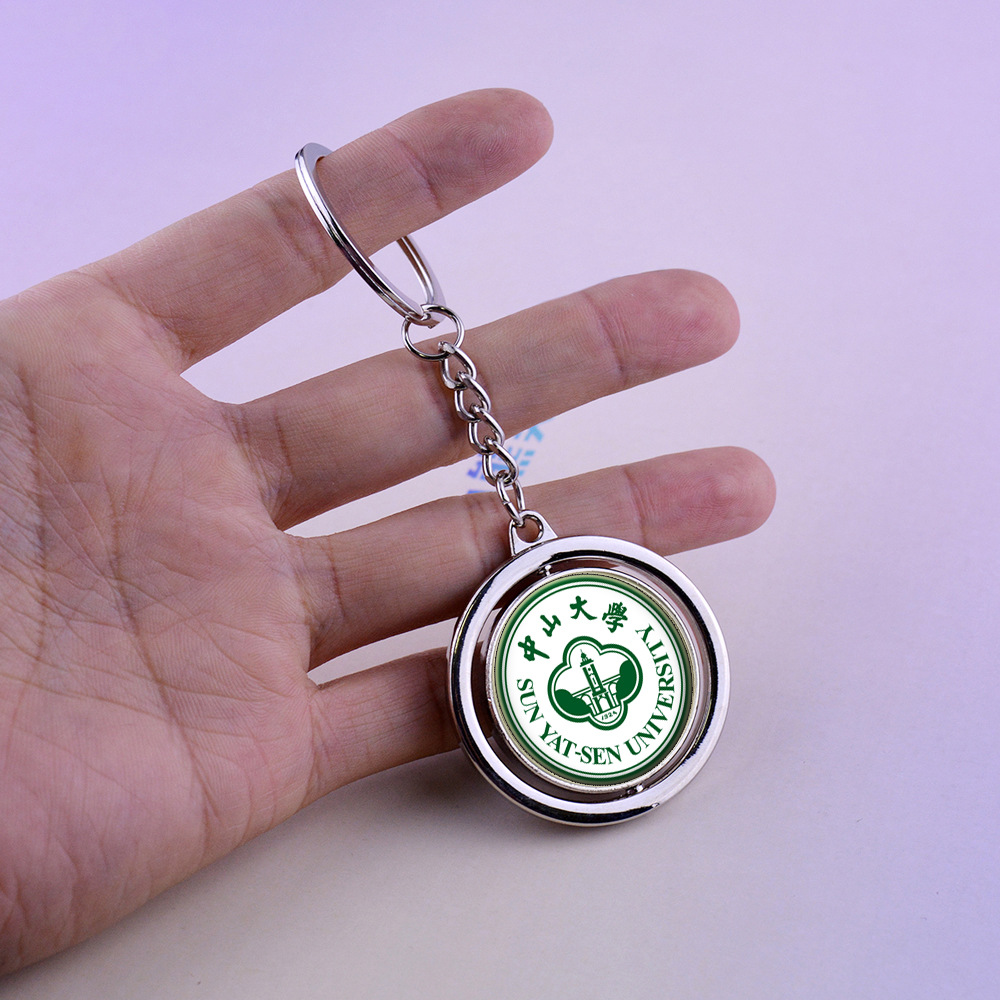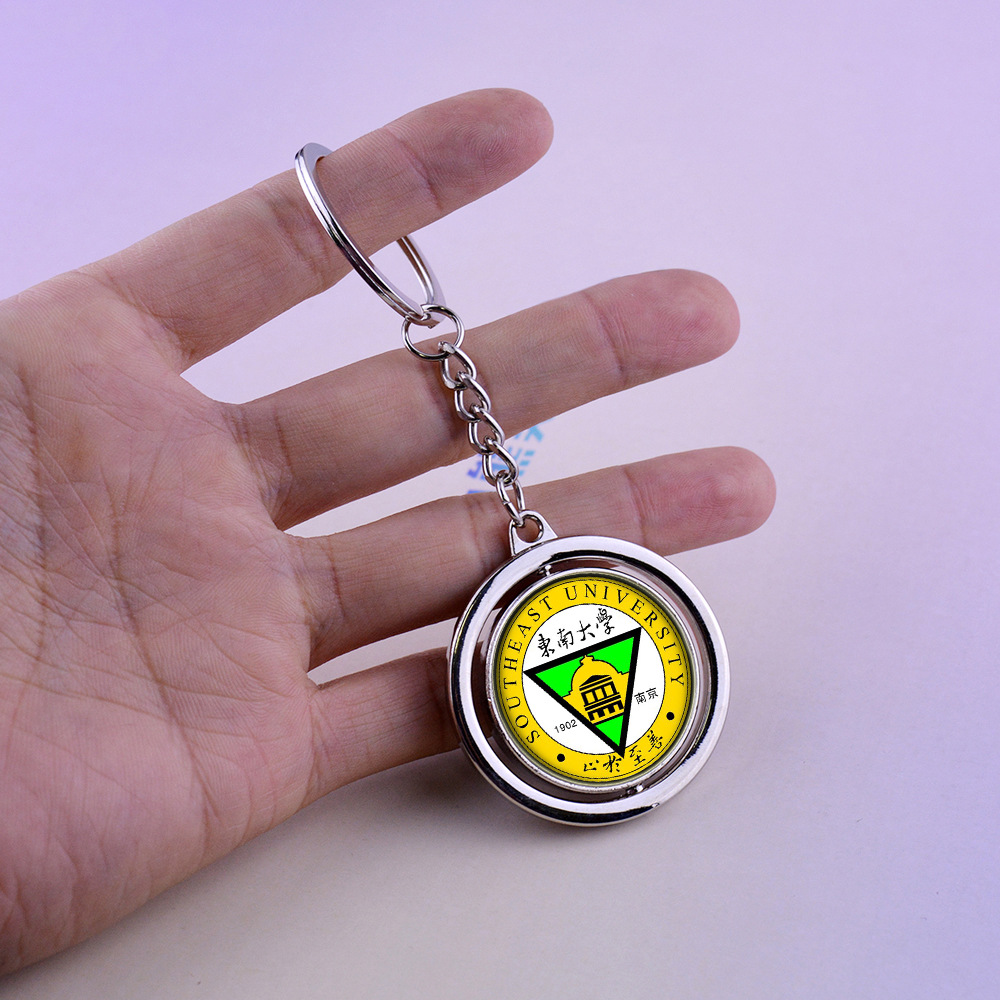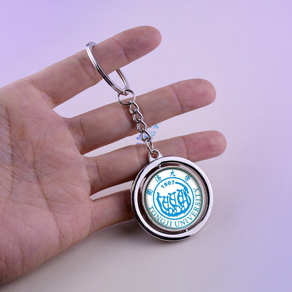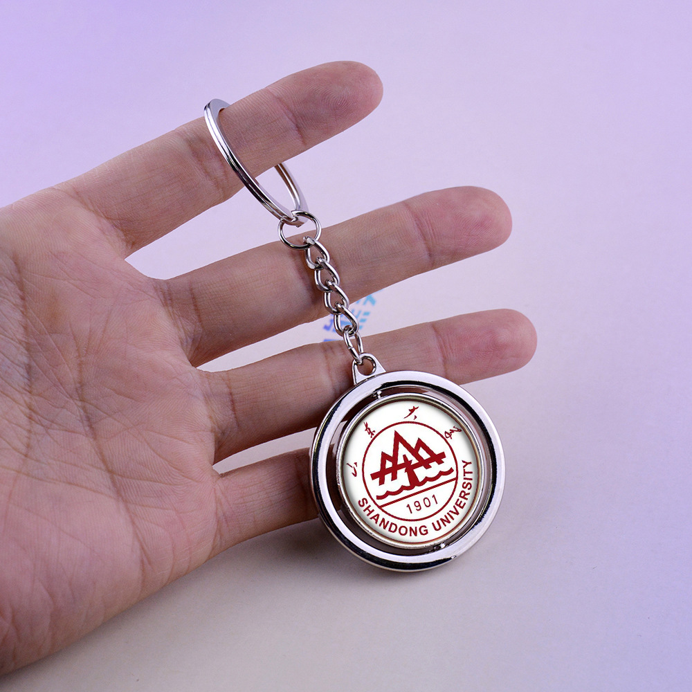 칭북 유명 학교 엠블럼 키 체인 회전 양면 발광 열쇠 고리 펜던트 학생 열쇠 고리 대학 기념 선물스토어 가기