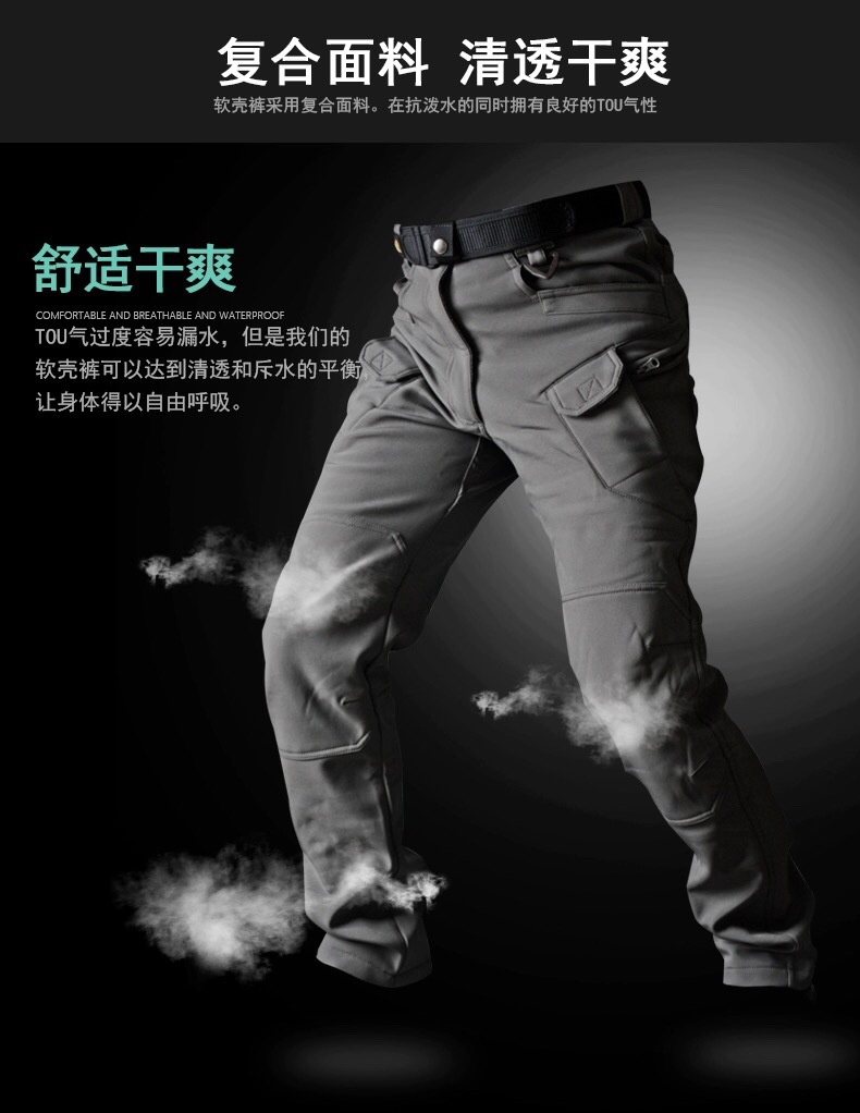 가을과 겨울 야외 상어 피부 충전 바지 기모 따뜻한 군사 팬 전술 소프트 케이스 전체 탄성