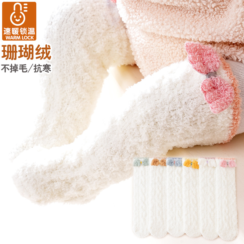 아기 스타킹 겨울 기모 바닥 양말 만화 따뜻한 잠금 높은 산호 양털 양말의 따뜻한 아기