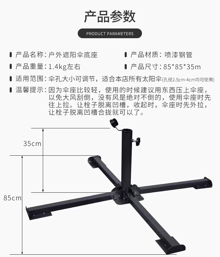 우산 받침대 십자형 접이식 확장형 금속 방청 휴대용 조절 가능 방풍 블랙 스테인리스 스틸 스탠드스토어 가기