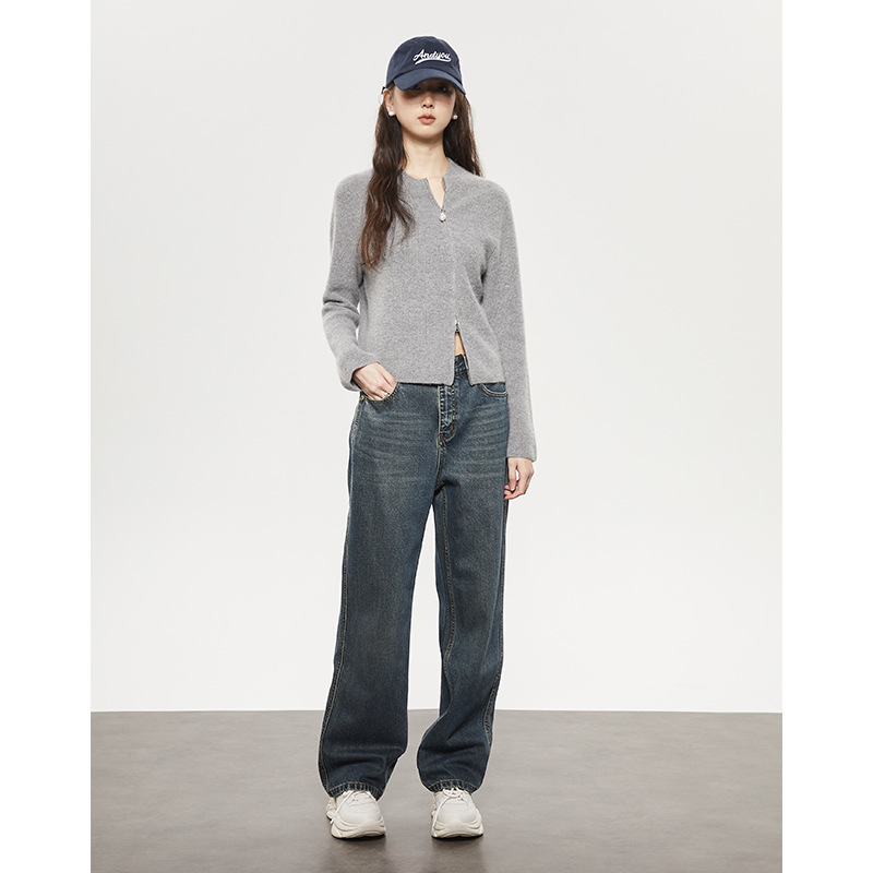 MCL 대나무 섬유 기모 청바지 여자의 23ss 가을과 겨울 두꺼운 따뜻한 슬림 캐주얼 스트레이트 바지