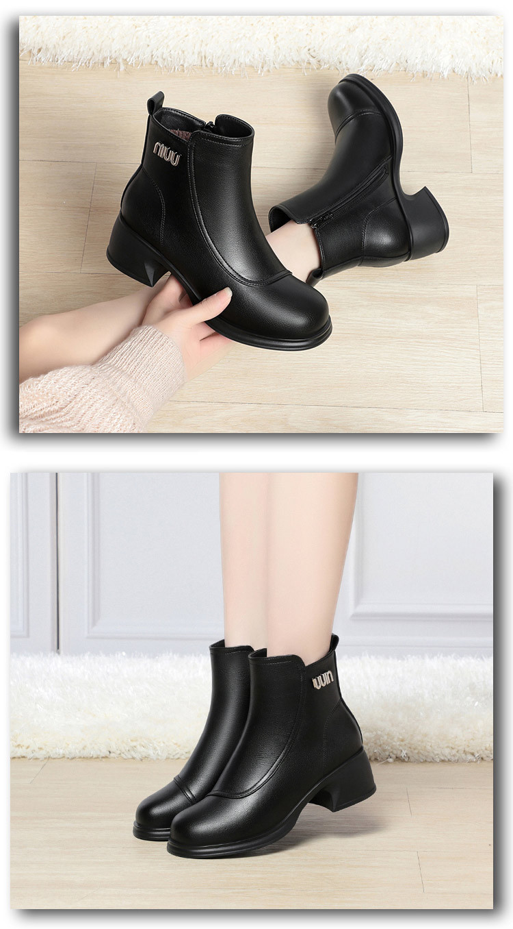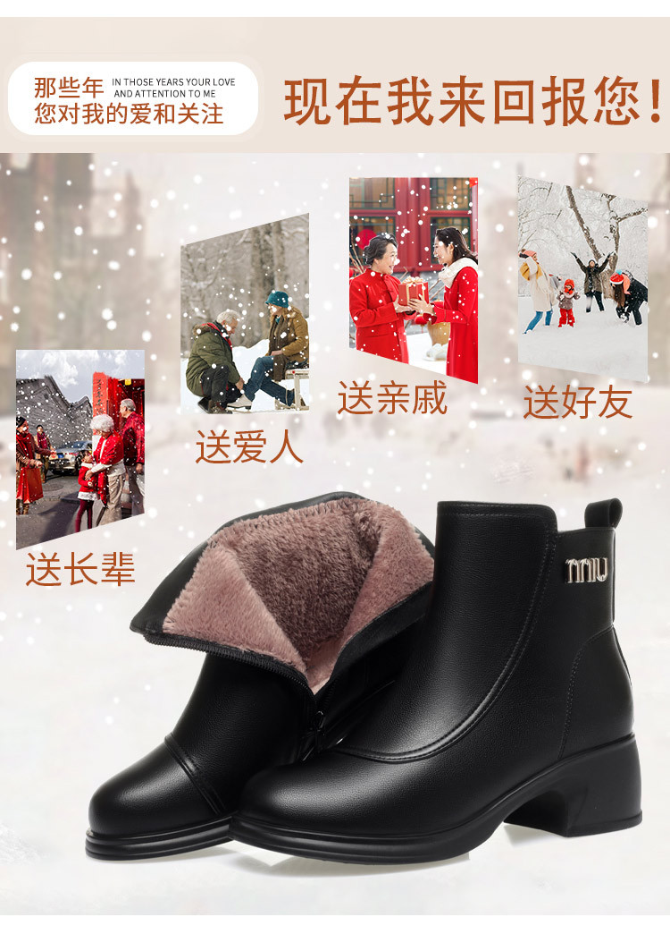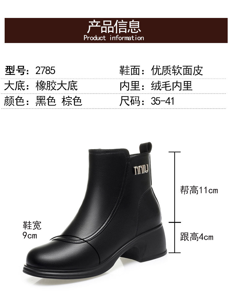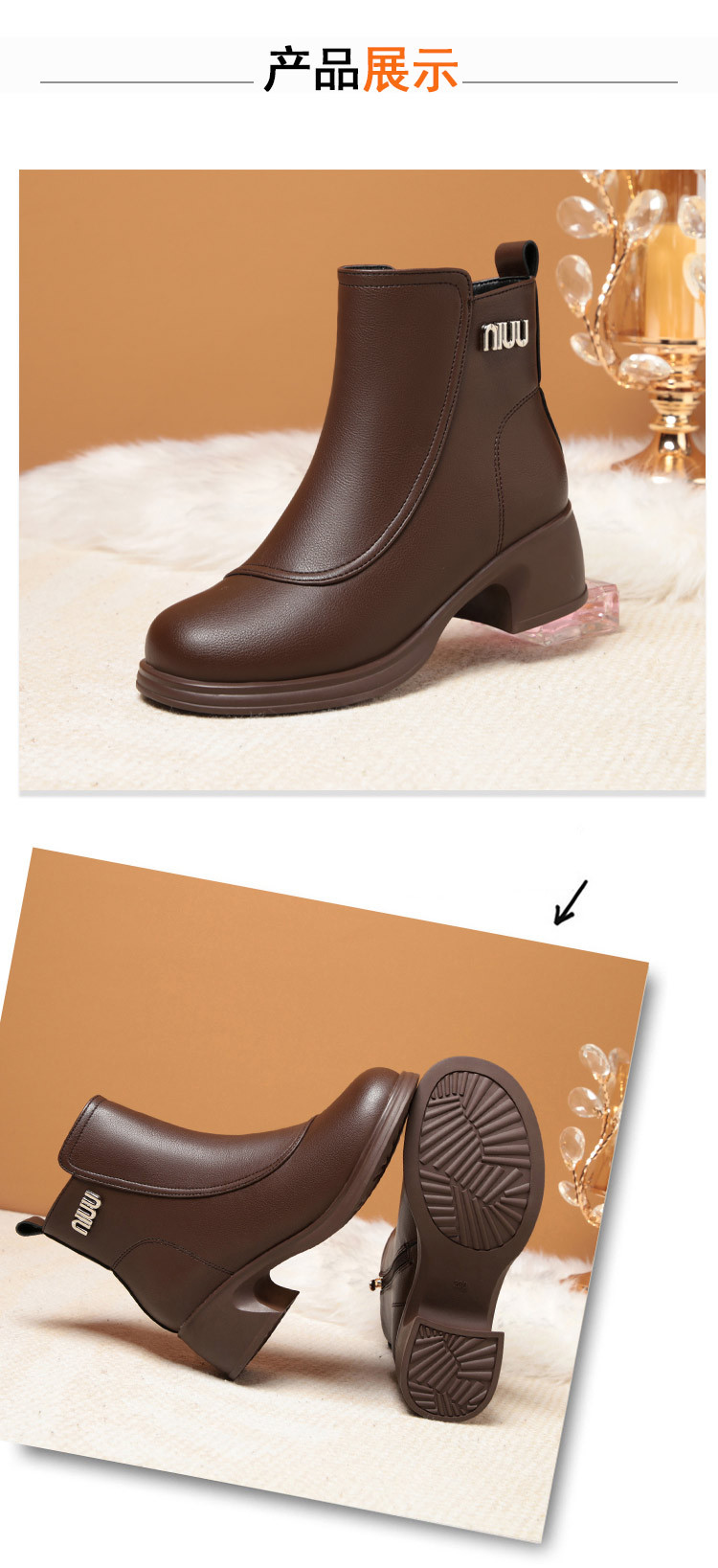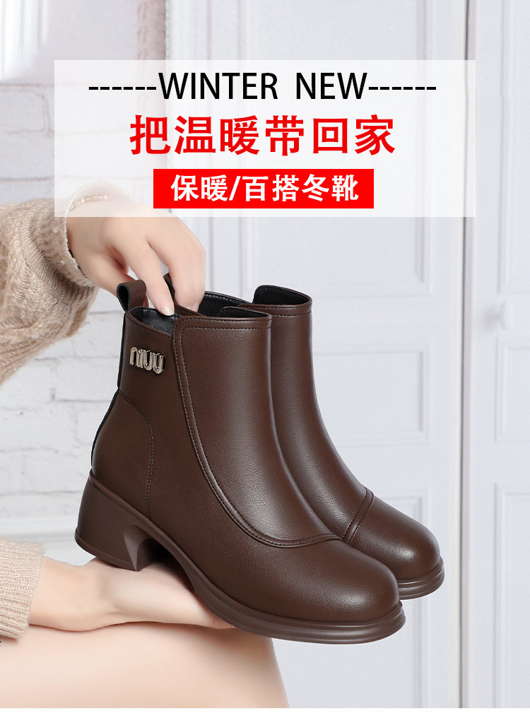 신발 여성의 가을과 겨울 짧은 부츠 2023 새로운 패션 부츠 두꺼운 굽 기모 가죽 신발 중년 여성 부츠 엄마 신발 면화스토어 가기