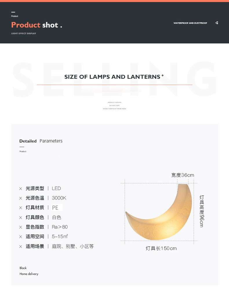 초승달 빛 야외 태양 달 빛 안뜰 풍경 빛 빌라 정원 분위기 빛 방수 잔디 바닥 램프