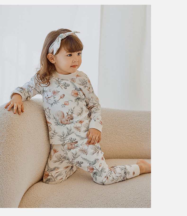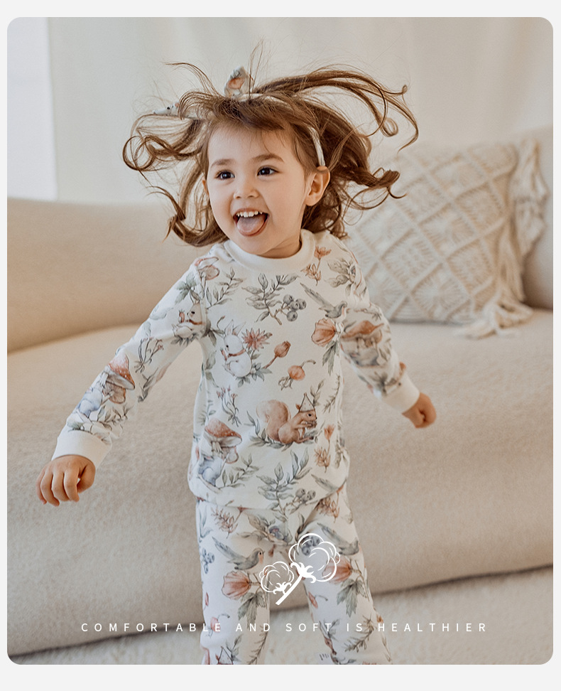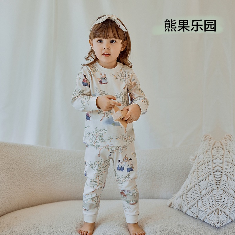 어린이 가을 옷과 바지 세트 면 아기 열 속옷 소년 소녀 아기 봄과 가을 분할 면 가정 옷스토어 가기
