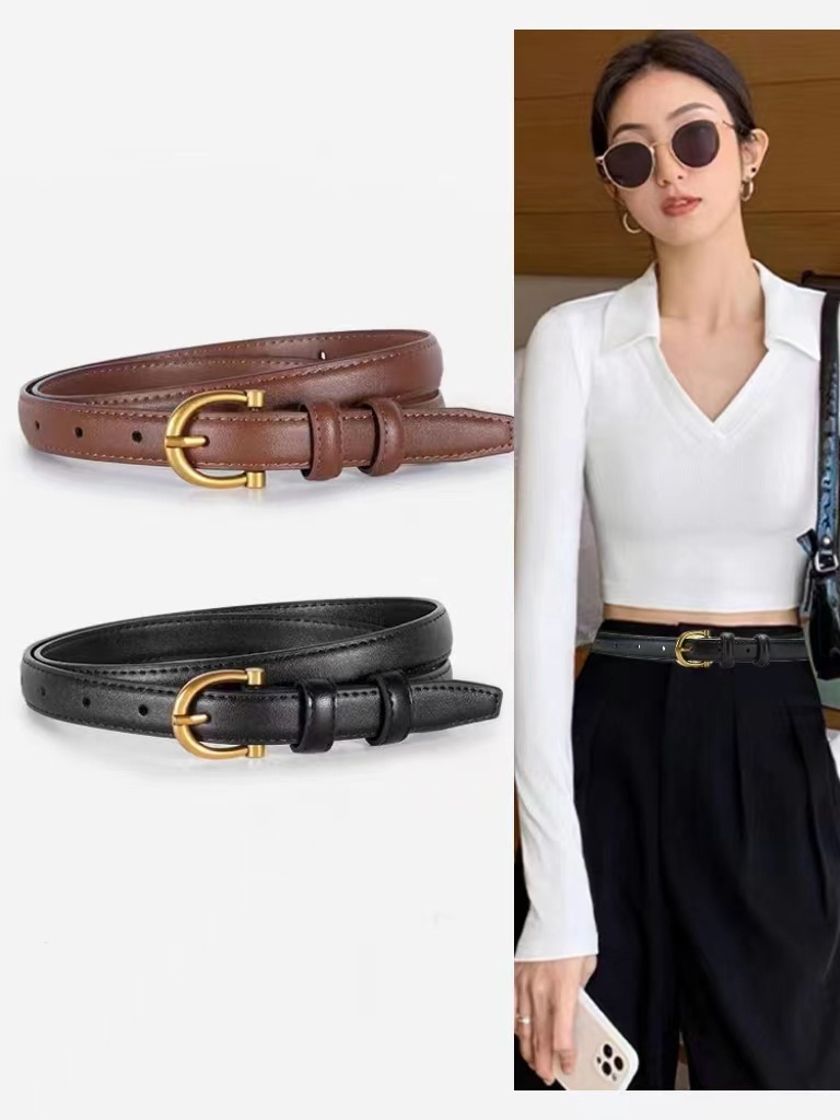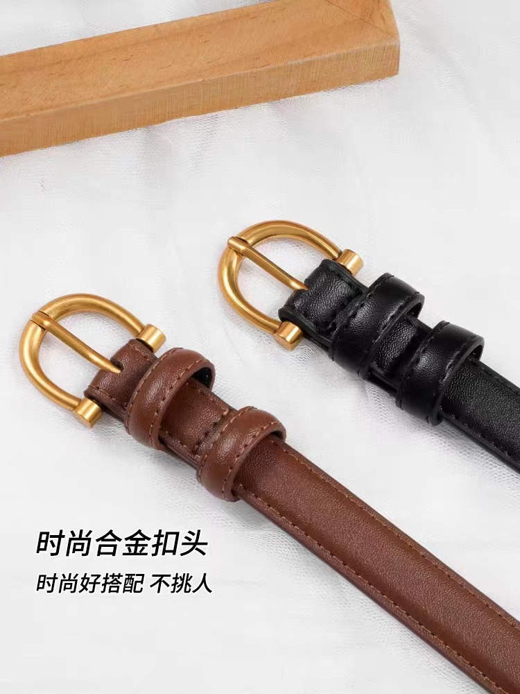 소가죽 벨트, 여성용 신형 핀 버클 가죽 벨트, 다용도 장식, 한국 스타일, 패셔너블하고 심플한 스타일, 정장 바지에 어울리는 얇은 바지 벨트스토어 가기