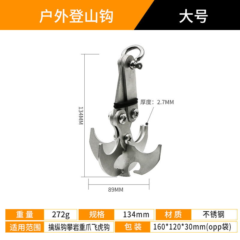 야외 등반 후크 중력 후크 스테인레스 스틸 생존 접이식 탈출 후크 바위 등반 무거운 발톱 비행 호랑이 후크스토어 가기
