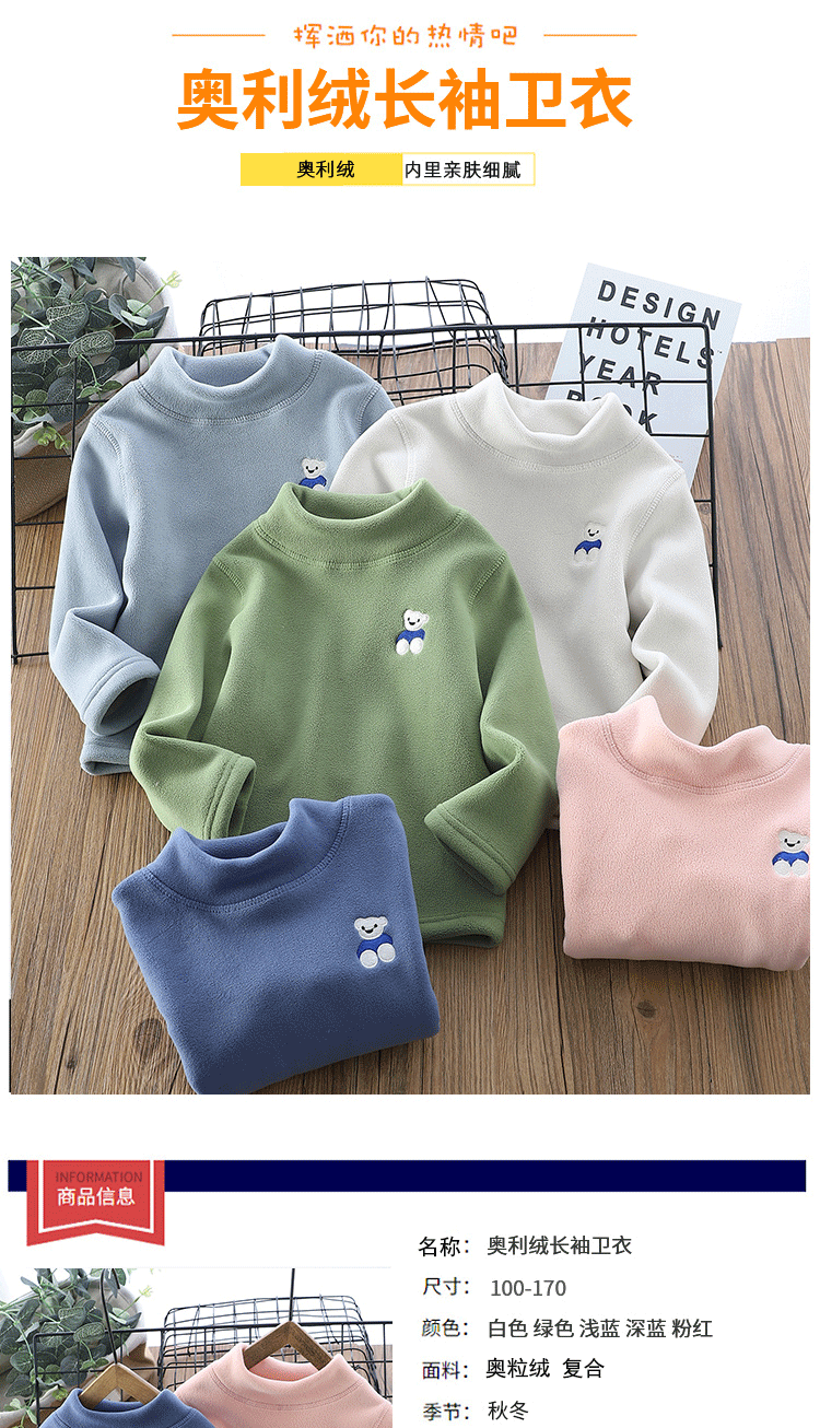 하프 하이 칼라 남아 스웨터 패딩 아기 원피스 벨벳 아동베이스 셔츠 따뜻한 겨울 새 아동복 조수스토어 가기