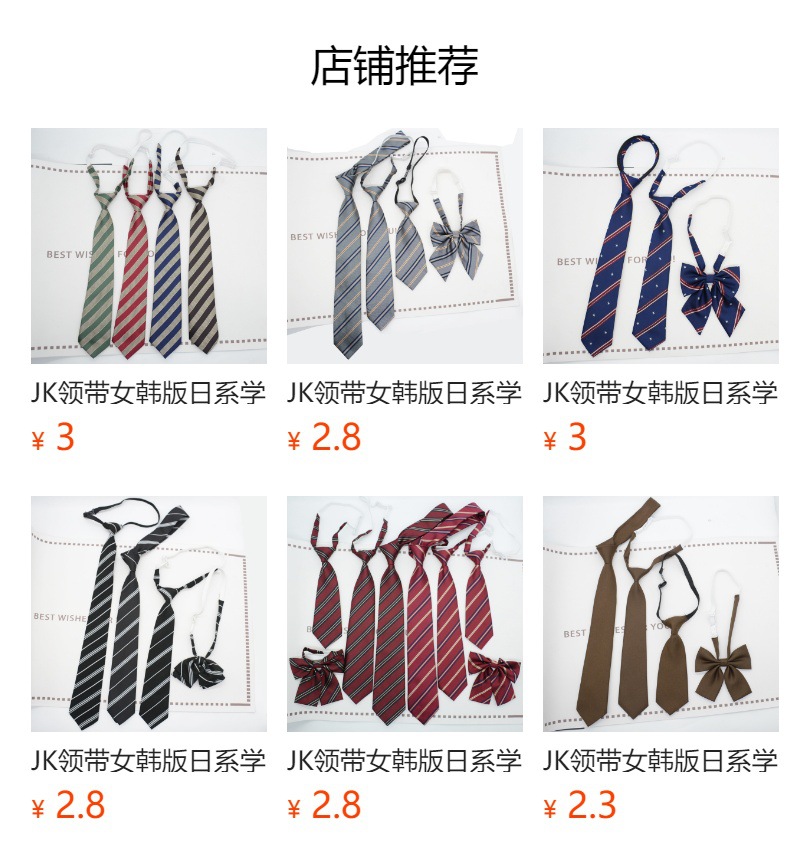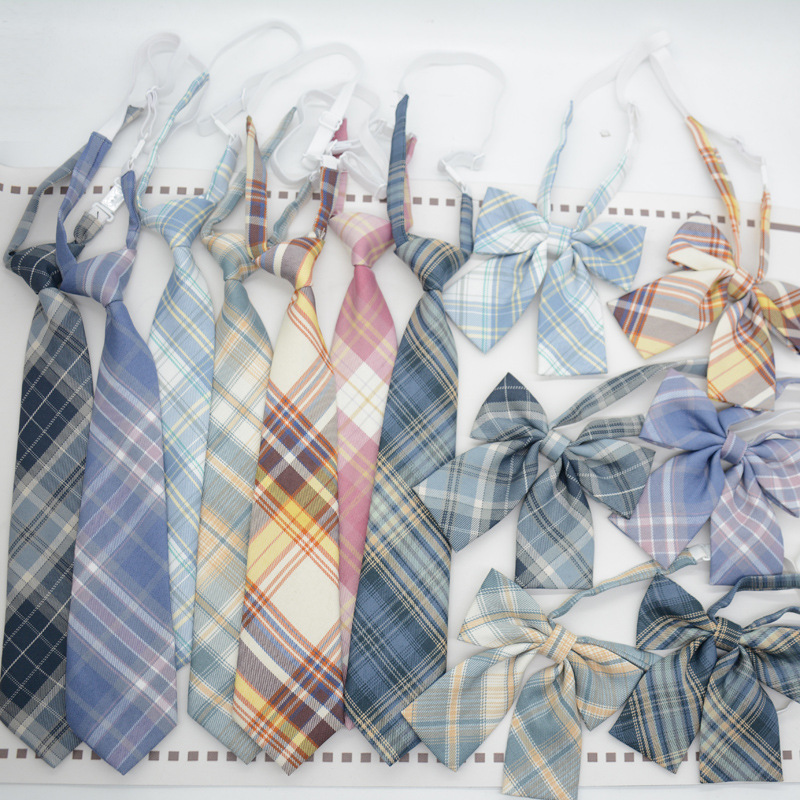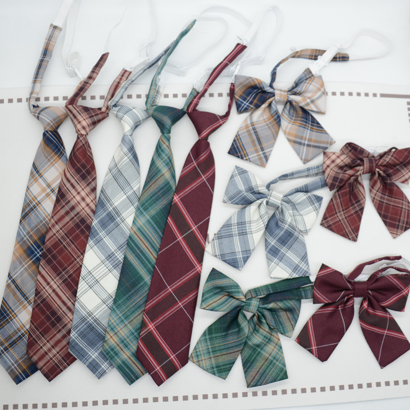 JK 넥타이 여성용 한국식 일본식 대학 스타일 매듭없는 교복 액세서리 격자 무늬 사진 활 칼라 꽃스토어 가기