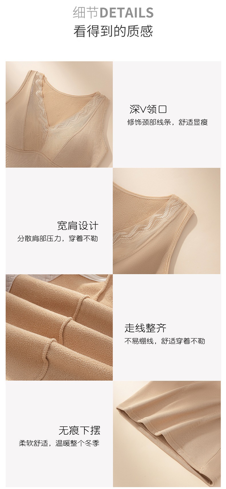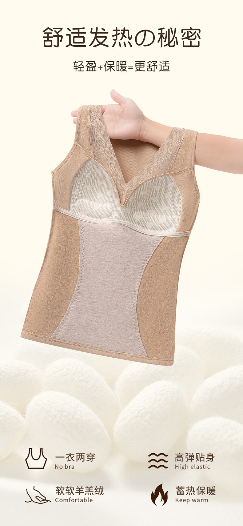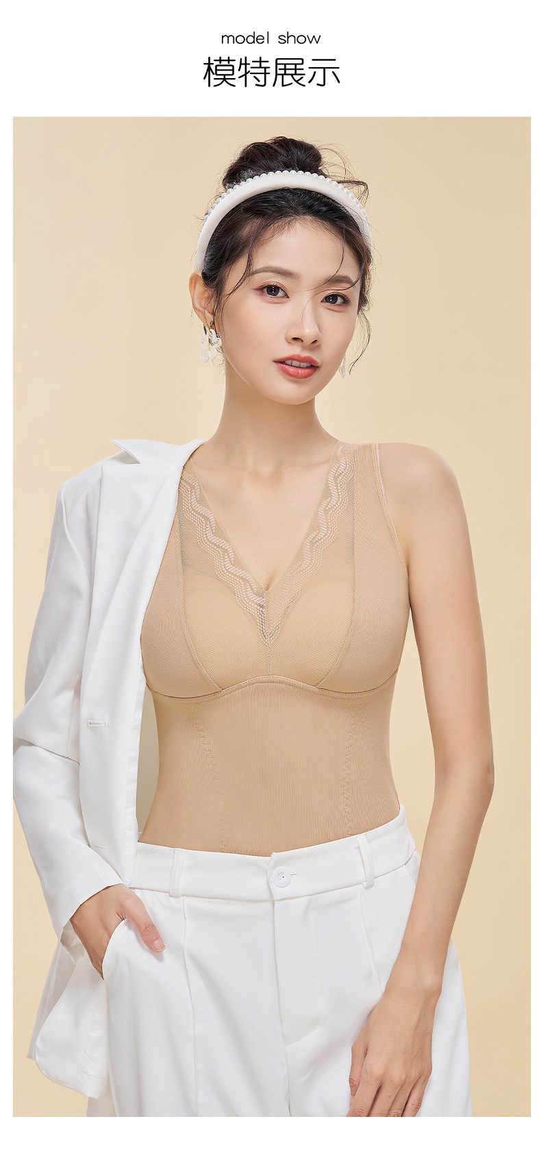 섹시한 V-넥 레이스 원활한 따뜻한 조끼 겉옷베이스 고정 가슴 패드 캐시미어 기모 두꺼운 슬림 핏 속옷스토어 가기