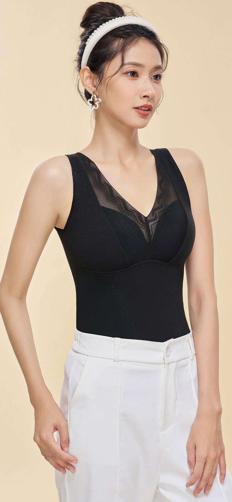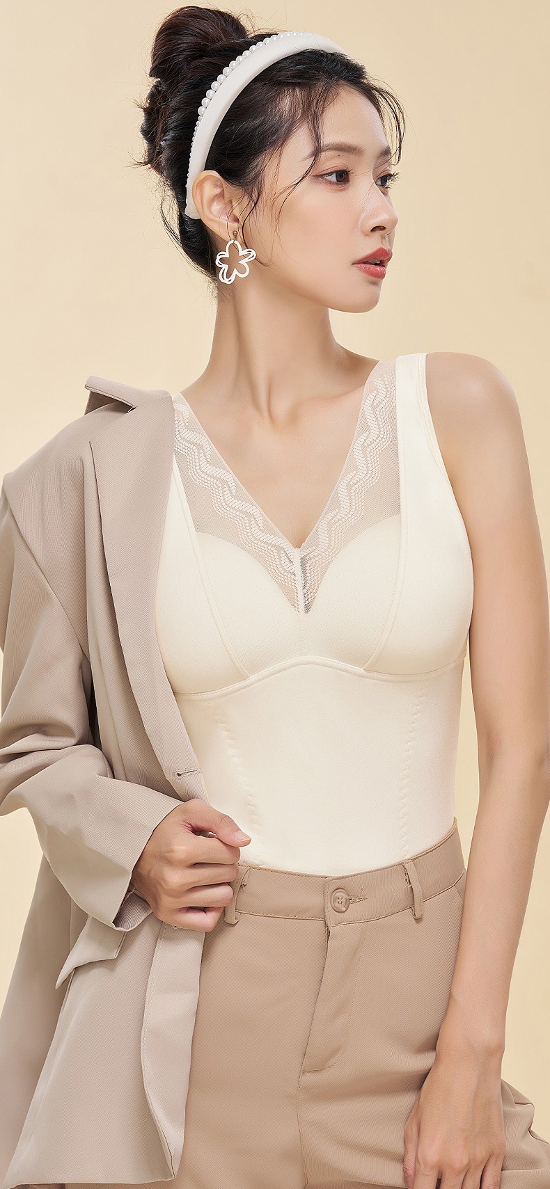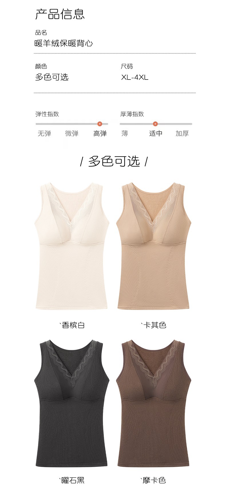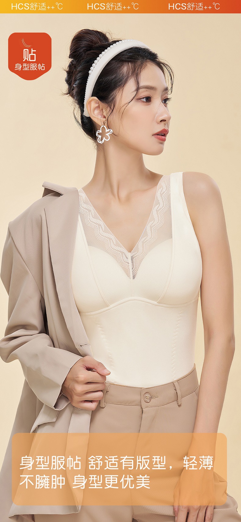 섹시한 V-넥 레이스 원활한 따뜻한 조끼 겉옷베이스 고정 가슴 패드 캐시미어 기모 두꺼운 슬림 핏 속옷스토어 가기