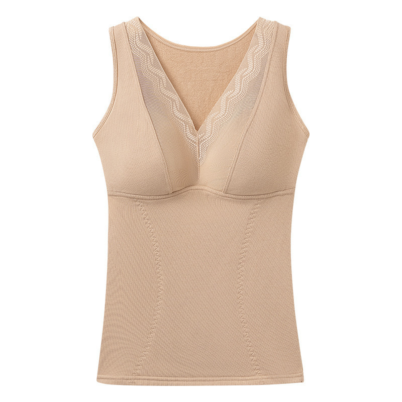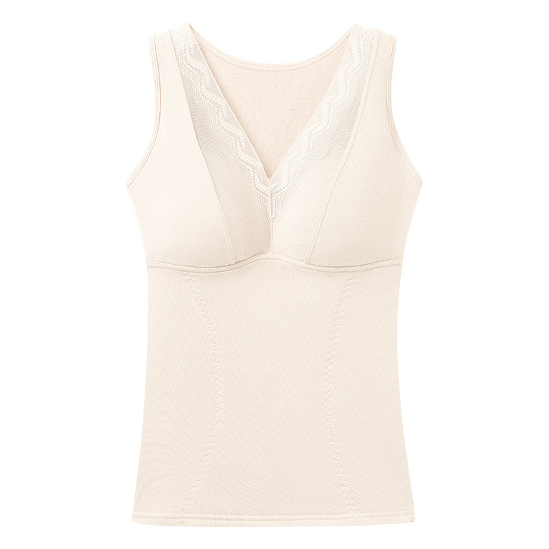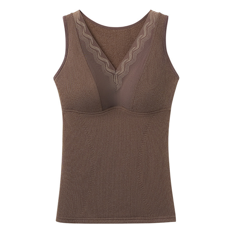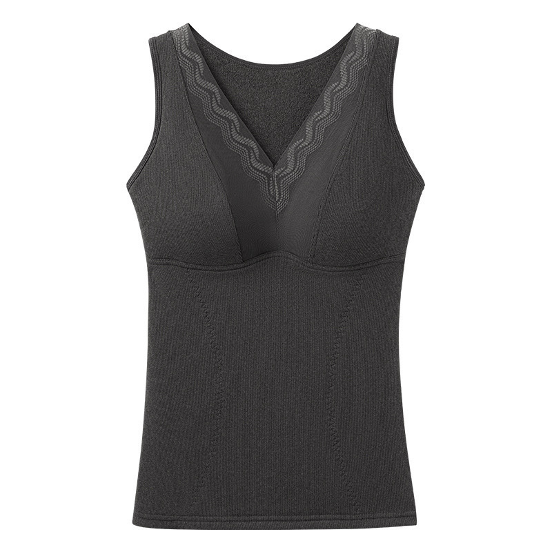 섹시한 V-넥 레이스 원활한 따뜻한 조끼 겉옷베이스 고정 가슴 패드 캐시미어 기모 두꺼운 슬림 핏 속옷