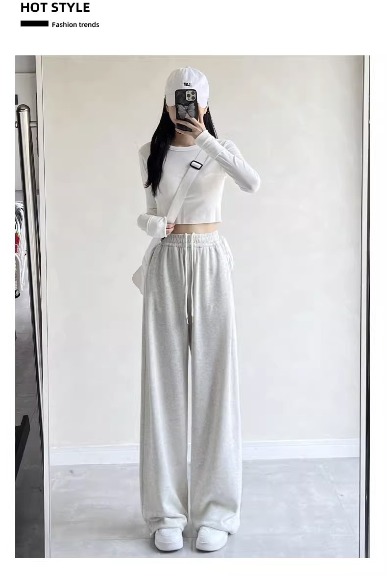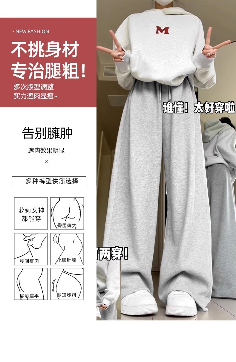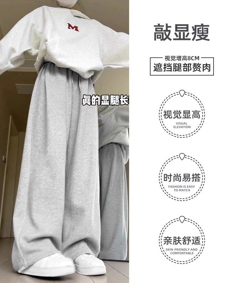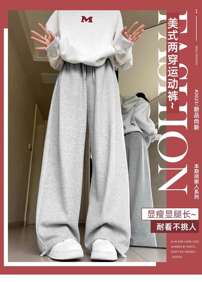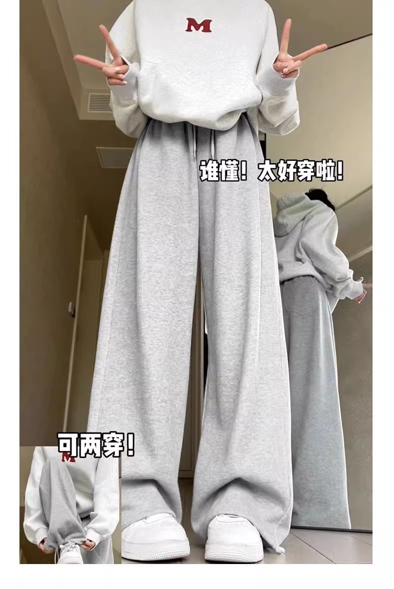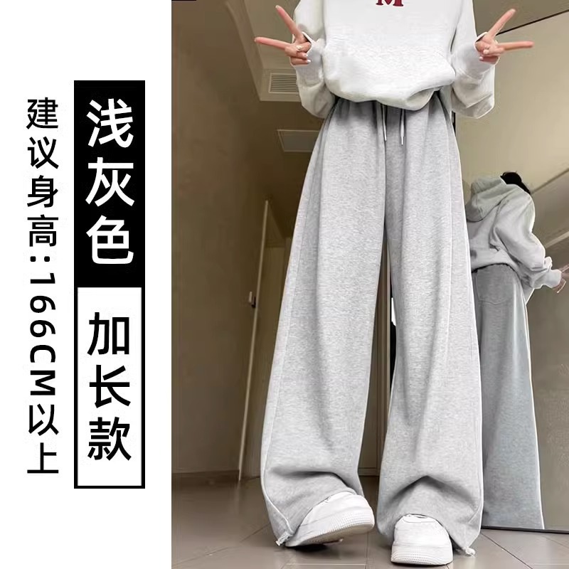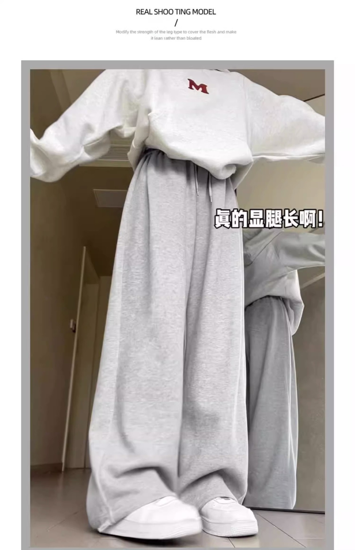 여성용 그레이 스웨트 팬츠 2025 봄, 가을 새로운 루즈 대형 스트레이트 와이드 레그 팬츠 아메리칸 캐주얼 레깅스 스웨트 팬츠스토어 가기