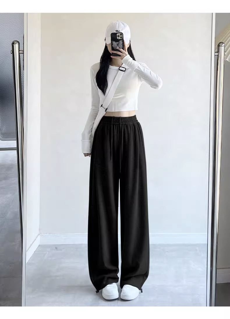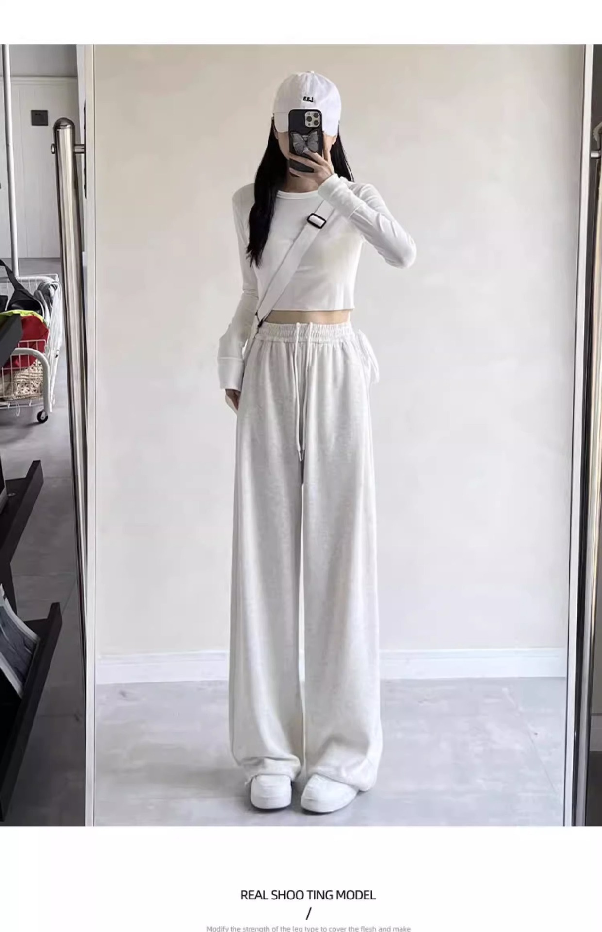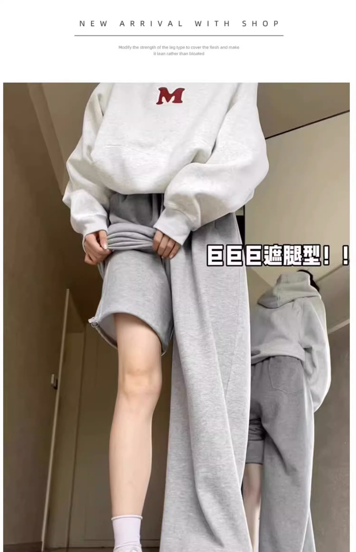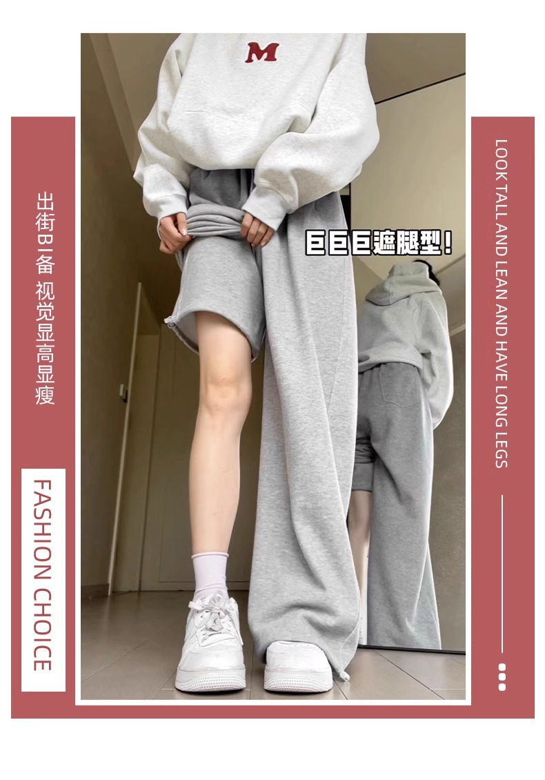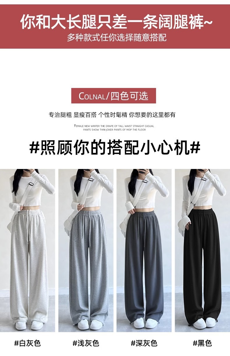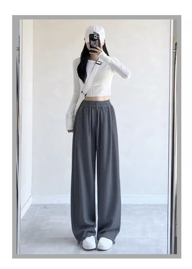 여성용 그레이 스웨트 팬츠 2025 봄, 가을 새로운 루즈 대형 스트레이트 와이드 레그 팬츠 아메리칸 캐주얼 레깅스 스웨트 팬츠스토어 가기
