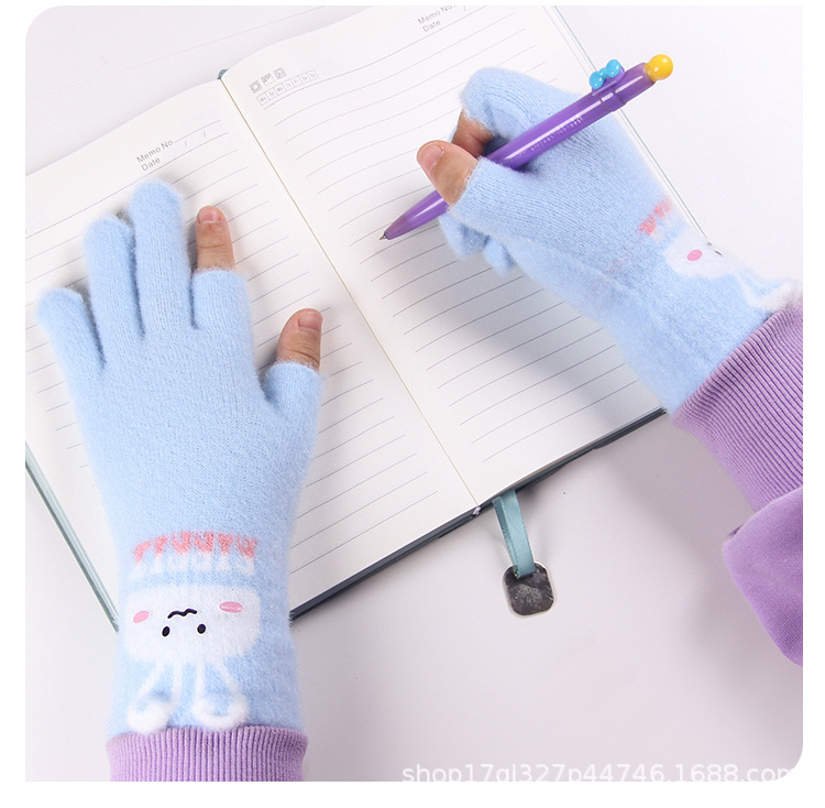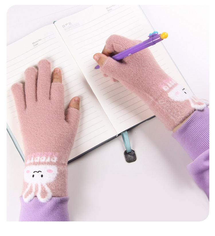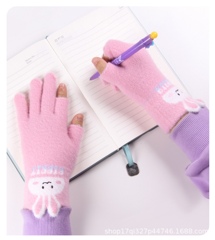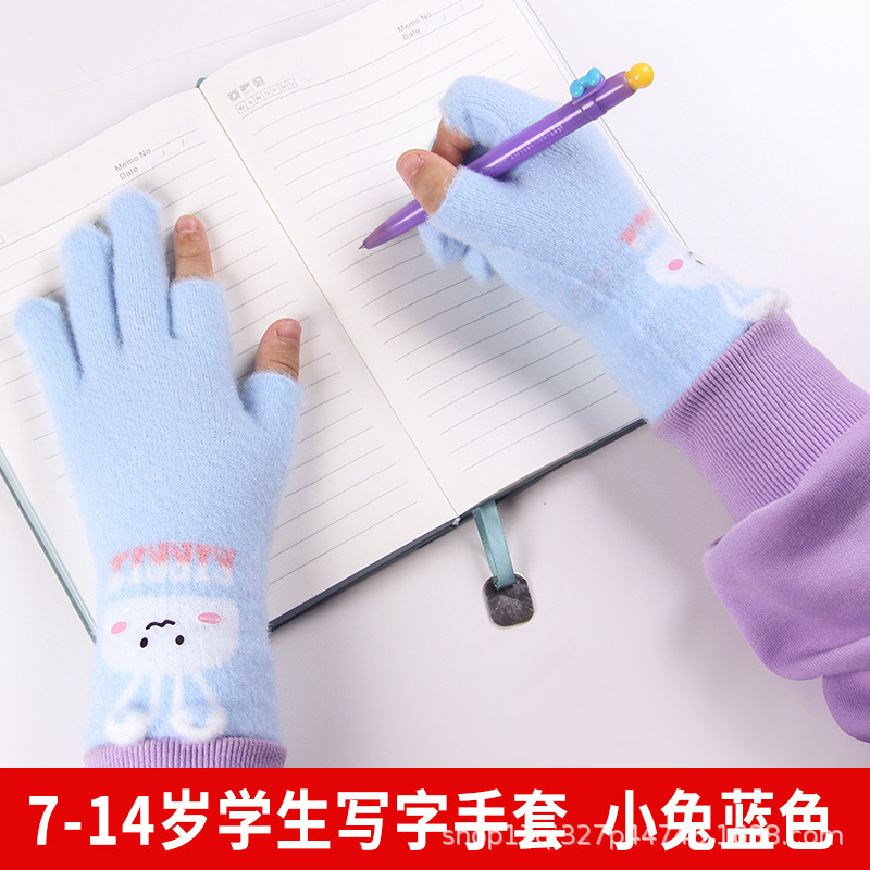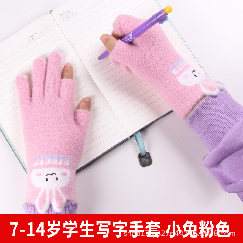 어린이 장갑 겨울 초등학생 쓰기 소녀 다섯 손가락 두 손가락 소년 따뜻한 두꺼운 소녀 숙제 장갑