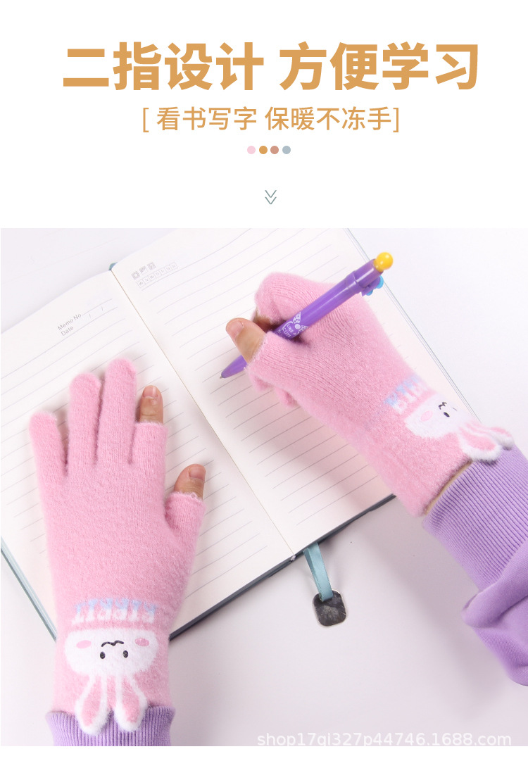 어린이 장갑 겨울 초등학생 쓰기 소녀 다섯 손가락 두 손가락 소년 따뜻한 두꺼운 소녀 숙제 장갑스토어 가기