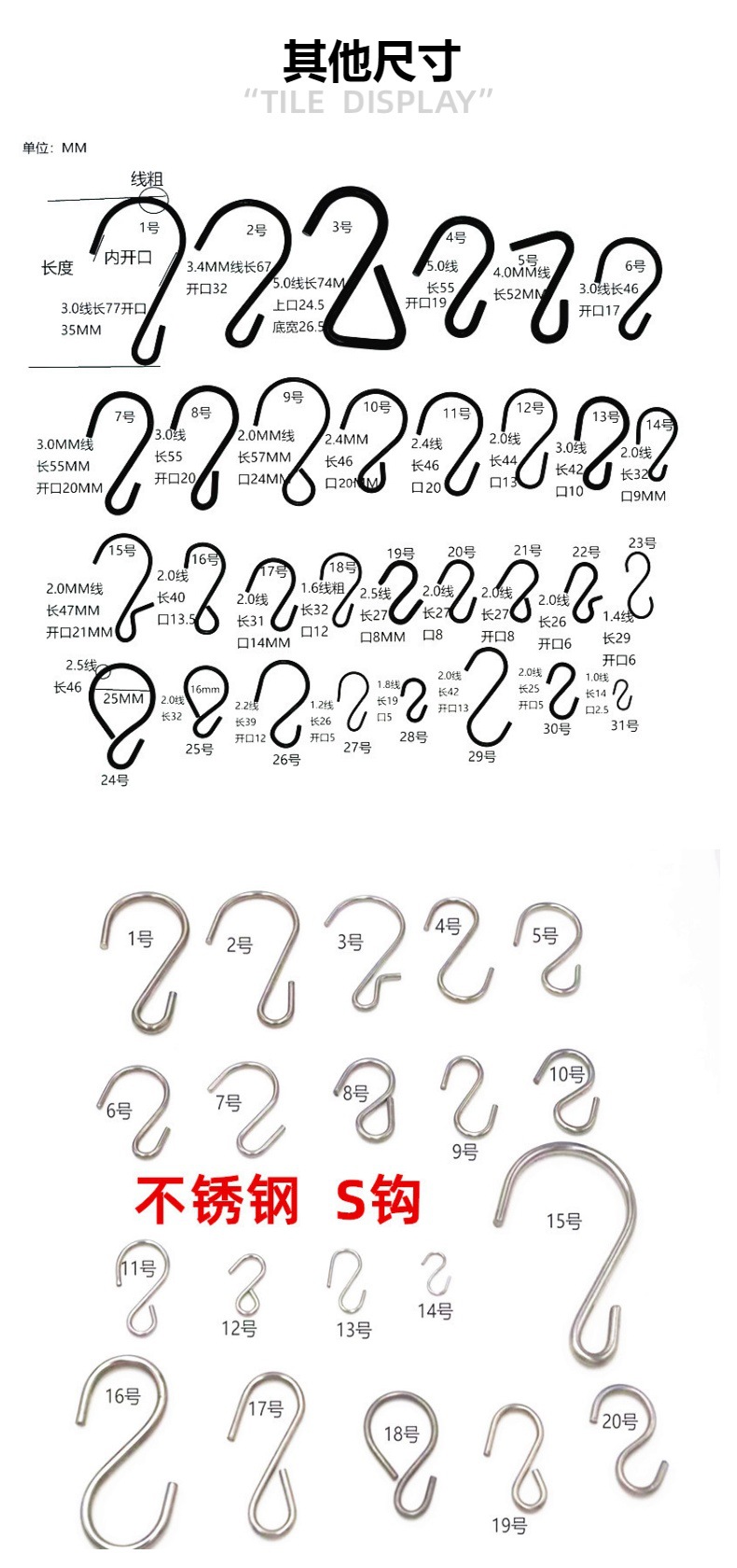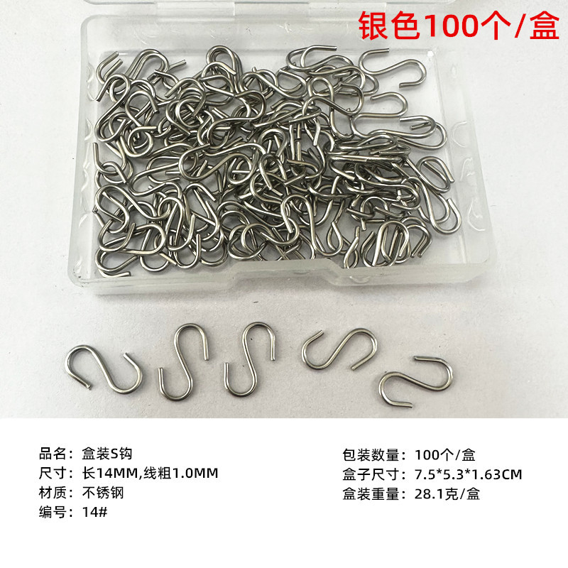 박스 스테인레스 스틸 S 후크 14MM 금속 후크 미니 슈퍼 스몰 사이즈 0.55 인치 블랙 100/150/200
