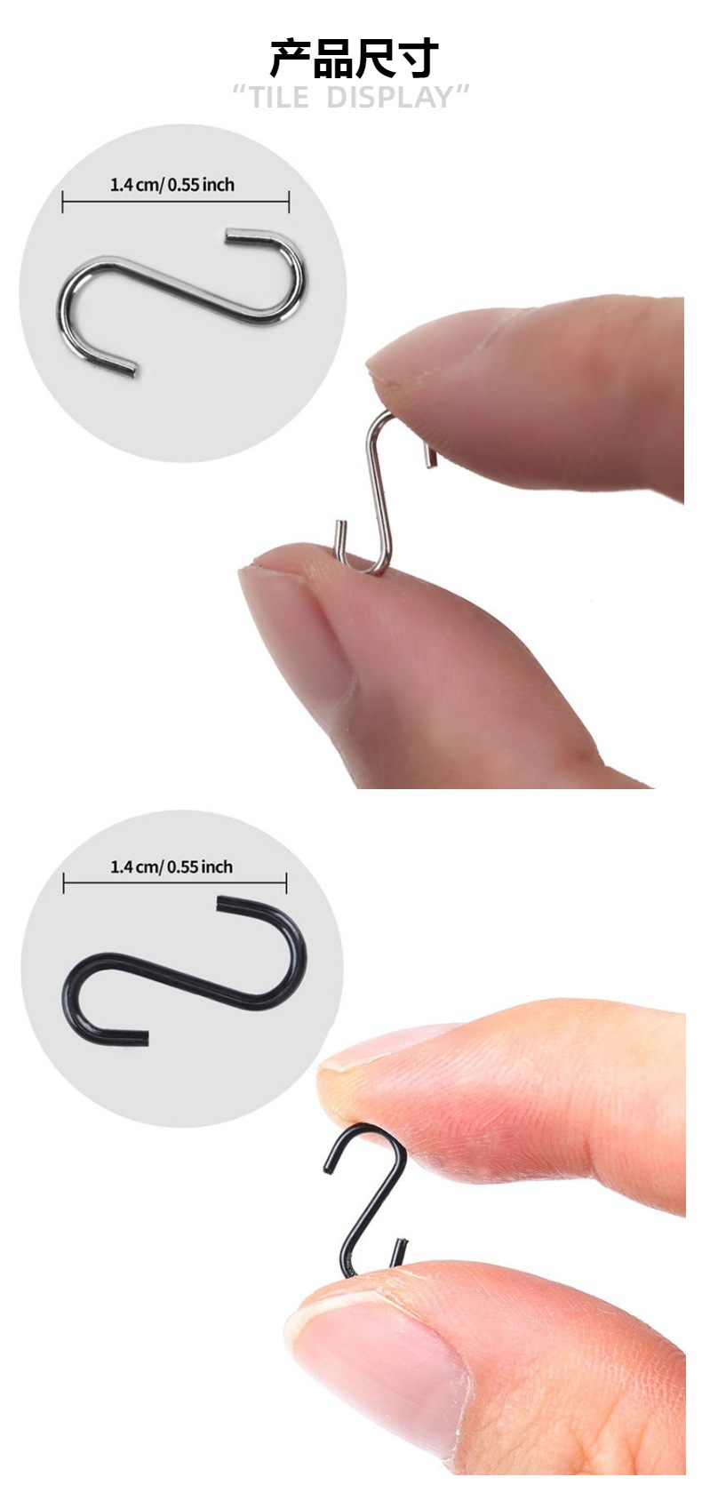 박스 스테인레스 스틸 S 후크 14MM 금속 후크 미니 슈퍼 스몰 사이즈 0.55 인치 블랙 100/150/200스토어 가기