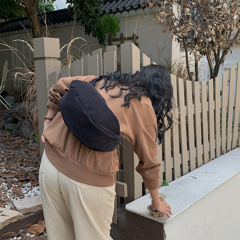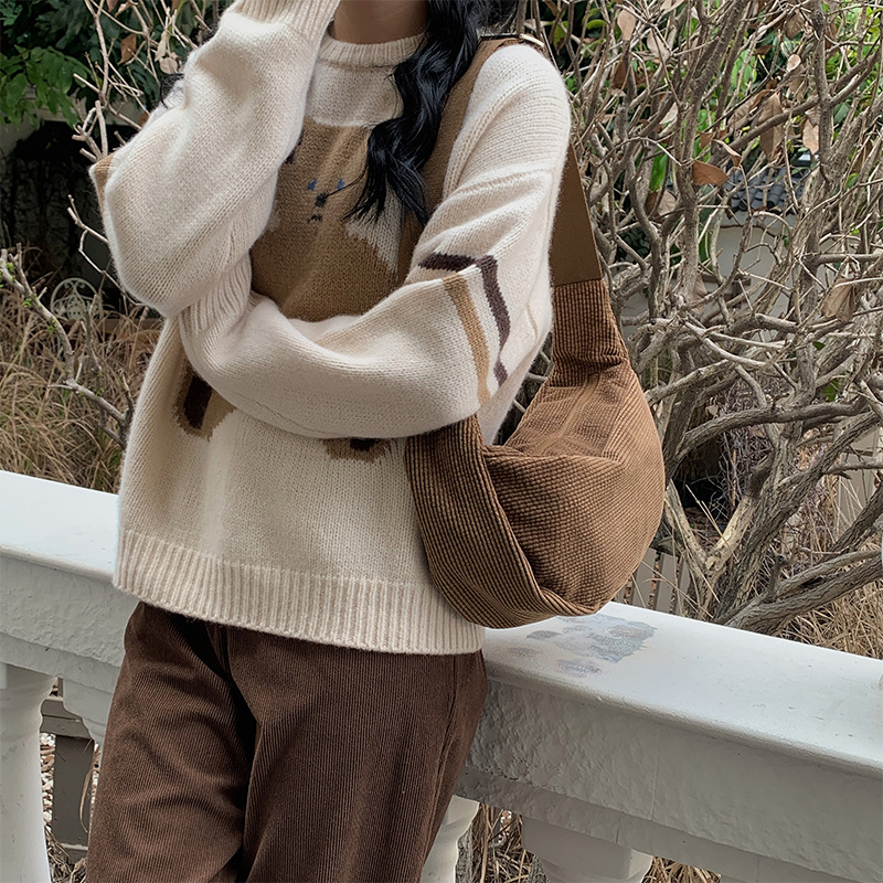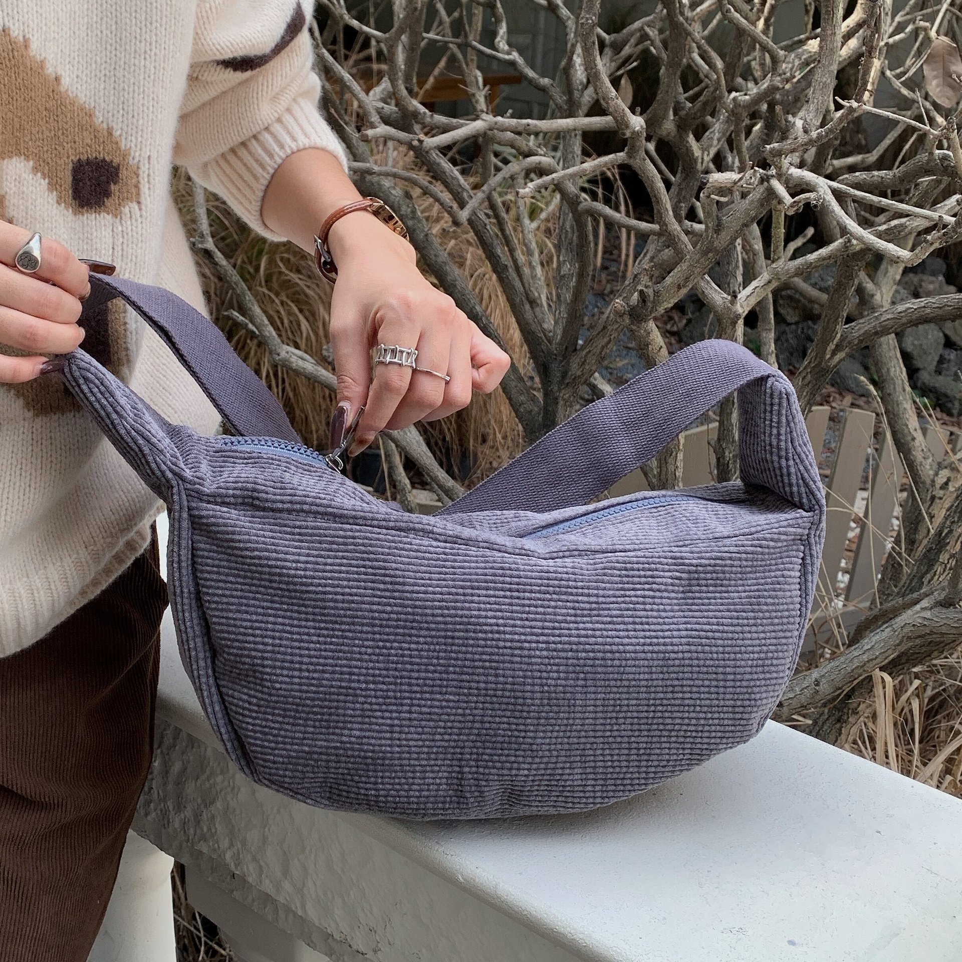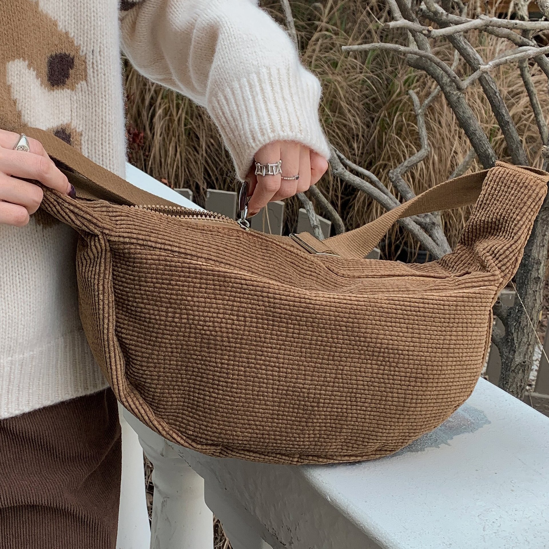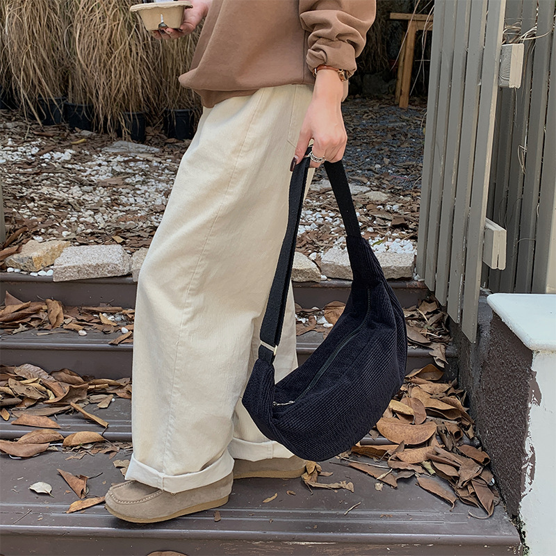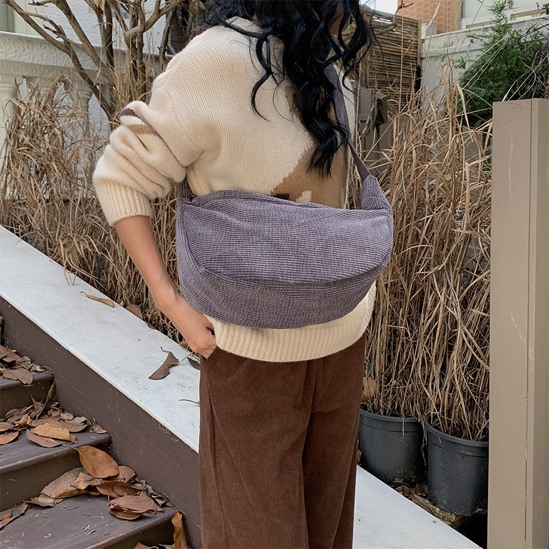 새로운 레트로 가을과 겨울 코듀로이 만두 가방 하라주쿠 게으른 스타일 캐주얼 심플 한국 스타일 in 단색 크로스바디 백스토어 가기