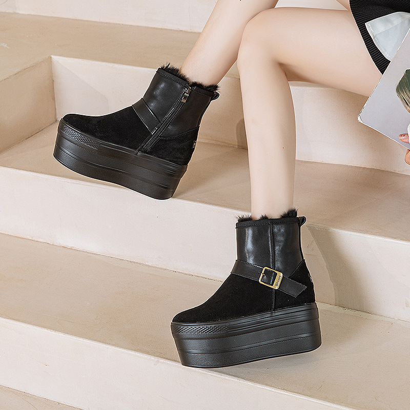 두꺼운 밑창 여성용 스노우 부츠, 2025년 겨울 신상, 다용도 패션, 토끼털 버클, 플랫폼 슈즈, 하이힐, 트렌디스토어 가기