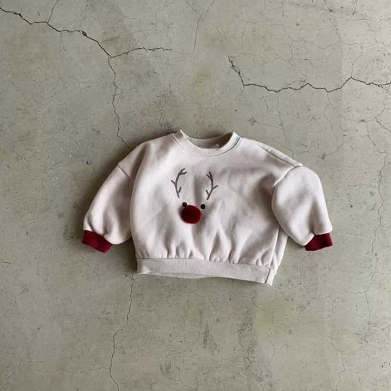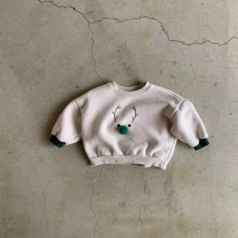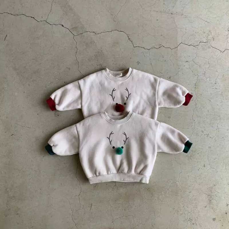 2025 가을 한국 스타일 크리스마스 티셔츠 ins 스타일 뿔 프린트 볼 볼 휴일 의류 아동용 긴팔 탑