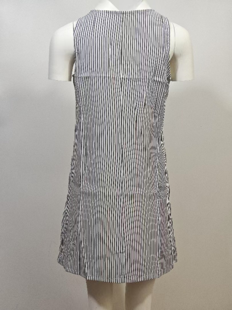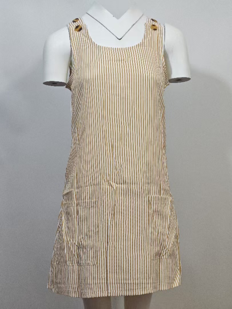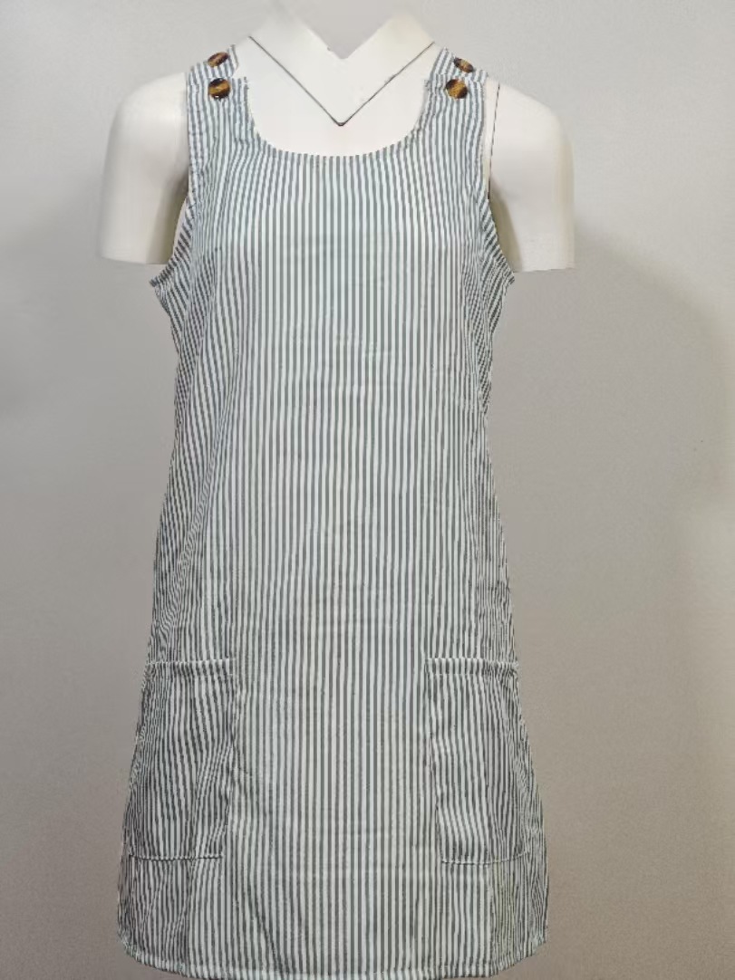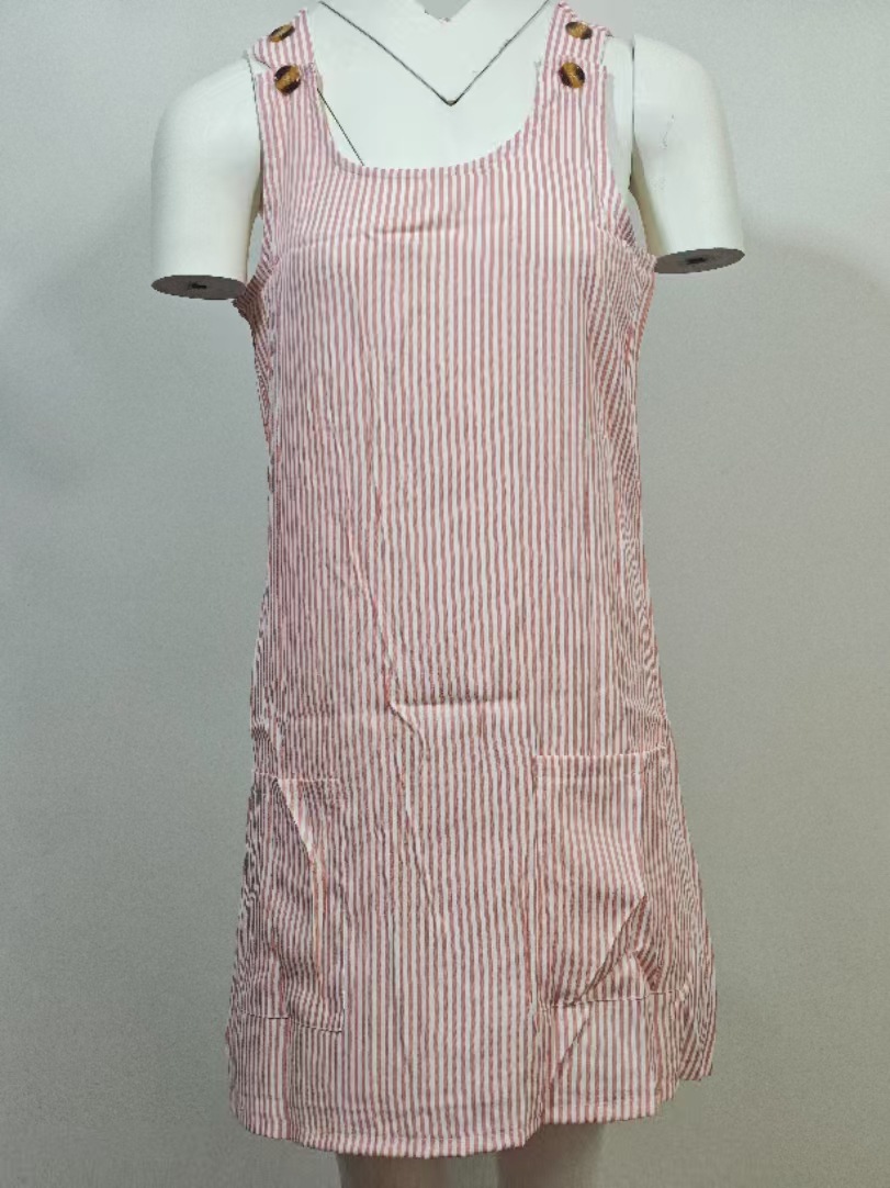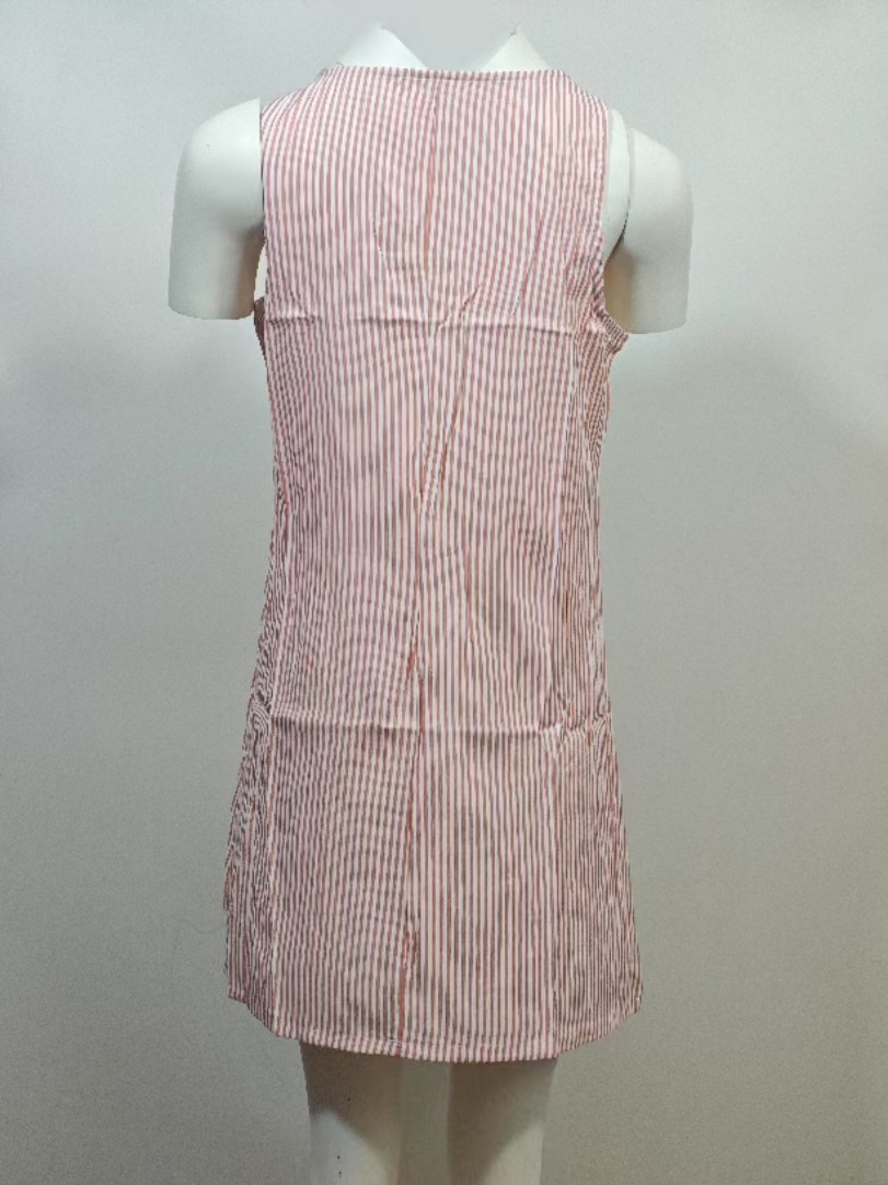 유럽풍 코트 아마존 독립 사이트 신상 라운드넥 포켓 스트라이프 끈 버튼 캐주얼 원피스 미니스커트