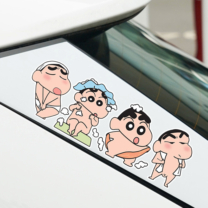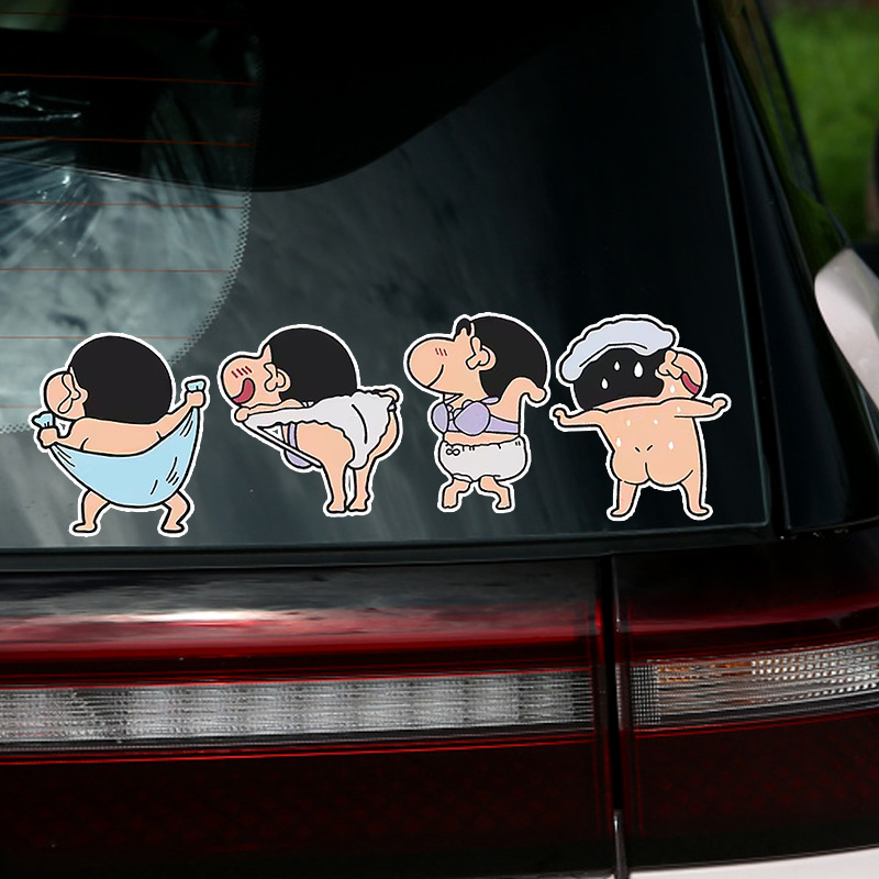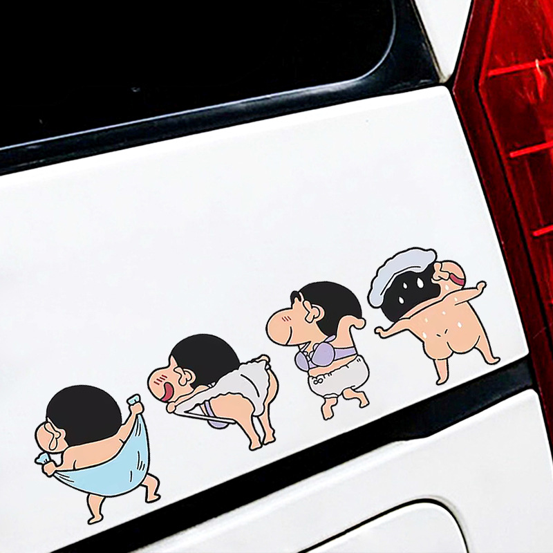 크레용 작은 새 스티커 귀여운 만화 재미 재미 전기 자동차 배터리 자동차 창 유리 후면 장식 스티커스토어 가기