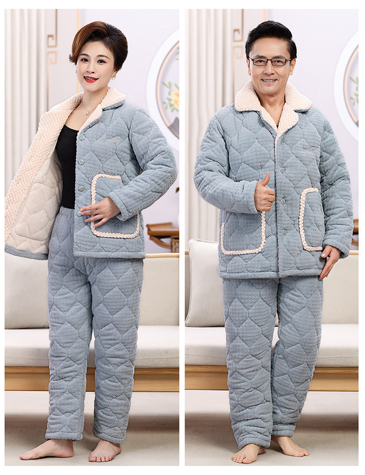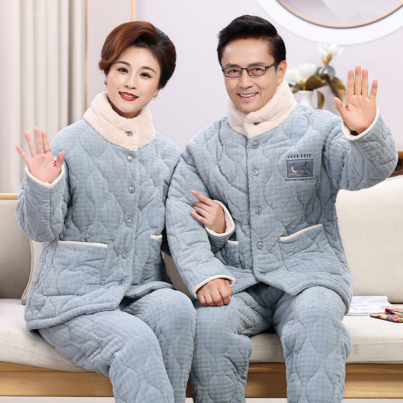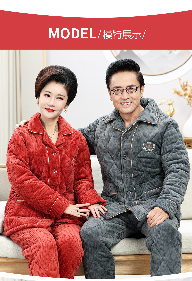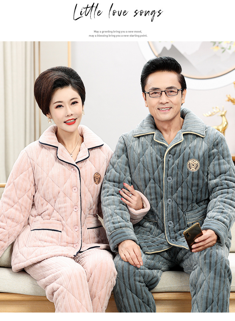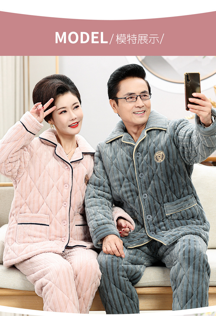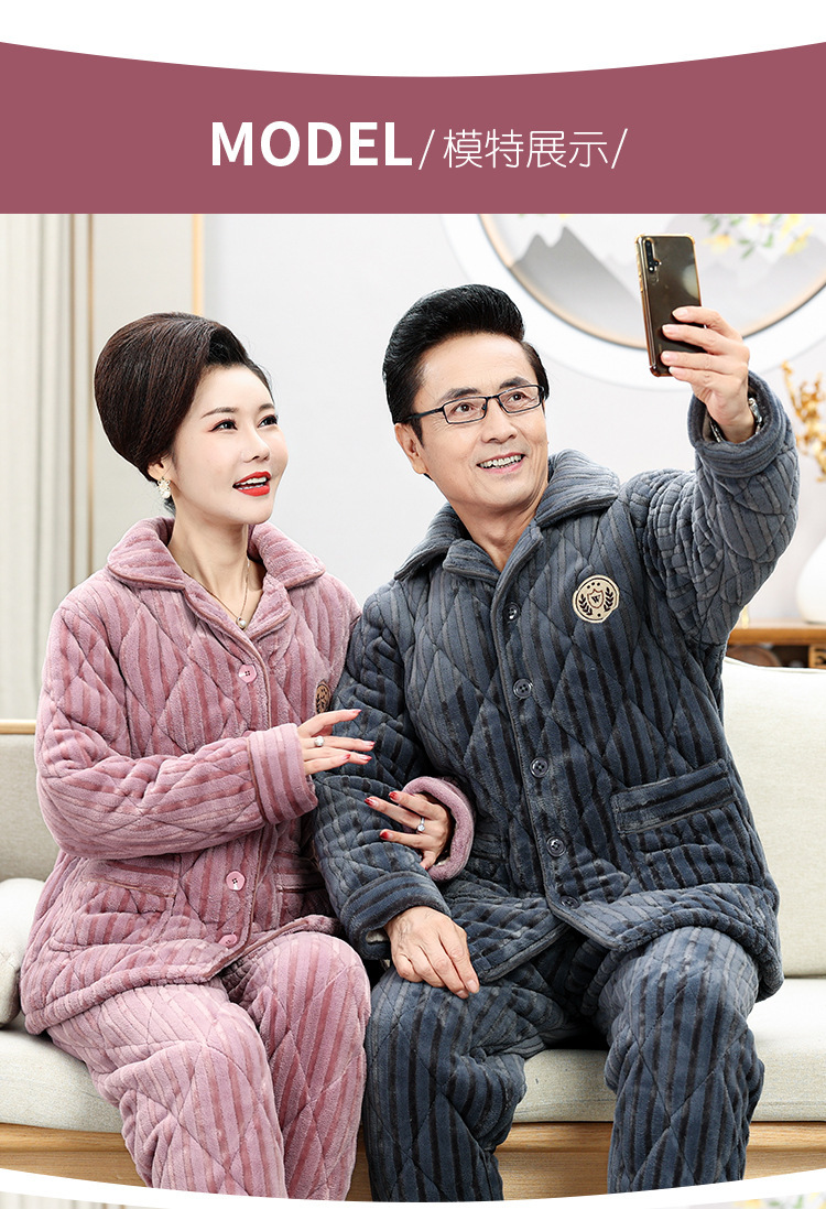 중년 엄마 잠옷 여자의 겨울 산호 양털 따뜻한 3 층 누비 이불 남자의 두꺼운 기모 아빠의 가정 옷