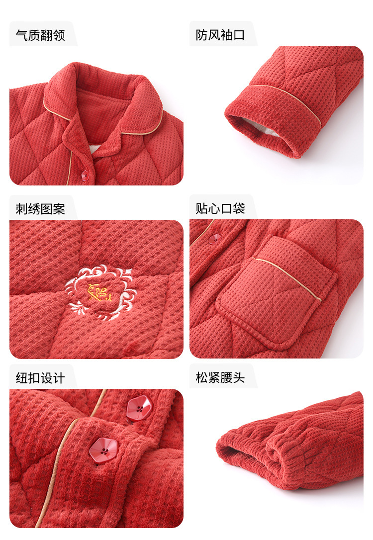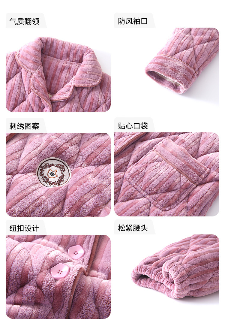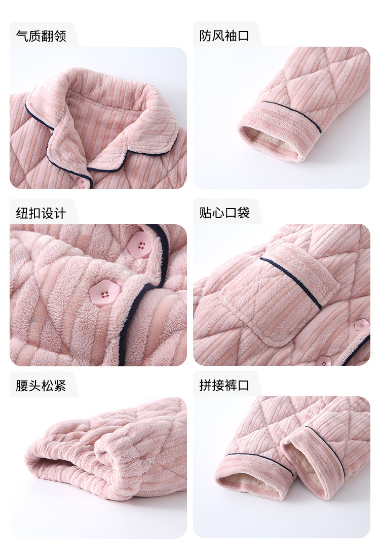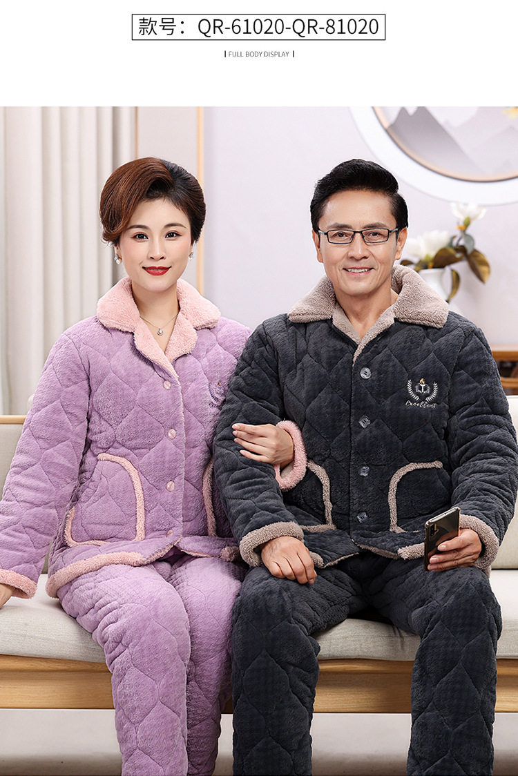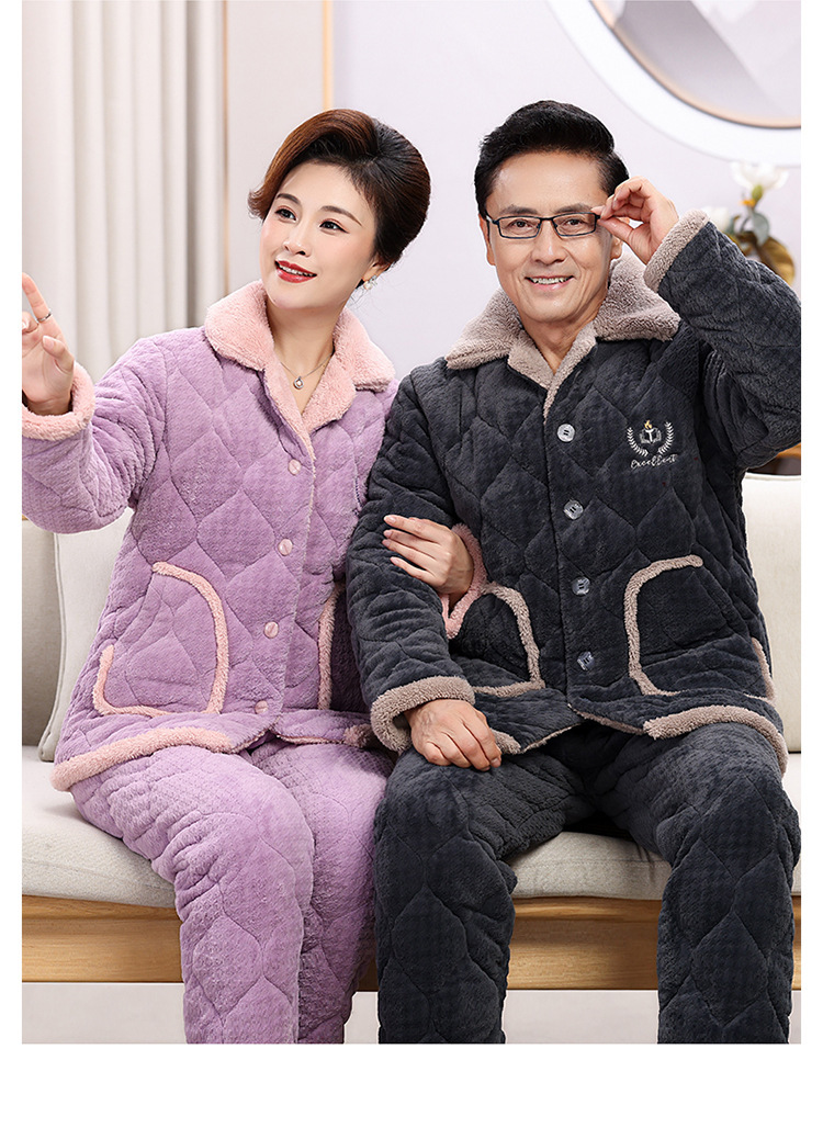 중년 엄마 잠옷 여자의 겨울 산호 양털 따뜻한 3 층 누비 이불 남자의 두꺼운 기모 아빠의 가정 옷