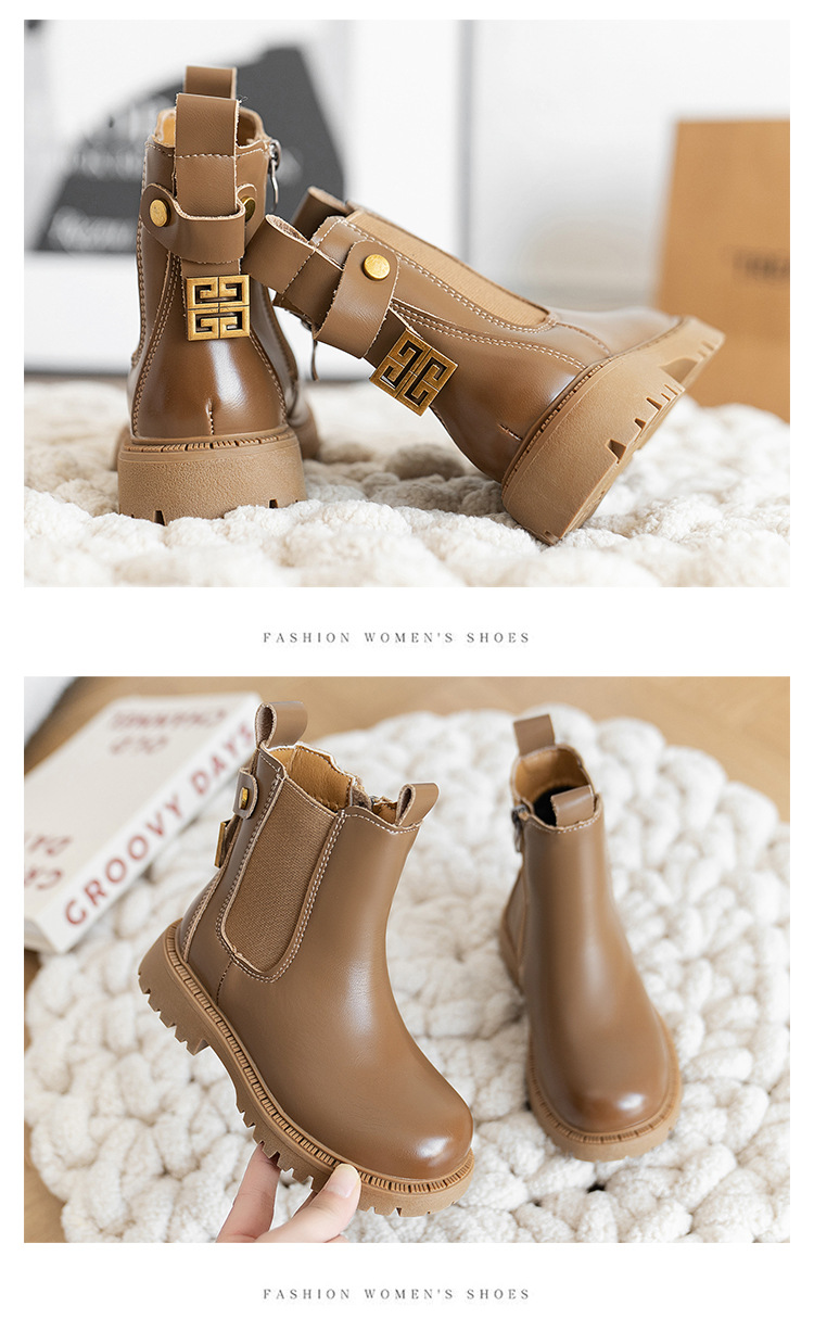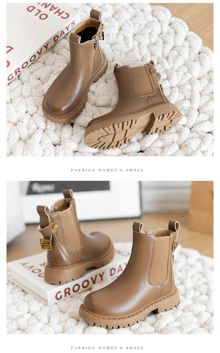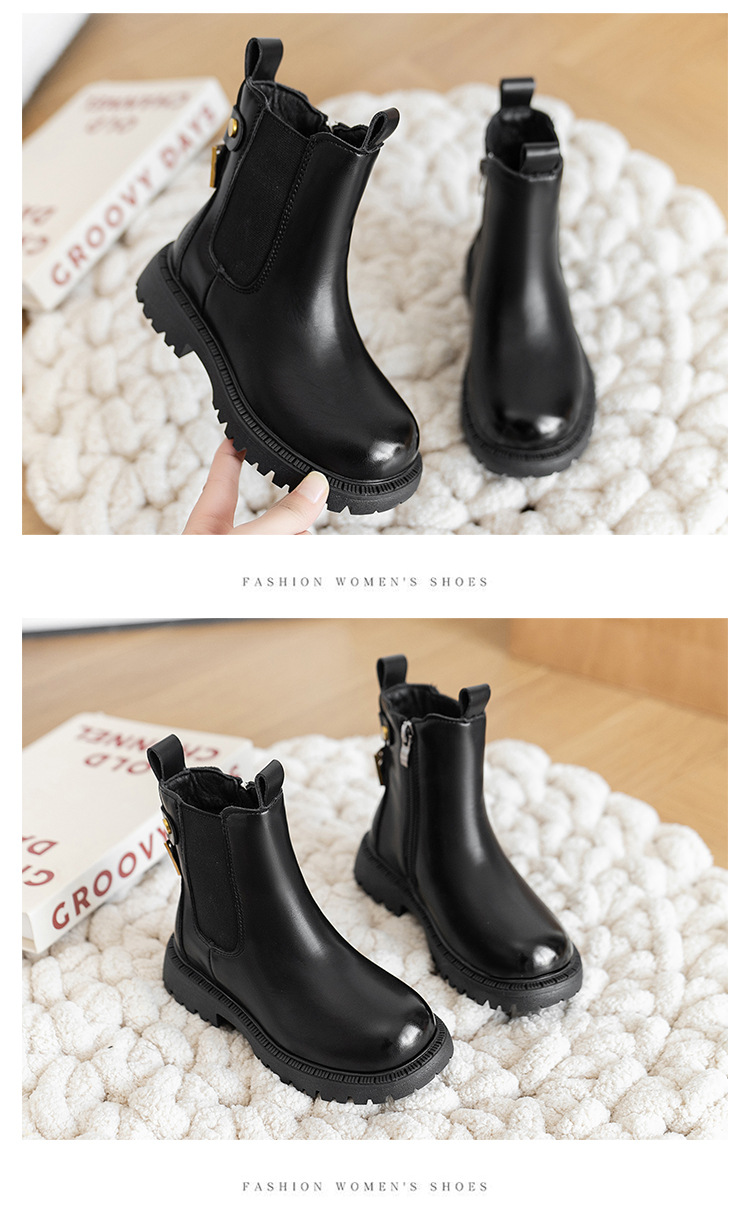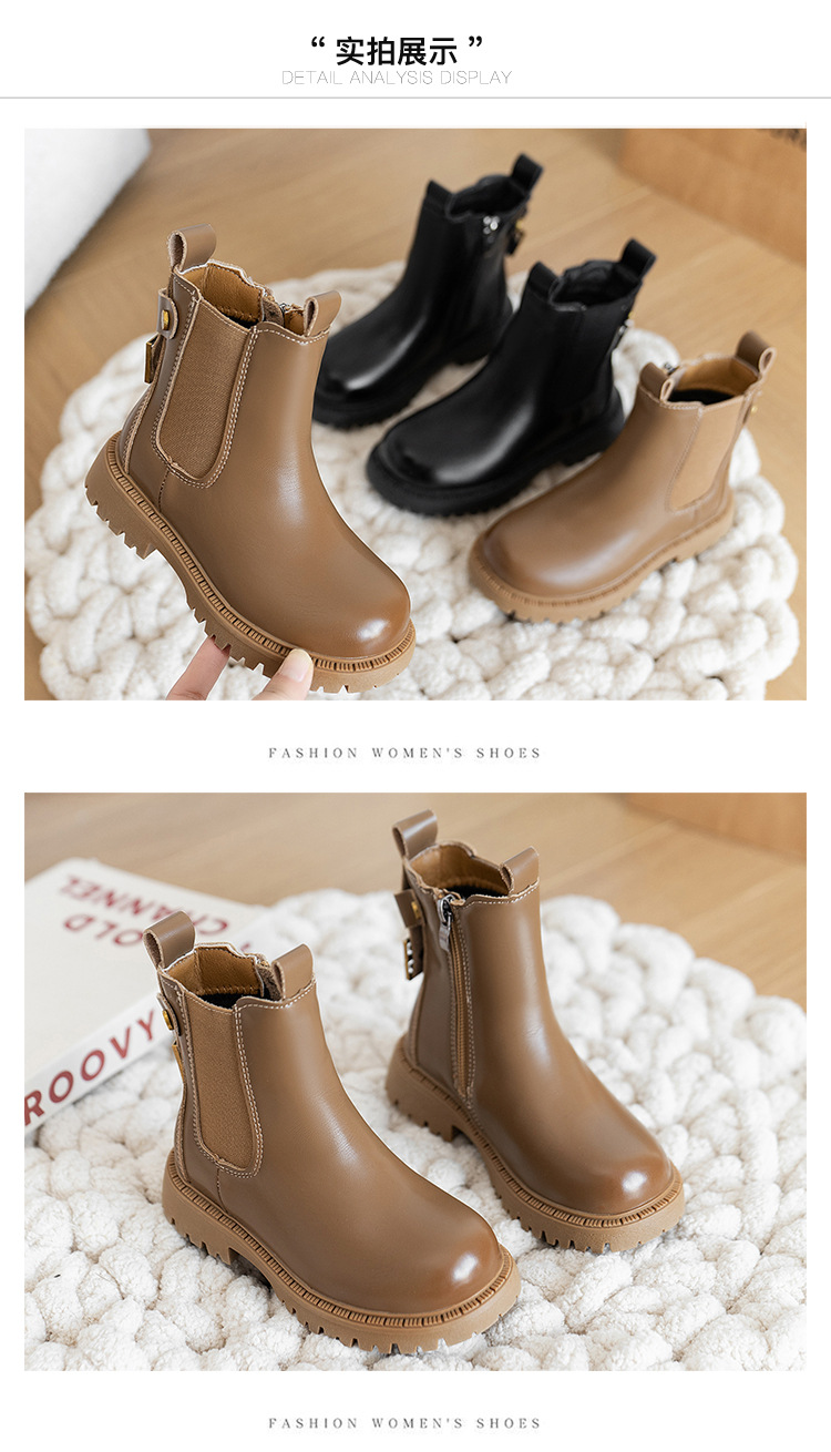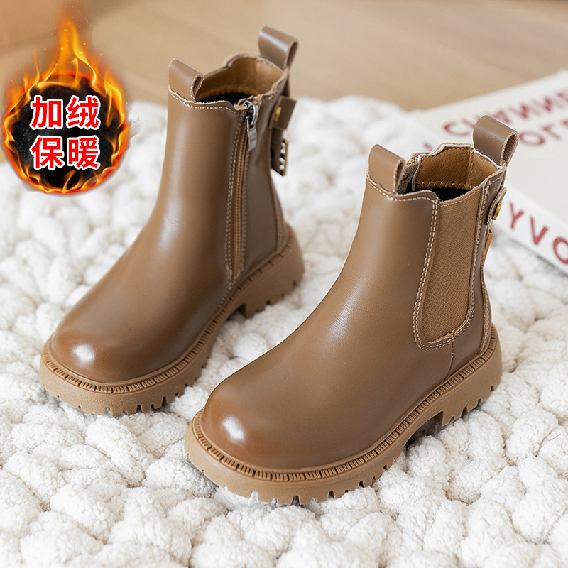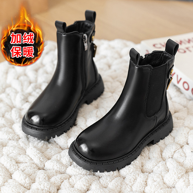 어린이 마틴 부츠 2024 가을 겨울 신상 여아 부츠 가을 스타일 여아용 숏부츠 겨울용 플리스 안감 남아 가죽 부츠스토어 가기