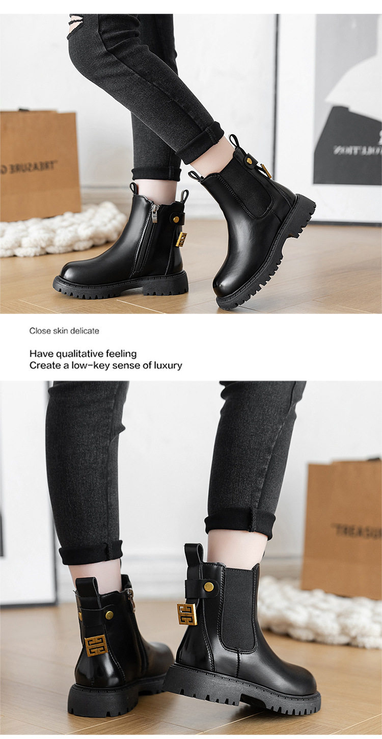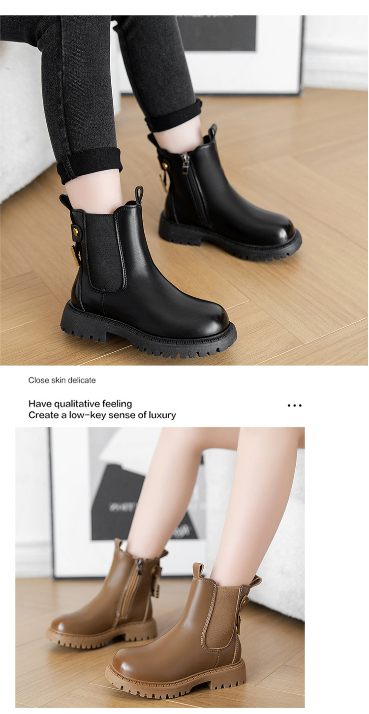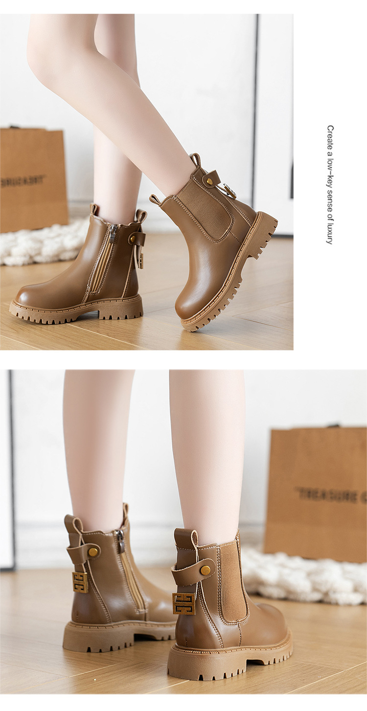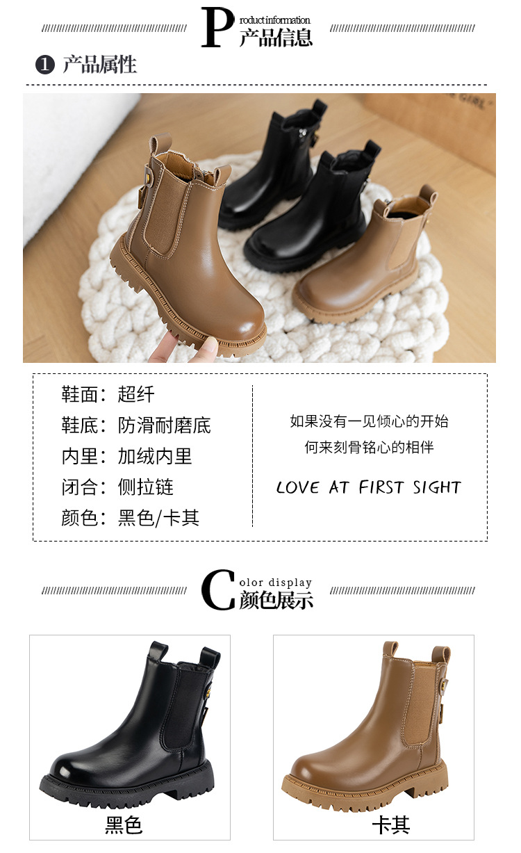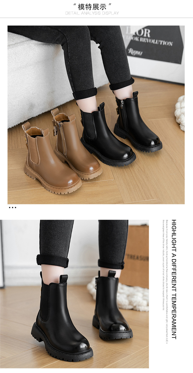 어린이 마틴 부츠 2024 가을 겨울 신상 여아 부츠 가을 스타일 여아용 숏부츠 겨울용 플리스 안감 남아 가죽 부츠스토어 가기