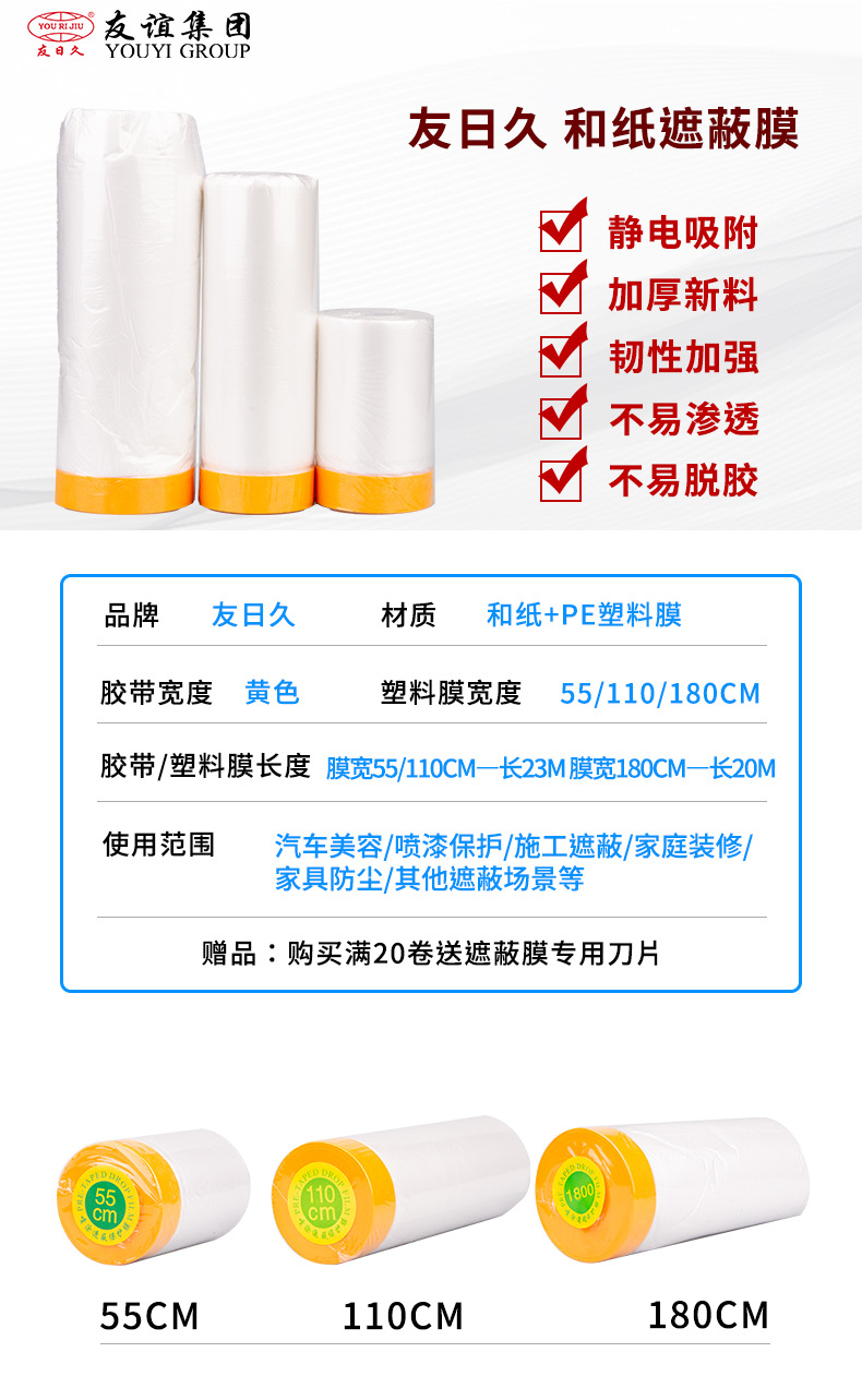 Yourijiu pe 투명 보호 필름 스프레이 페인트 특수 방진 필름 장식 정전기 자체 접착 마스킹 필름 제조 업체스토어 가기