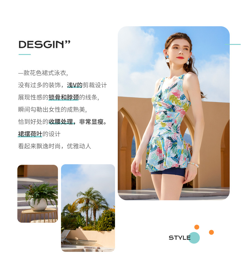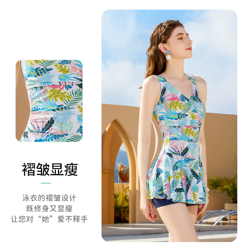 Yingfa 스커트 수영복 여자의 새로운 원피스 배꼽 커버 허리 슬리밍 보수적 인 플러스 사이즈 온천 휴가 수영복