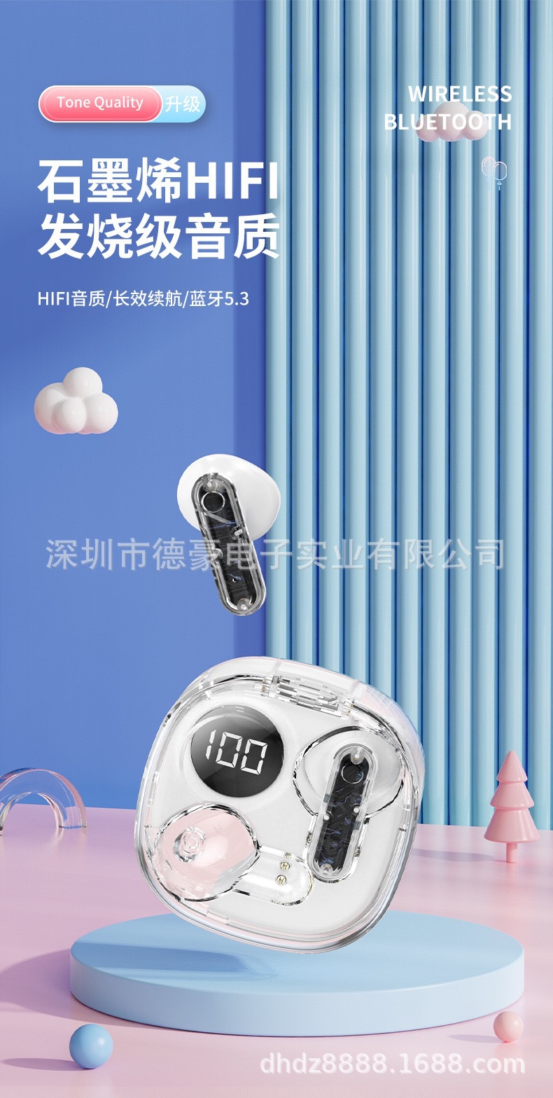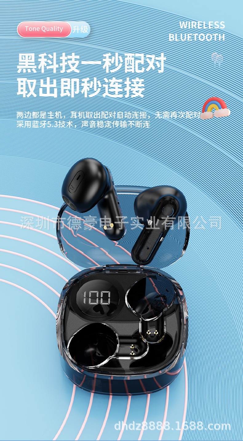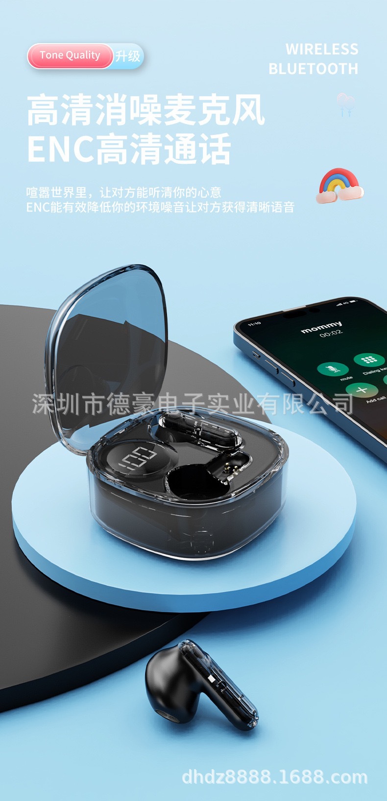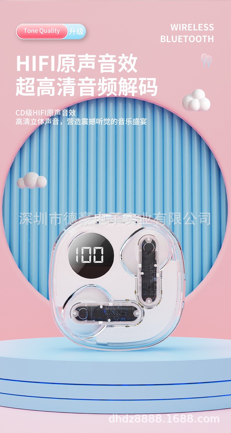 국경 간 개인 모델 MAX20 투명 쉘 블루투스 헤드셋 5.3 디지털 디스플레이 소음 감소 A2 블루투스 헤드셋 HiFi 진정한 스테레오